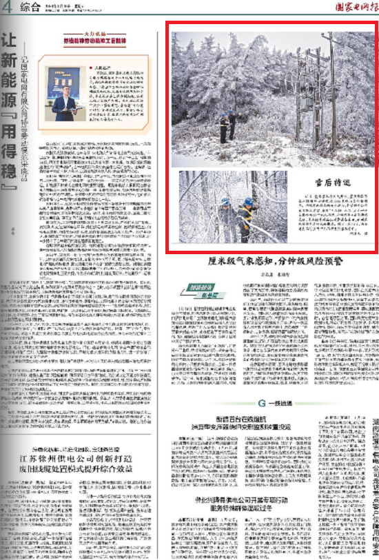 近日,受雨雪冰冻天气影响,重庆市奉节县兴隆镇部分海拔超1000米的山区积雪明显。为保障山区线路安全运行,奉节供电公司员工顶风冒雪,采用“无人机+人工”方式巡检易覆冰的10千伏九石线、兴桥线等4条高海拔线路,使用红外测温仪测量设备温度,并用绝缘操作杆清除线路覆冰。图为1月22日,该公司员工对10千伏九石线开展雪后特巡。信息来源:国家电网报