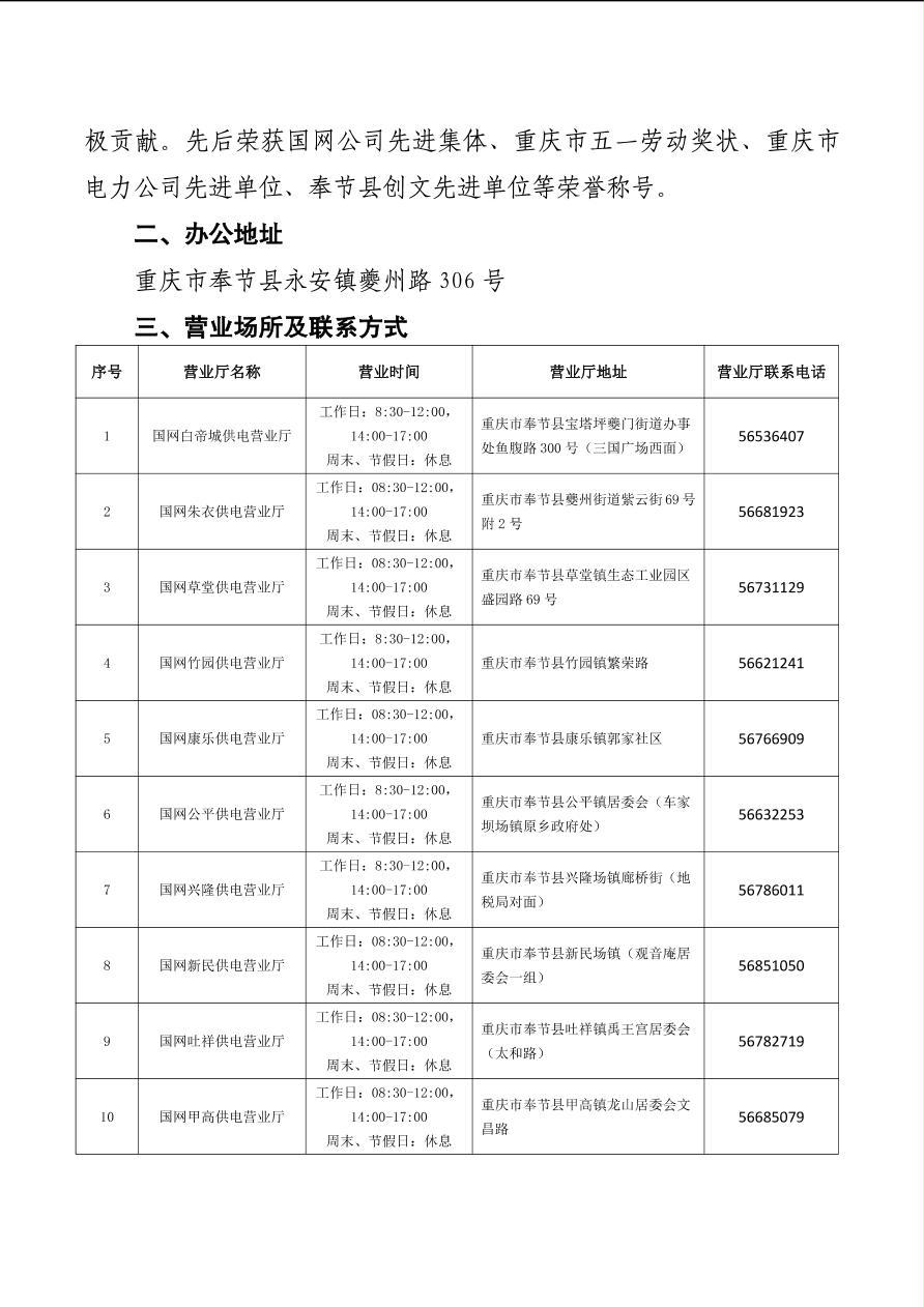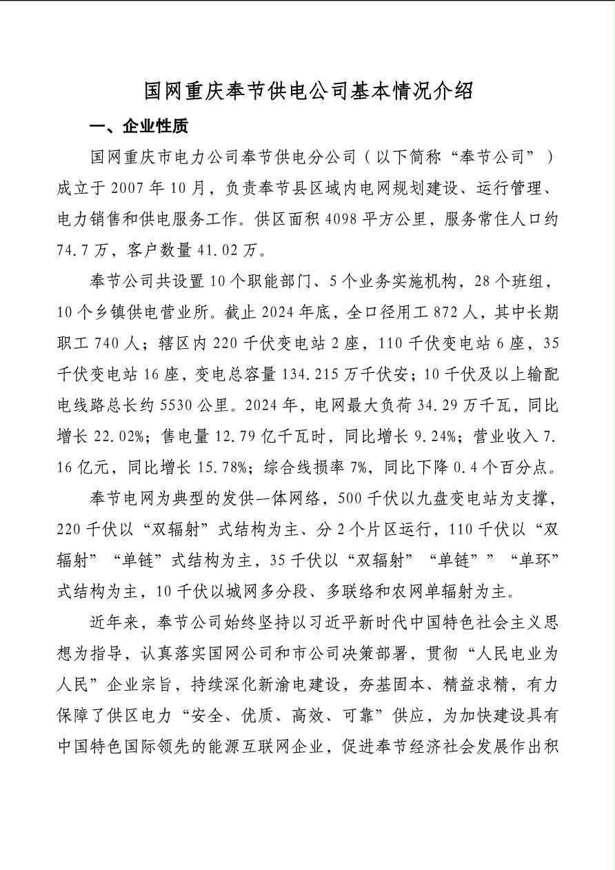 国网重庆市电力公司奉节供电公司基本情况介绍