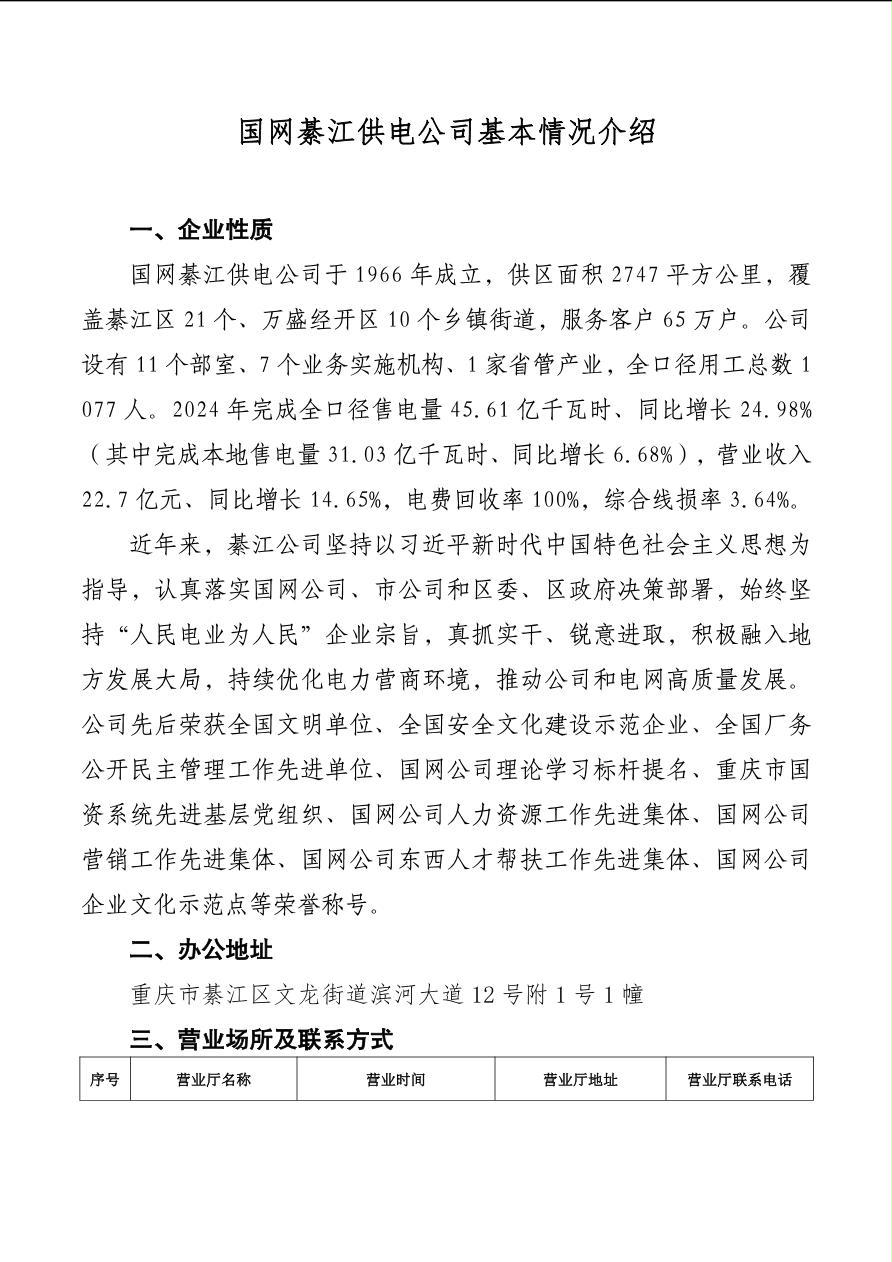 国网重庆市电力公司綦江供电分公司基本情况介绍