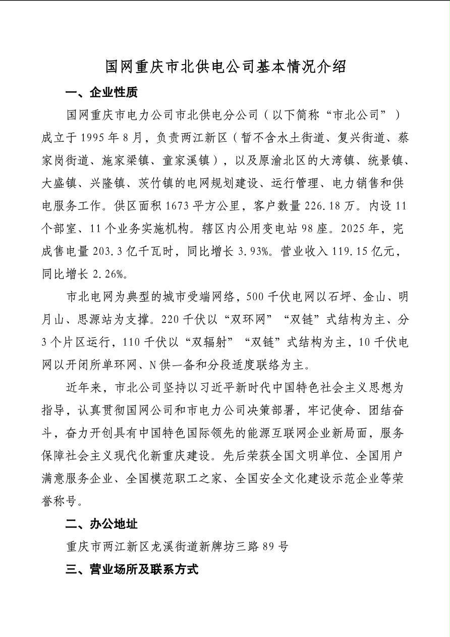 国网重庆市电力公司市北供电分公司基本情况介绍