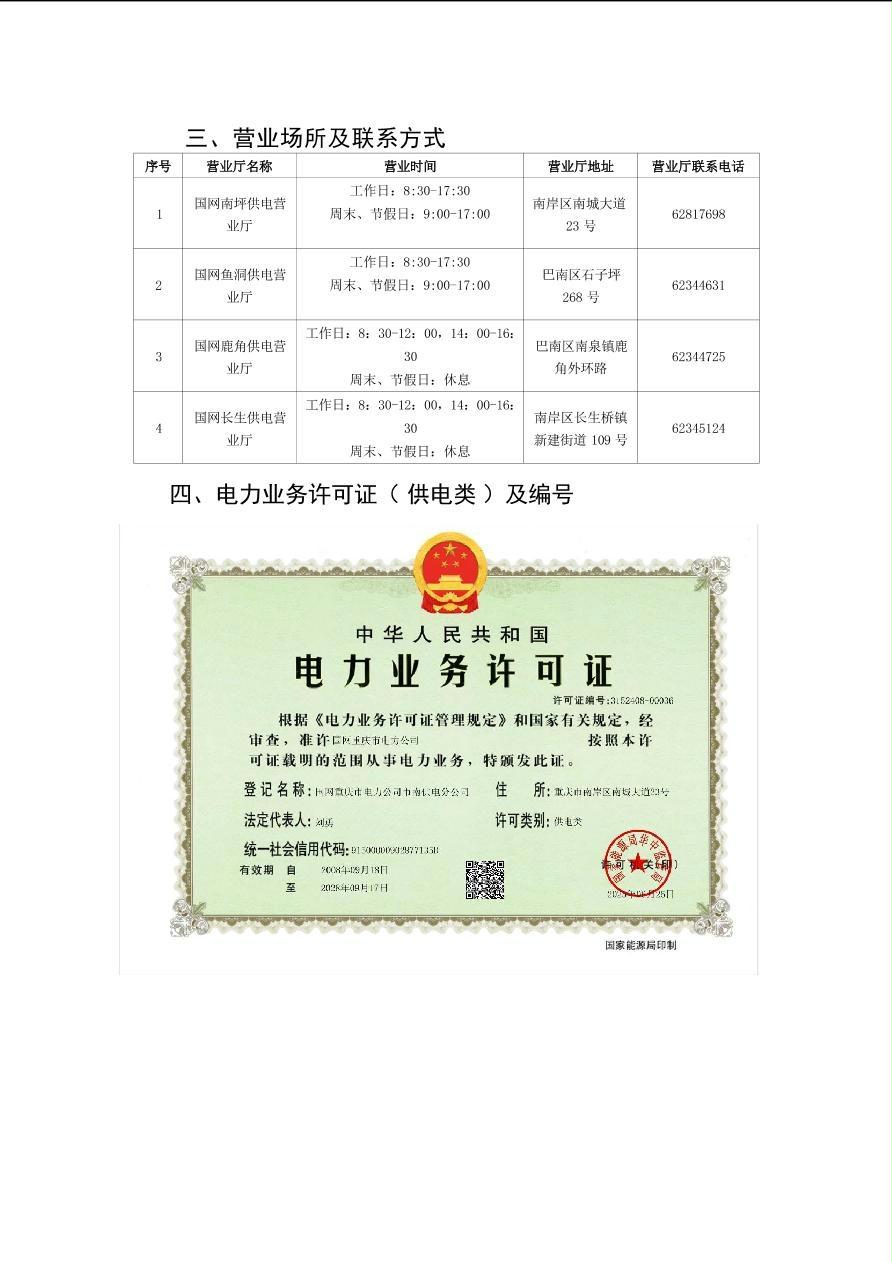 供电服务承诺及供电服务热线、12398能源监督热线等投诉渠道
