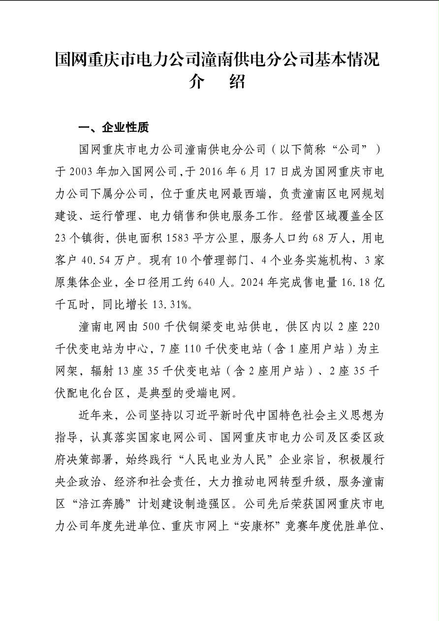 国网重庆市电力公司潼南供电分公司基本情况介绍