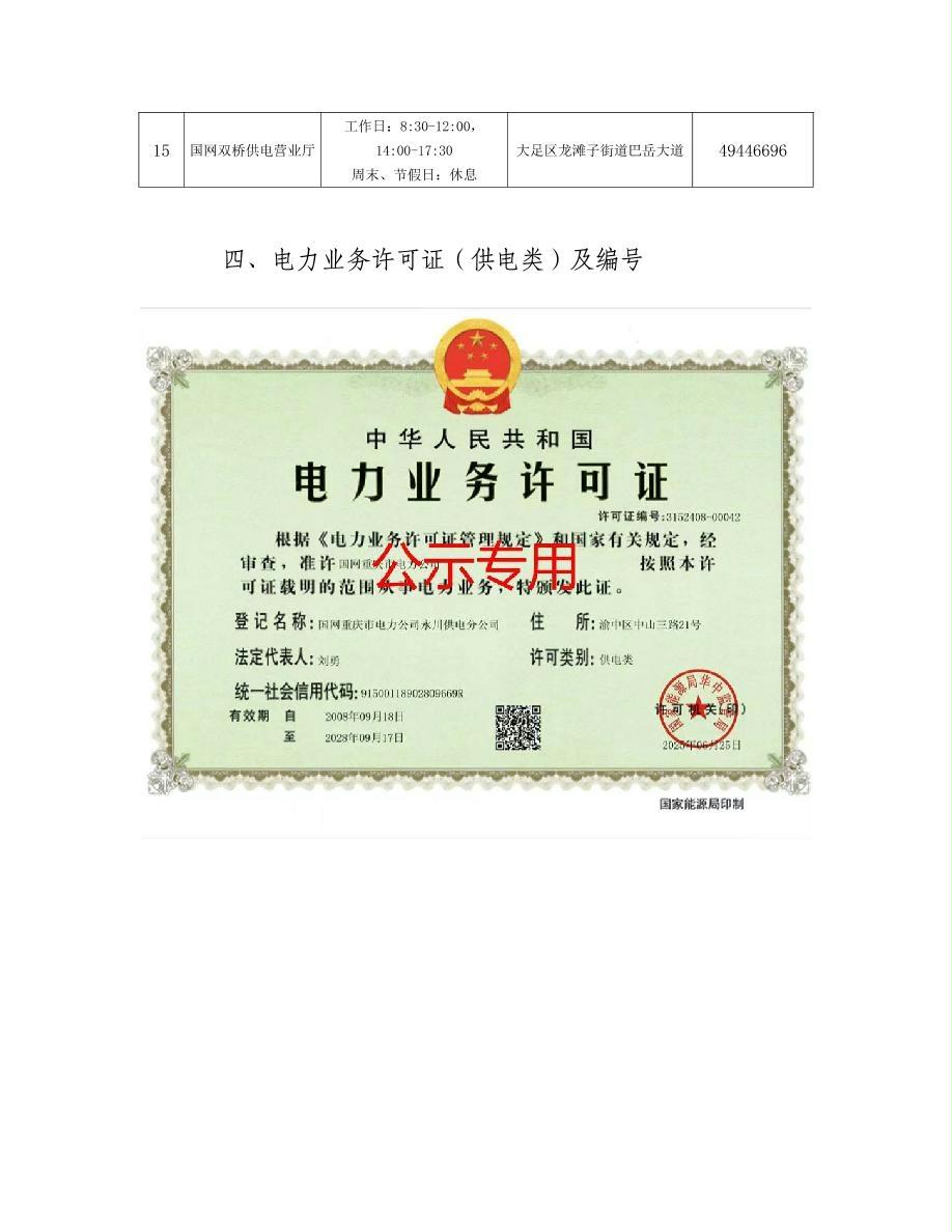 供电服务承诺及供电服务热线、12398能源监督热线等投诉渠道