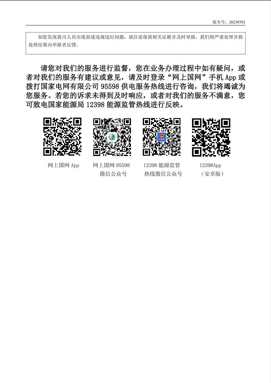 供电服务承诺及供电服务热线、12398能源监督热线等投诉渠道