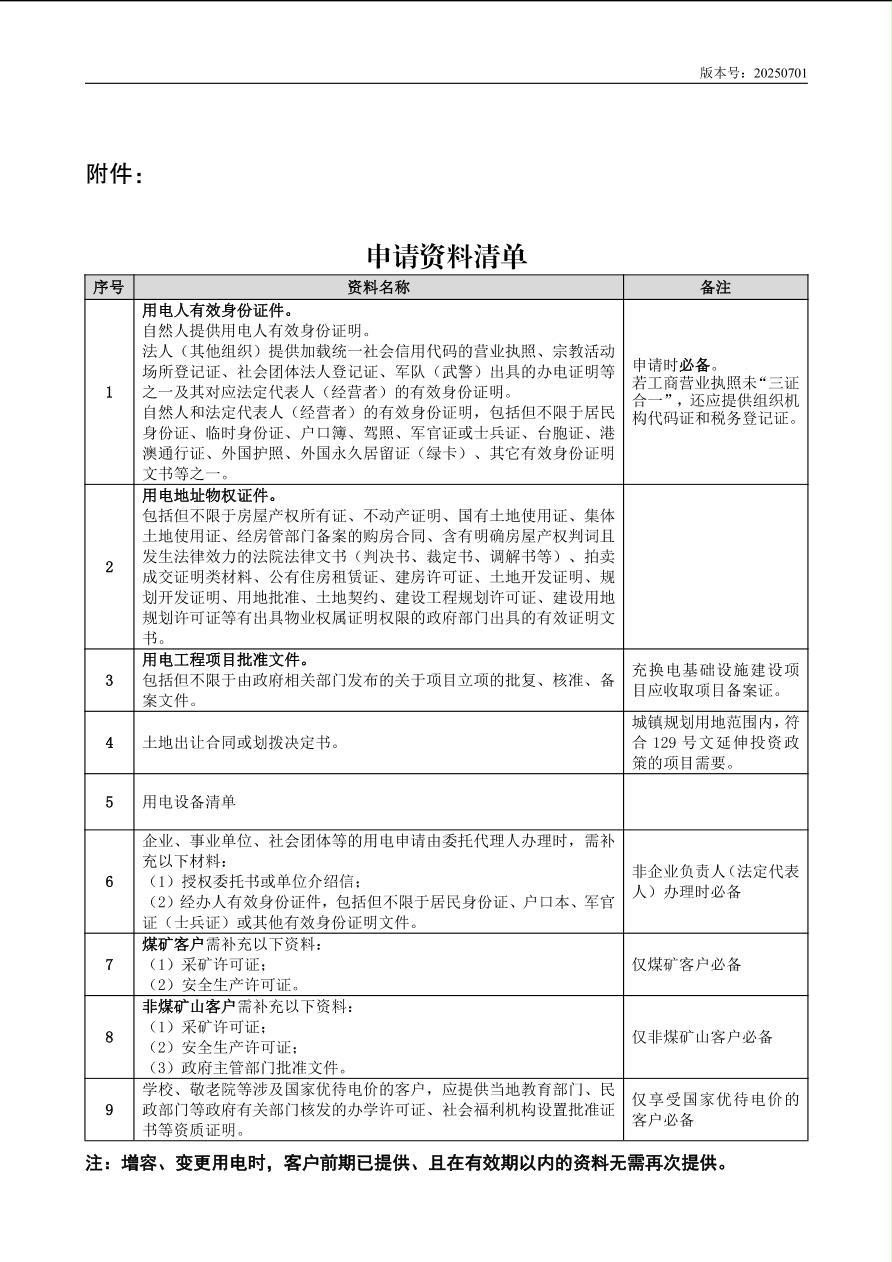 办理用电业务有关信息