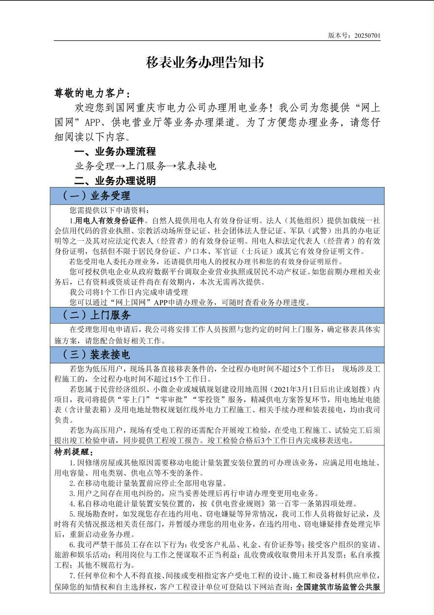 办理用电业务有关信息
