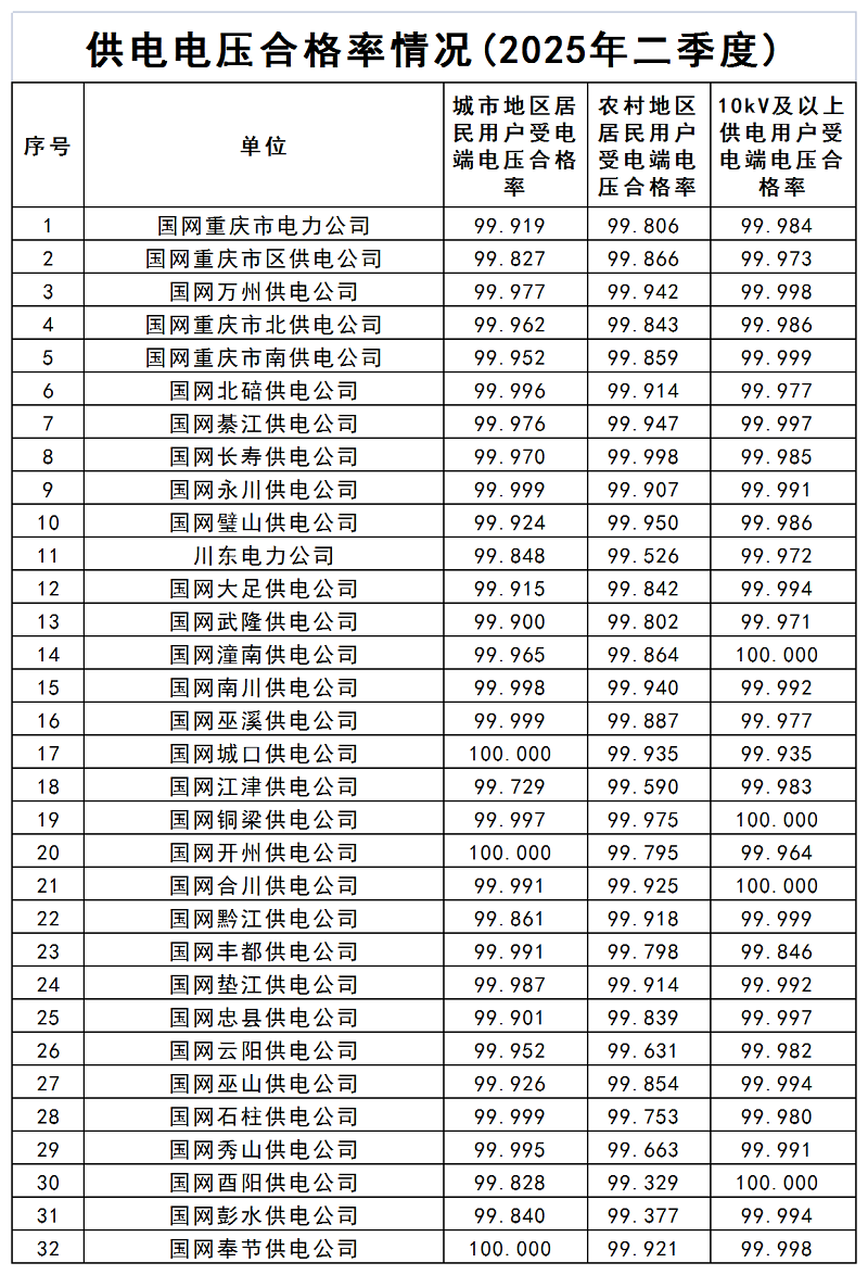 供电电压合格率情况(2025年二季度)