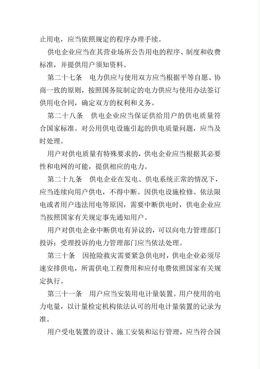 供电企业制定的涉及用户利益的有关管理制度和技术标准