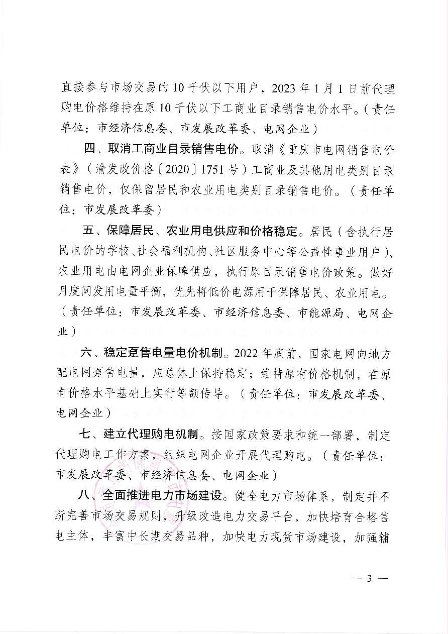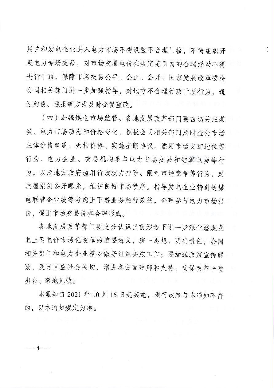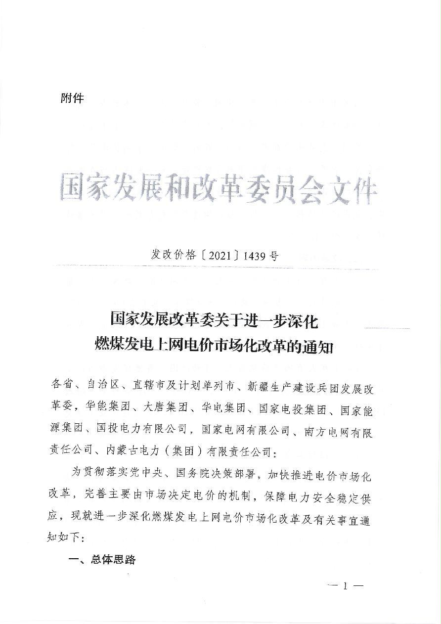 渝发改价格〔2021〕1426号 重庆市发展和改革委员会关于深化我市燃煤发电上网电价市场化改革有关事项的通知
