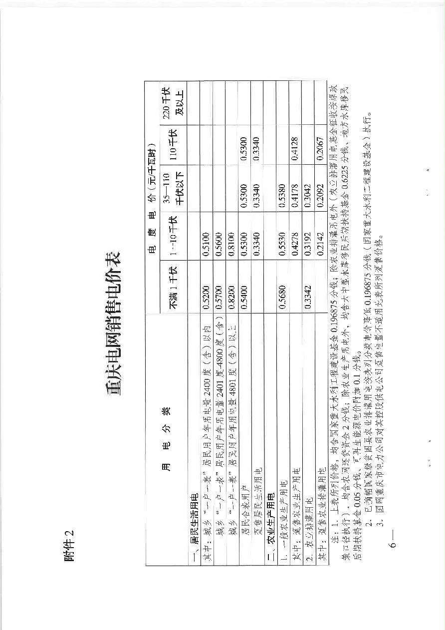 供电企业执行的电价和收费标准