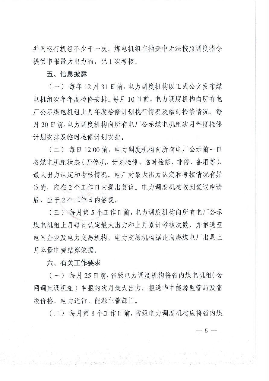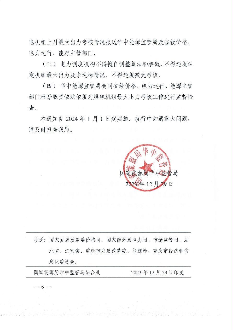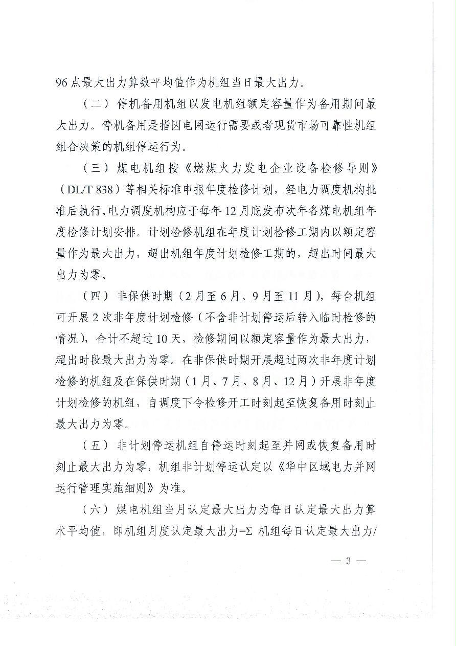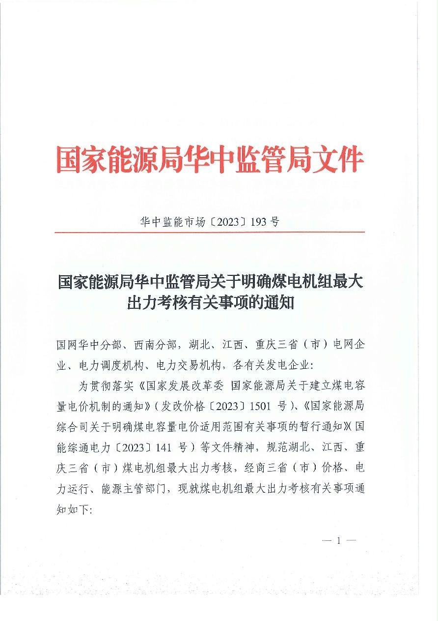 华中能监市场〔2023〕193号 国家能源局华中监管局关于明确煤电机组最大出力考核有关事项的通知