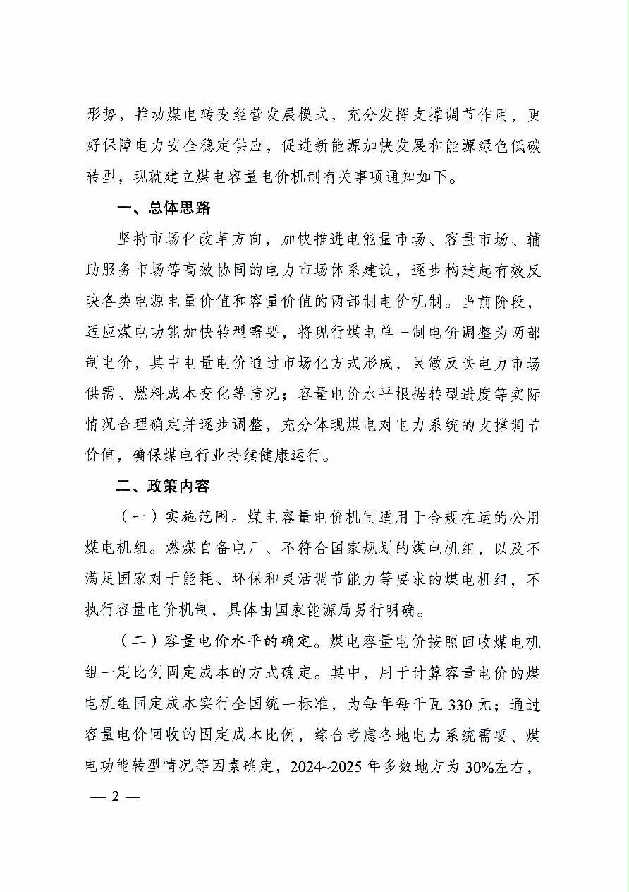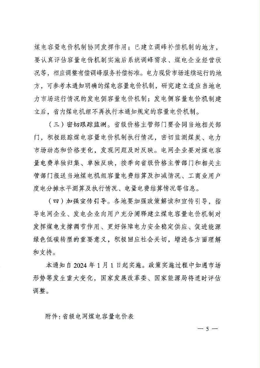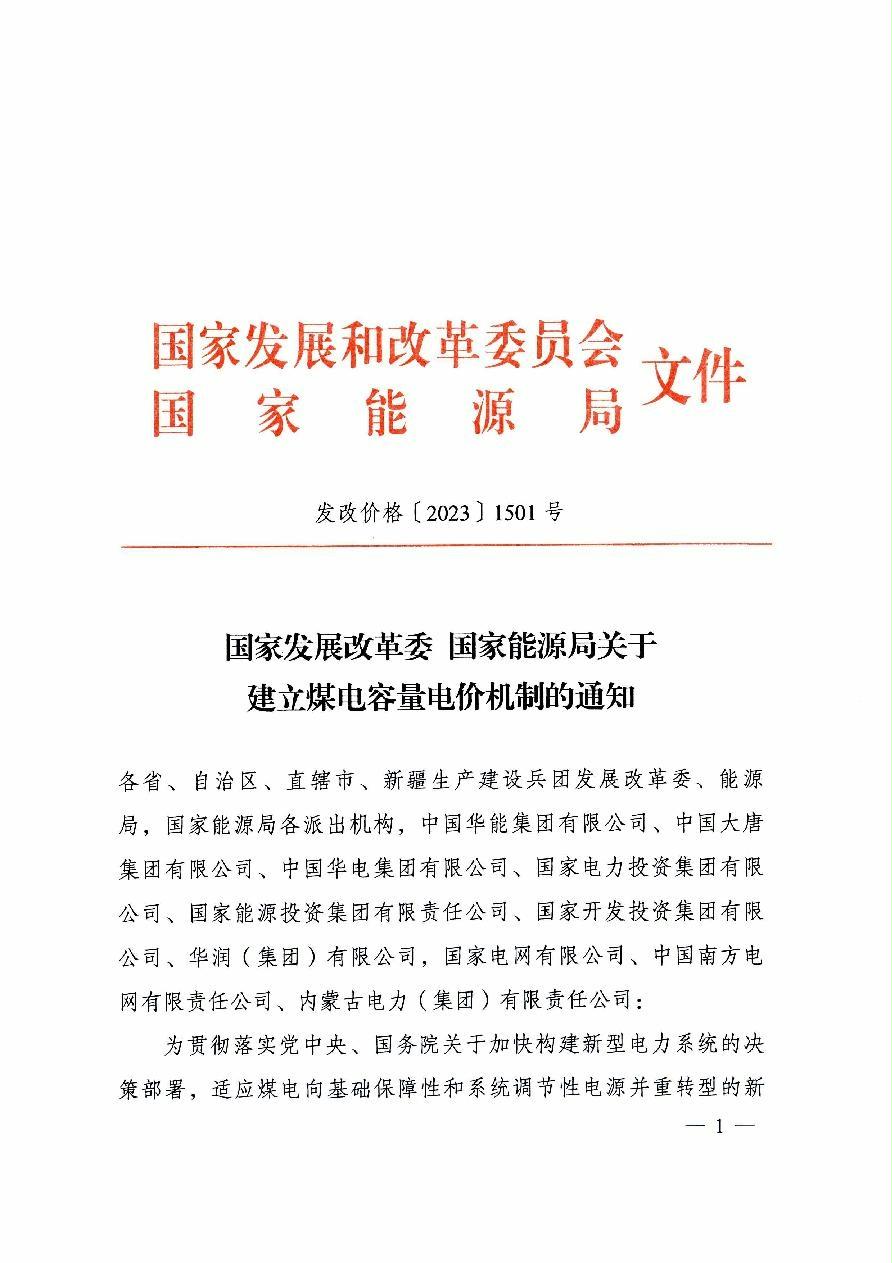 发改价格〔2023〕1501号 国家发展改革委 国家能源局关于建立煤电容量电价机制的通知