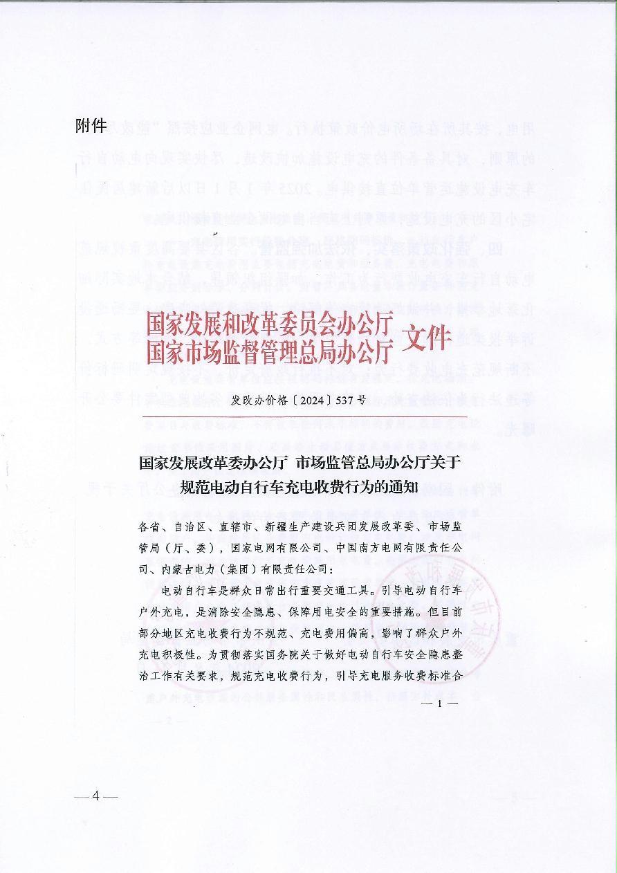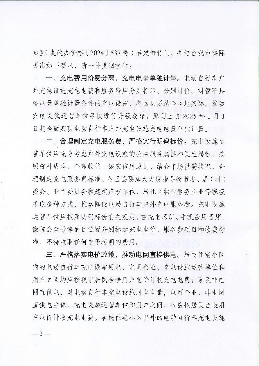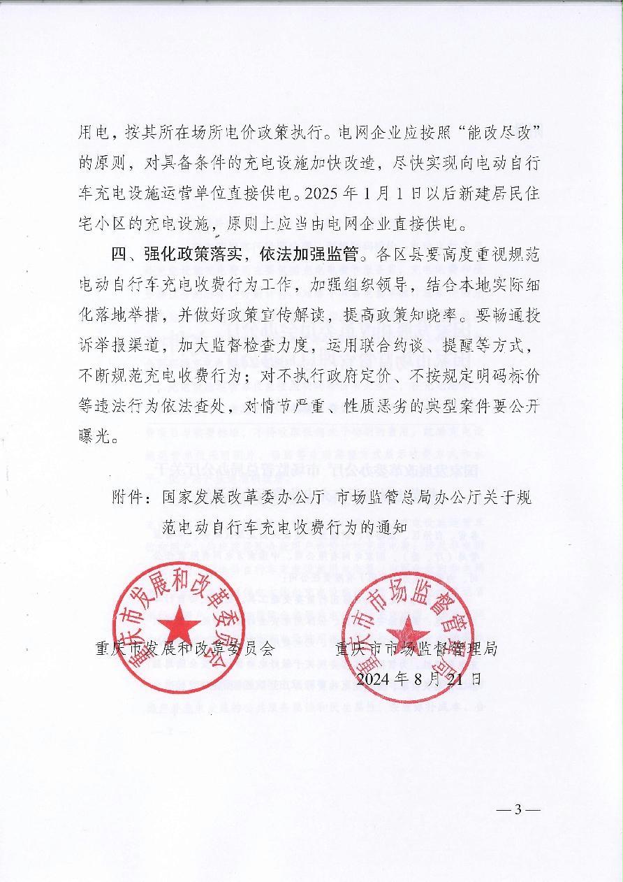 渝发改价格〔2024〕983号 关于贯彻《国家发展改革委办公厅市场监管总局办公厅关于规范电动自行车充电收费行为的通知》有关事项的通知