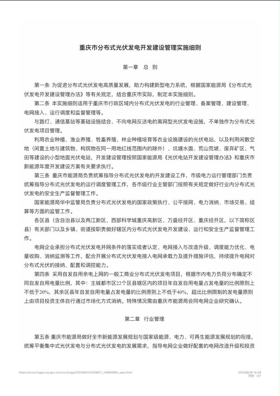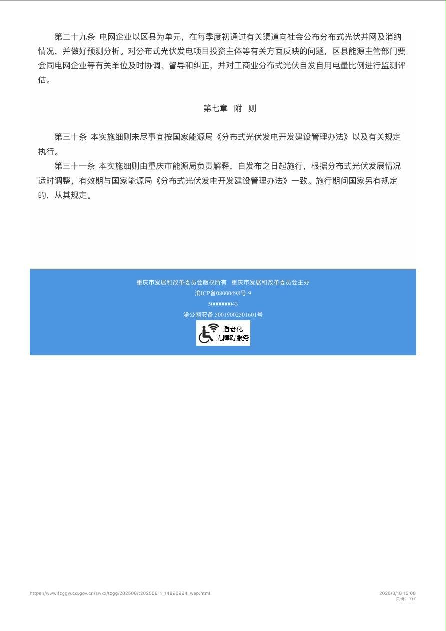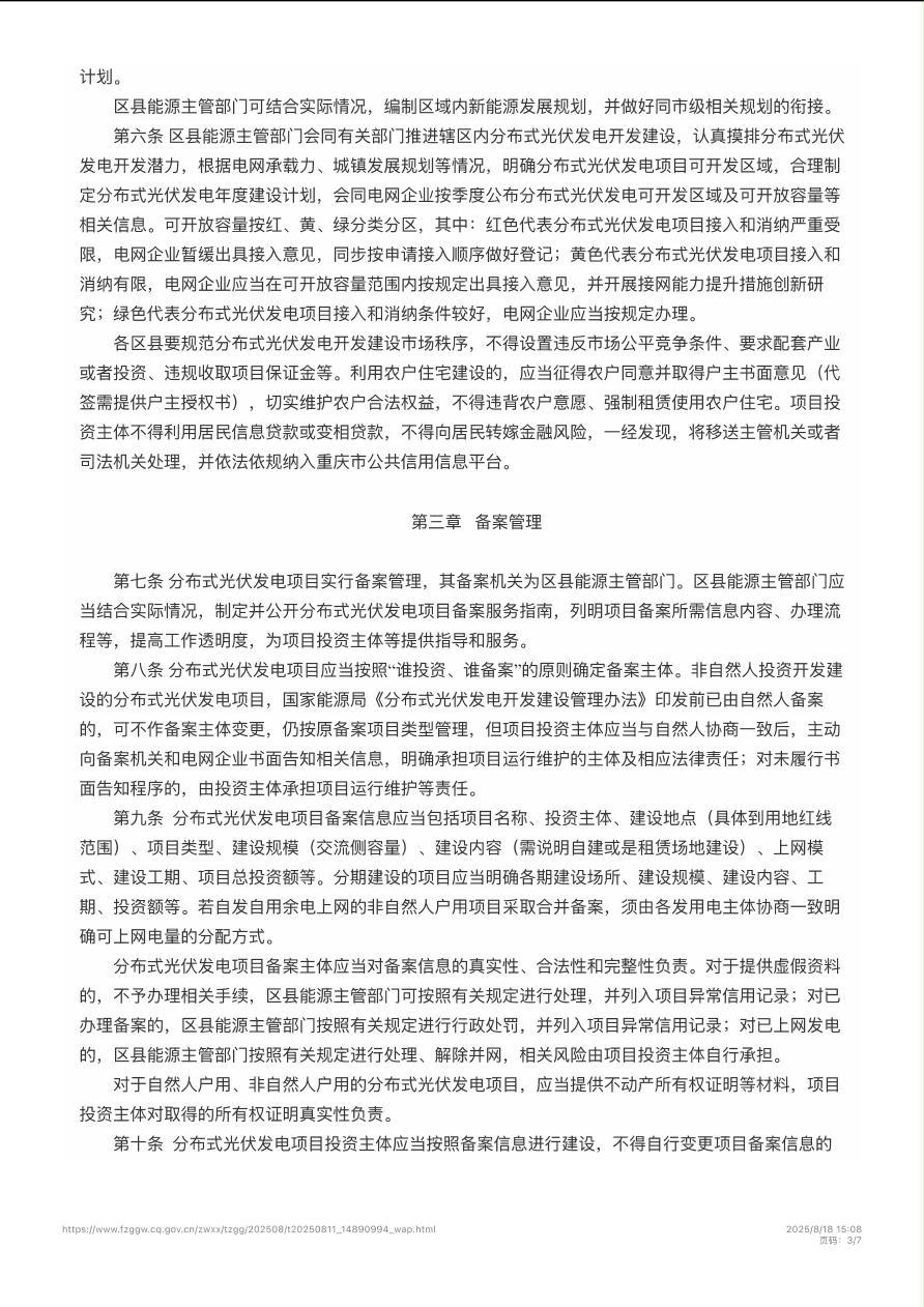 渝能源电〔2025〕56号 重庆市能源局关于印发《重庆市分布式光伏发电开发建设管理实施细则》的通知