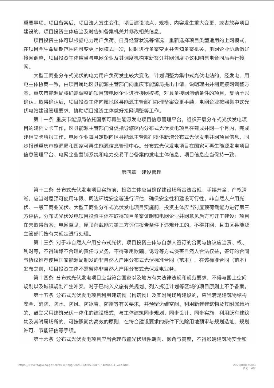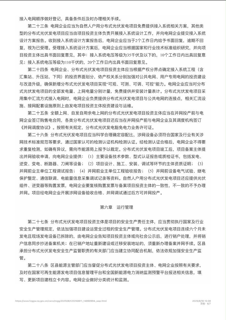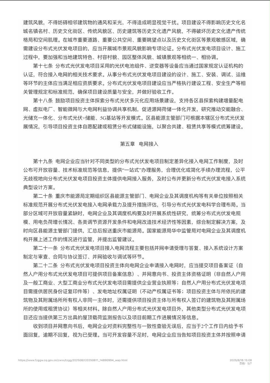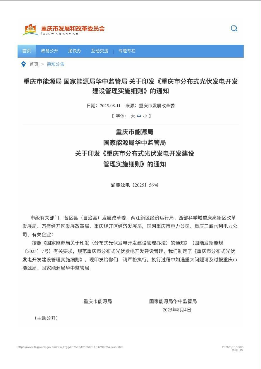 渝能源电〔2025〕56号 重庆市能源局关于印发《重庆市分布式光伏发电开发建设管理实施细则》的通知