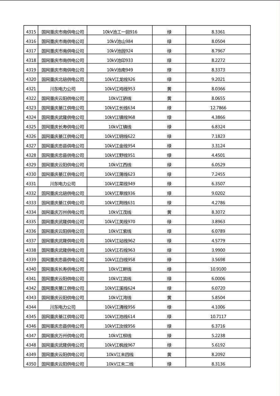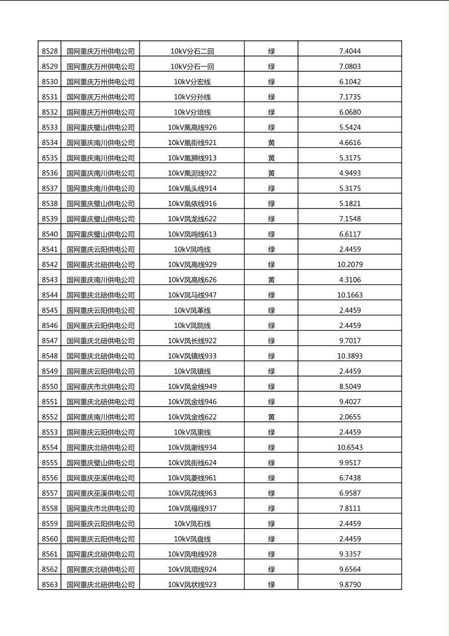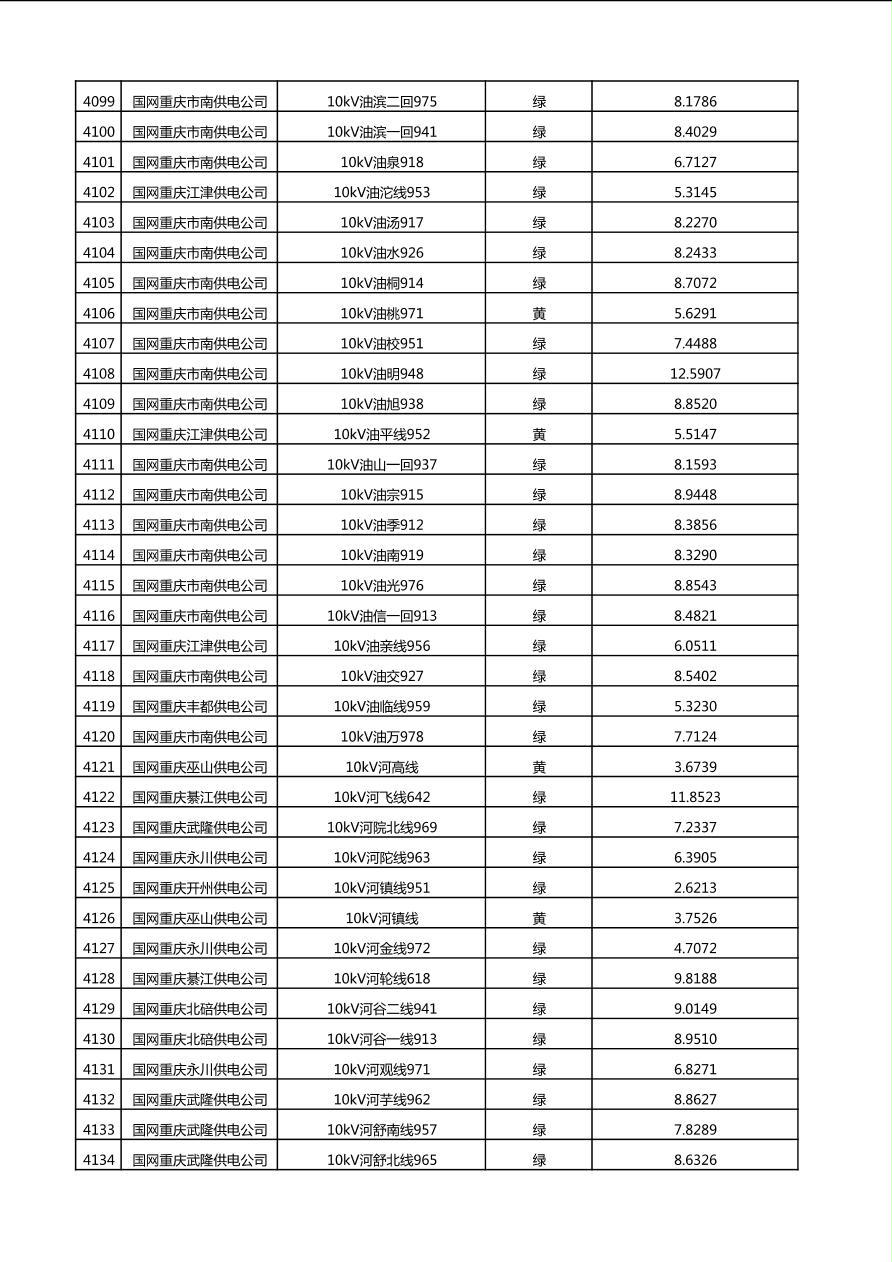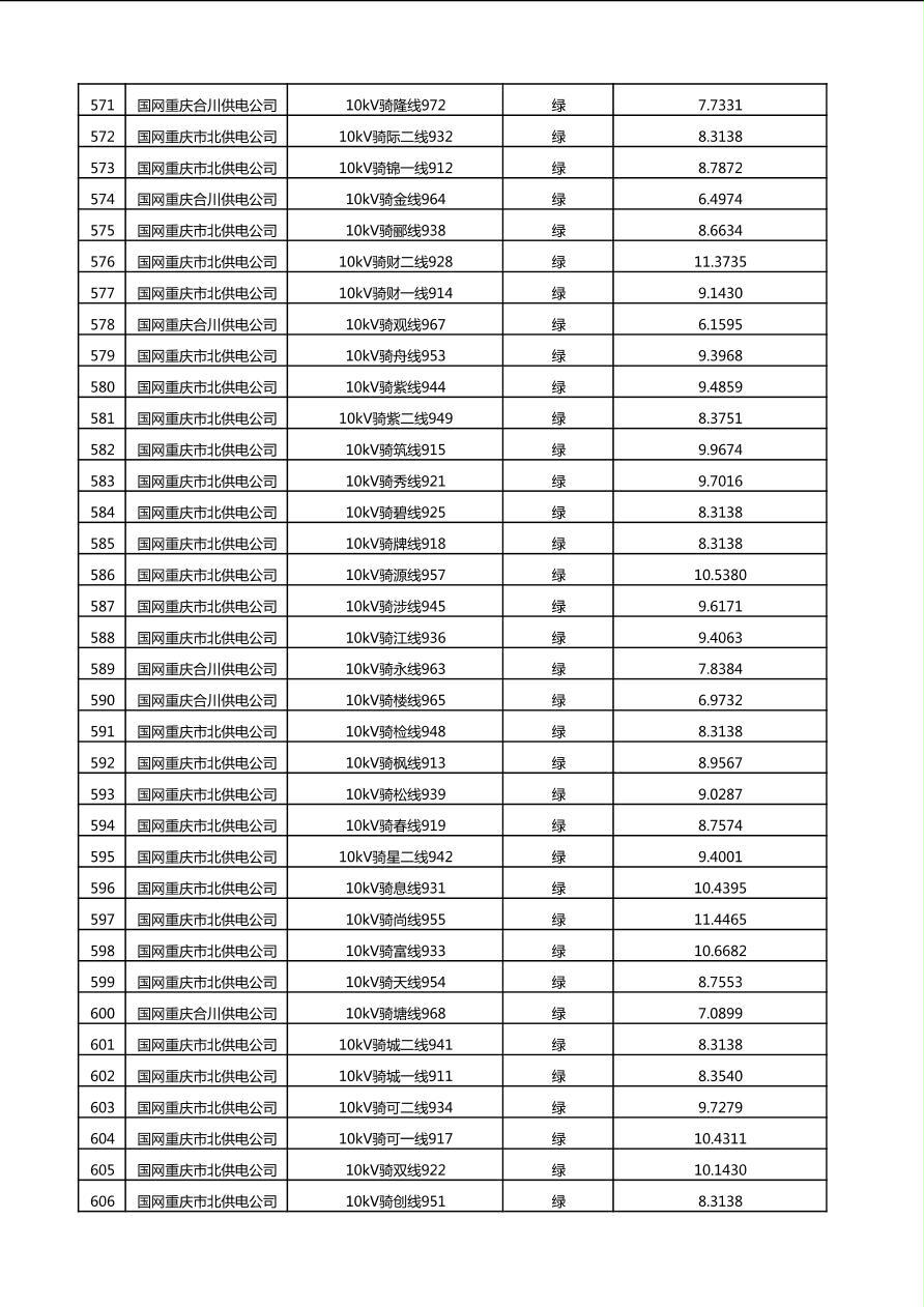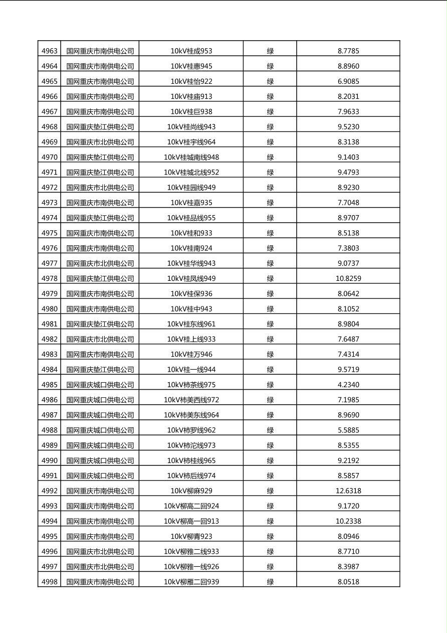 国网重庆市电力公司2025年第4季度分布式光伏可开放容量公示(10千伏配线)