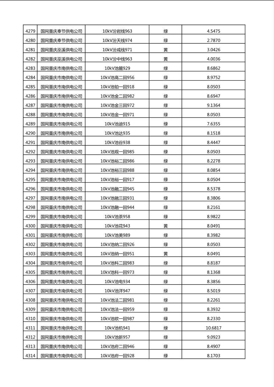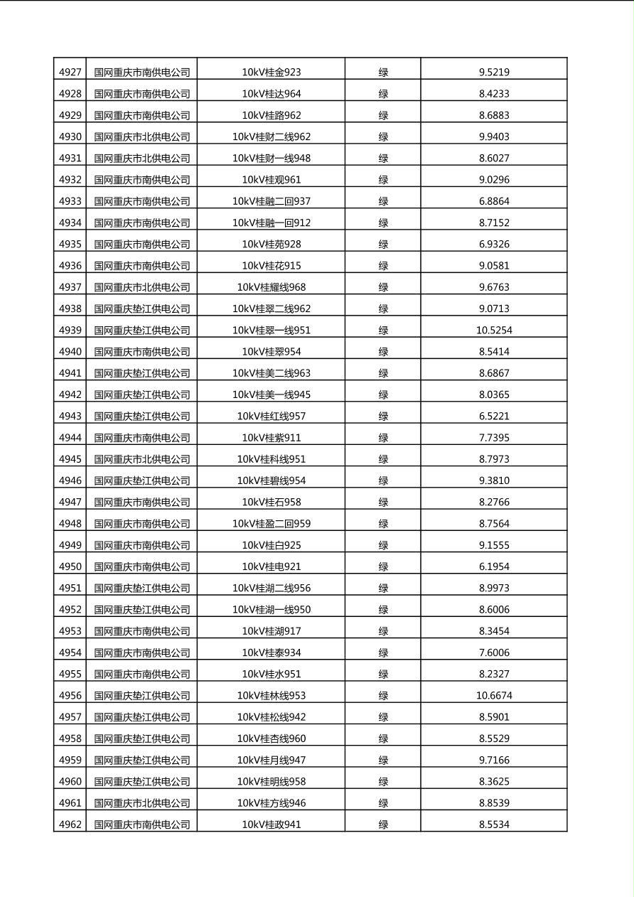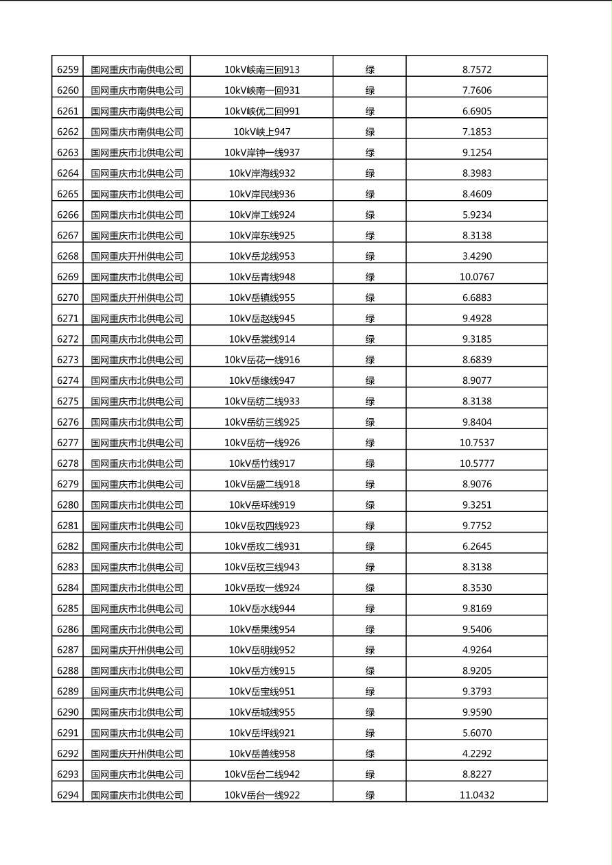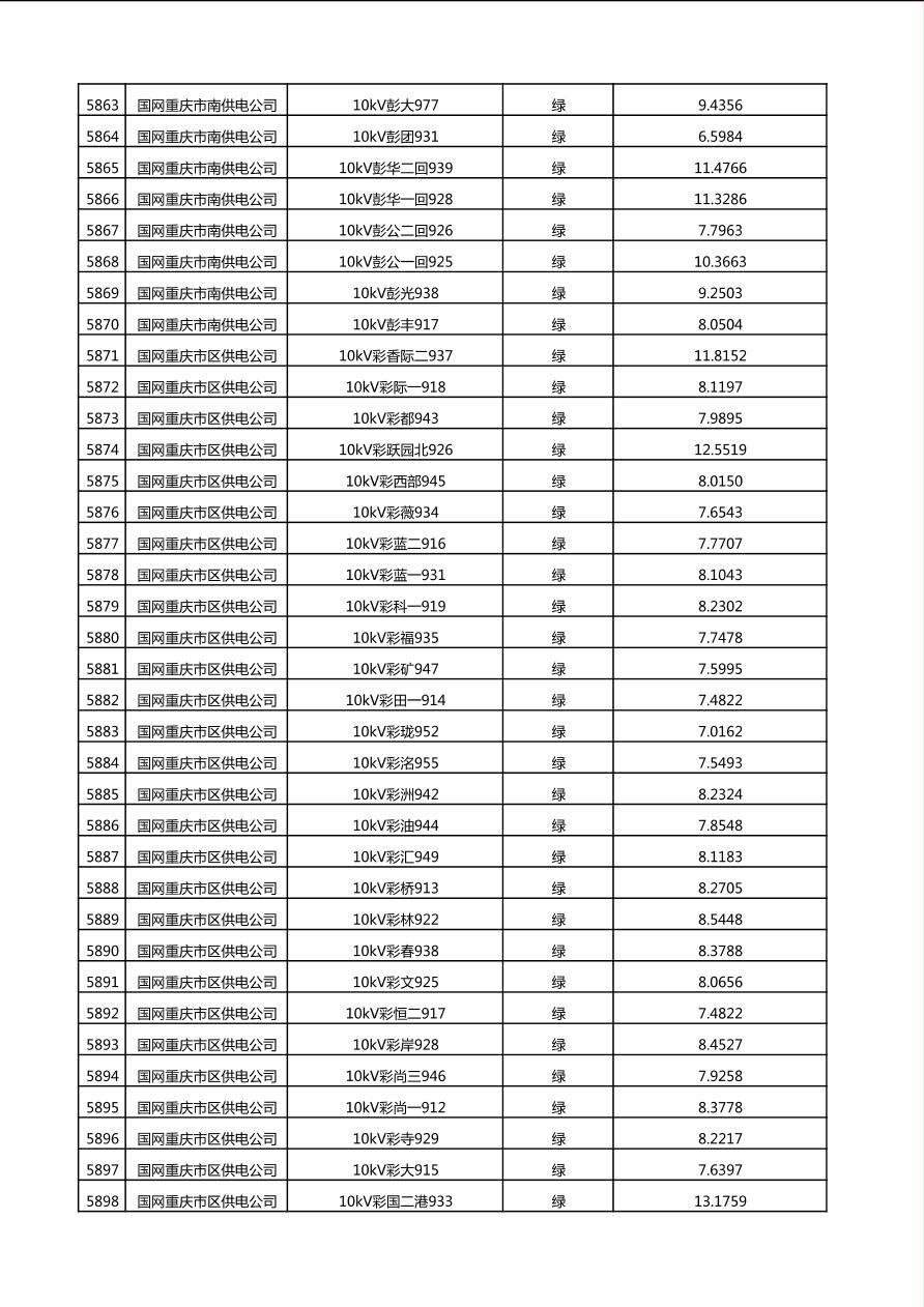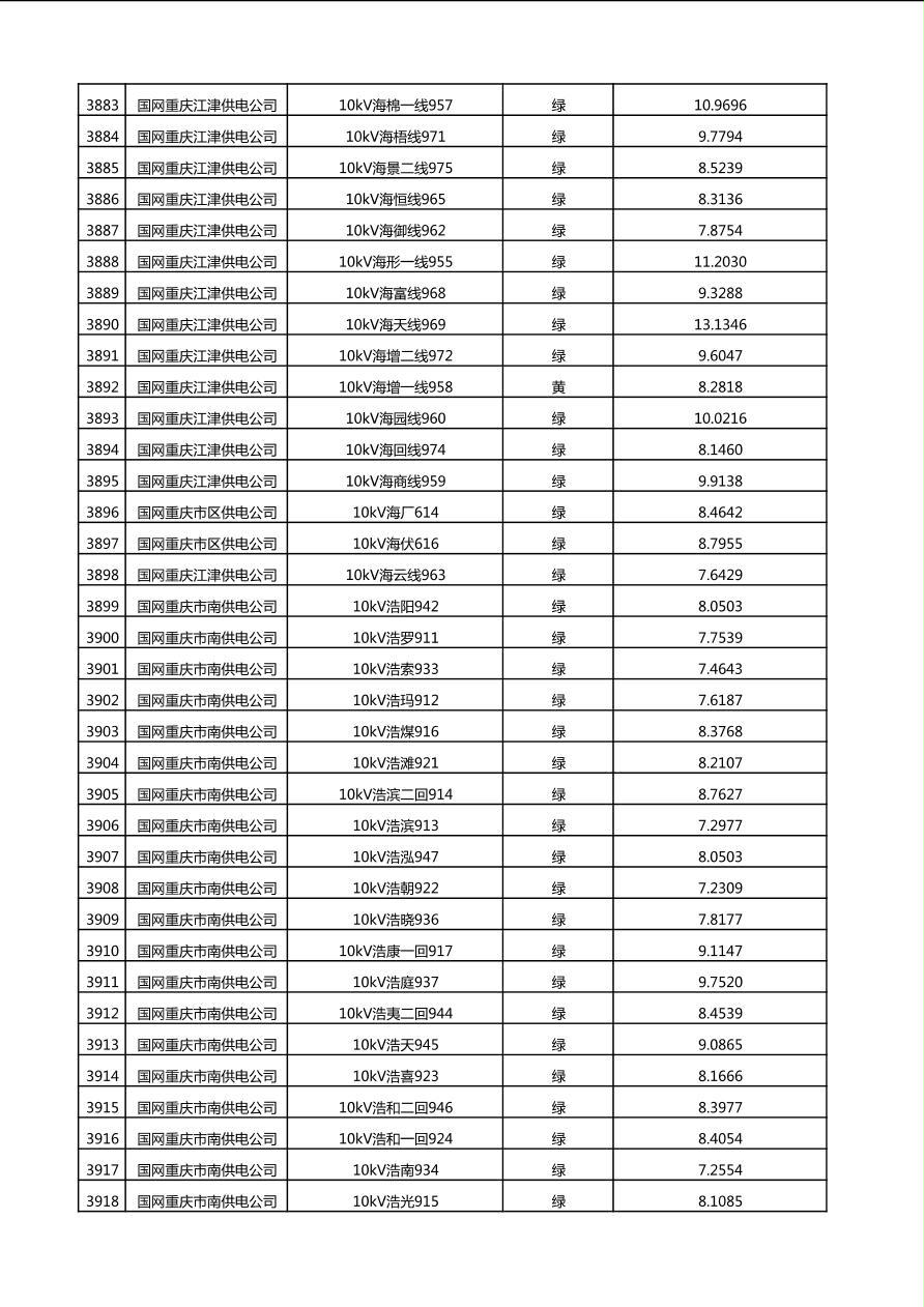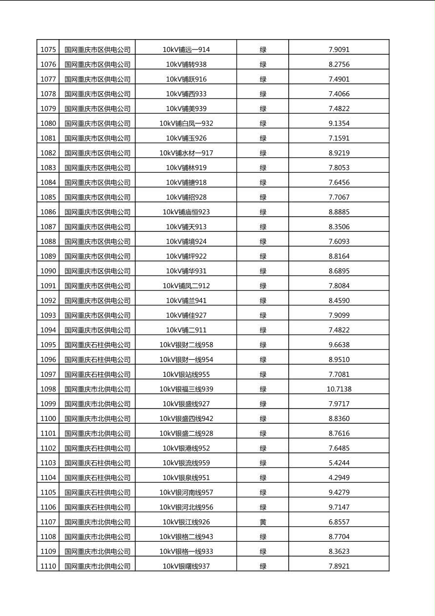 国网重庆市电力公司2025年第4季度分布式光伏可开放容量公示(10千伏配线)