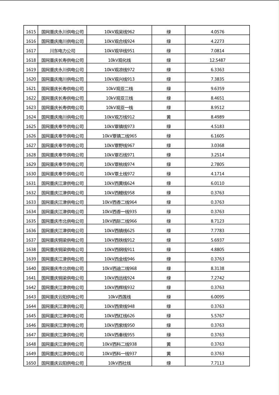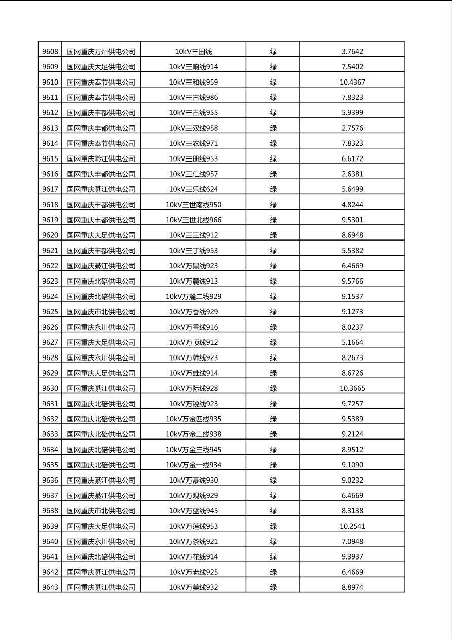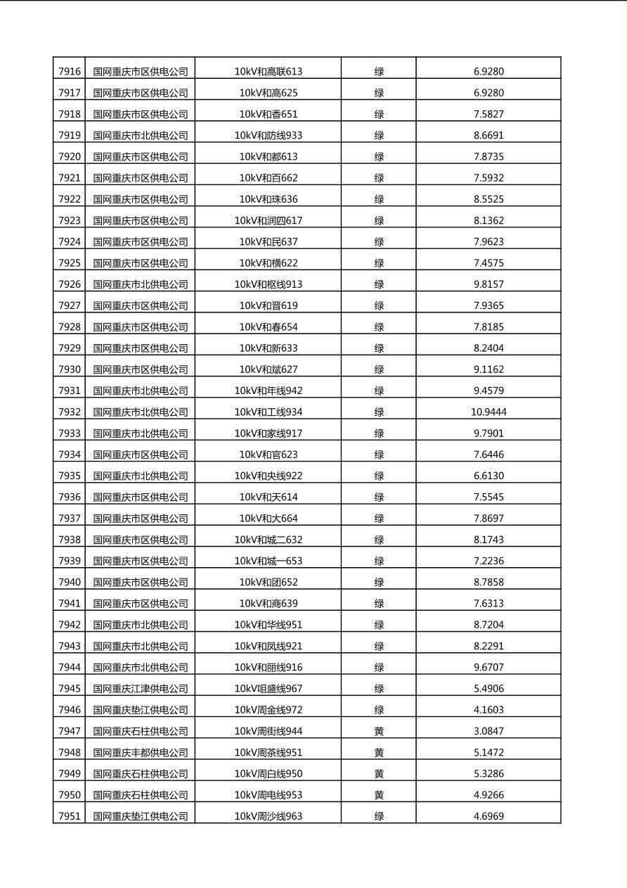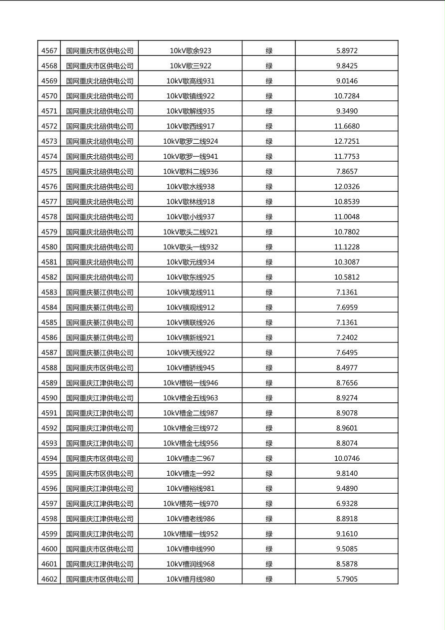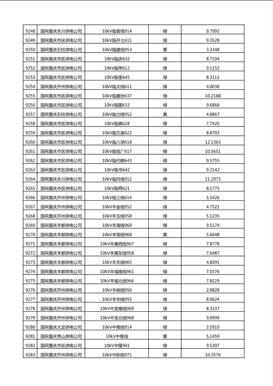国网重庆市电力公司2025年第4季度分布式光伏可开放容量公示(10千伏配线)