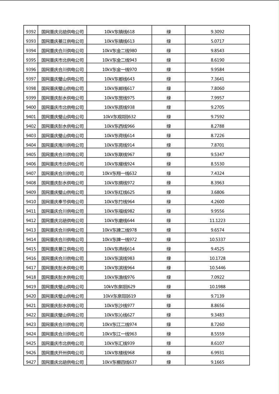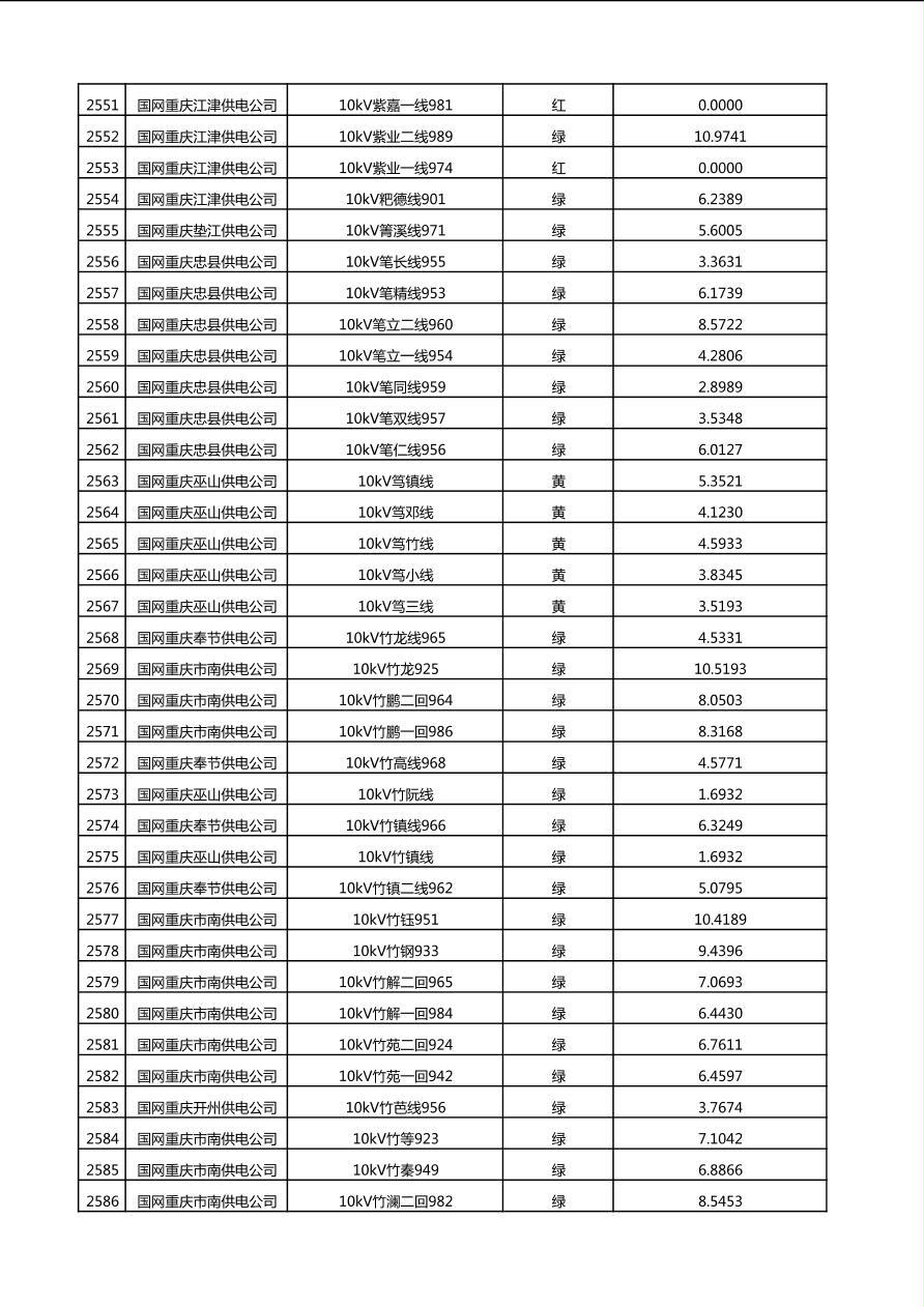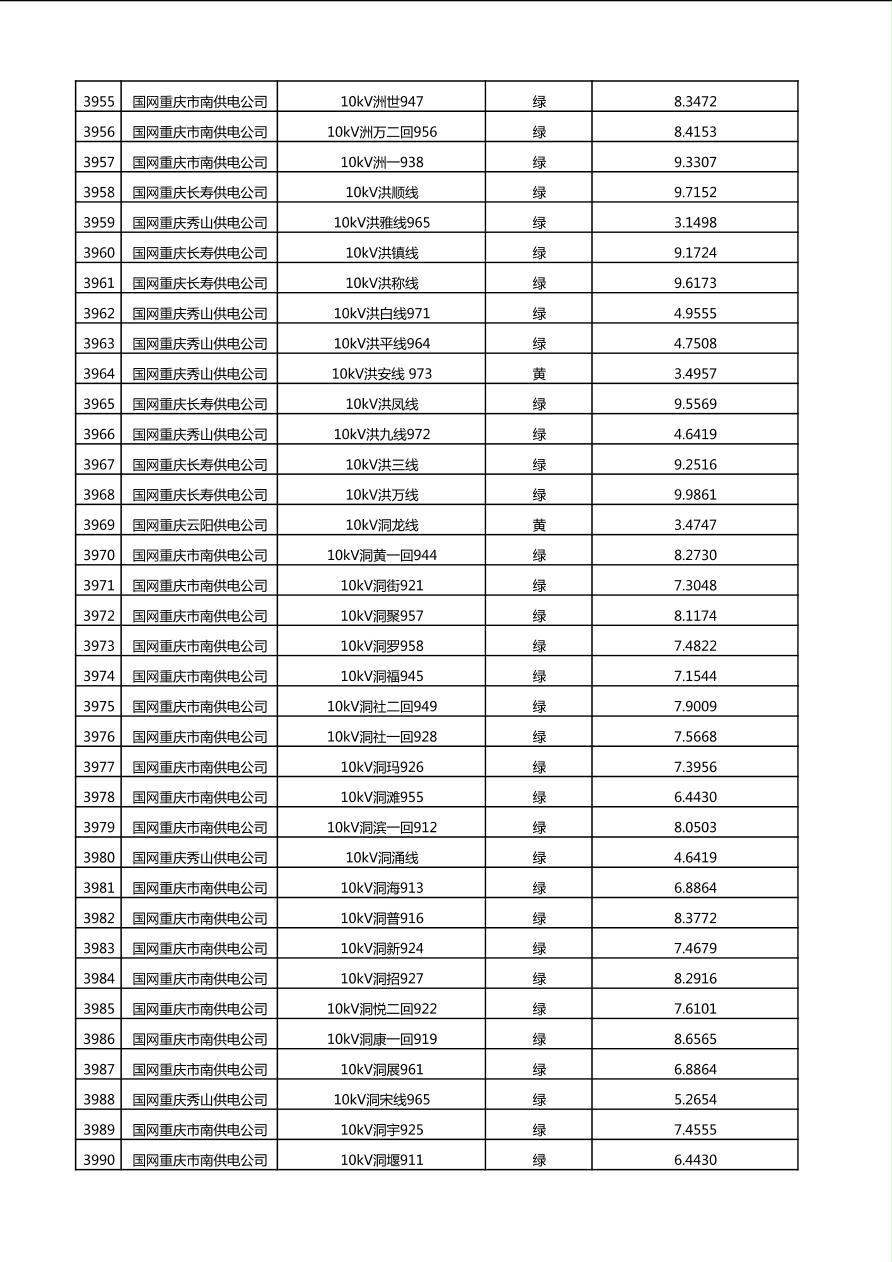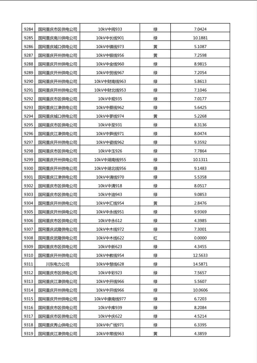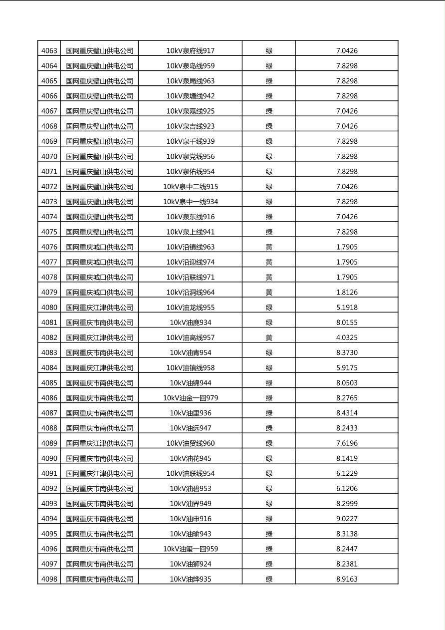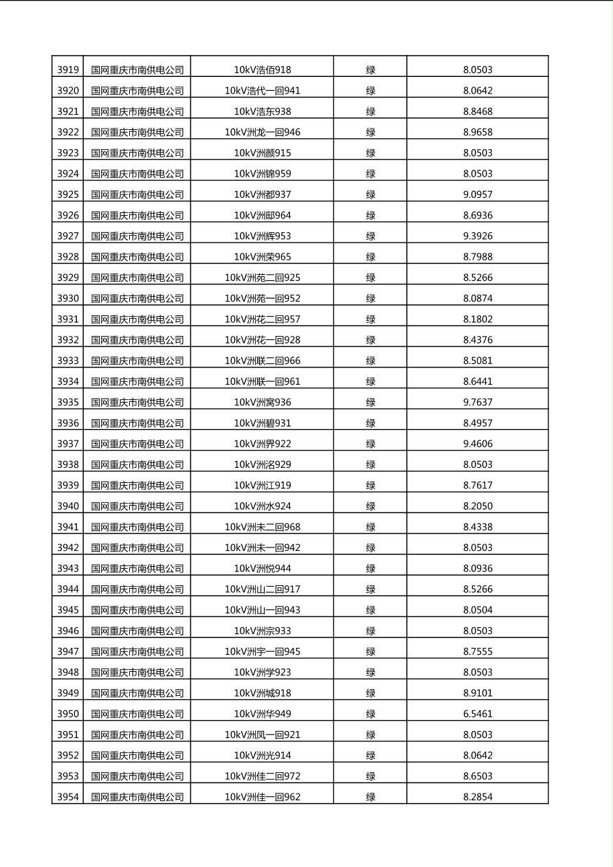 国网重庆市电力公司2025年第4季度分布式光伏可开放容量公示(10千伏配线)
