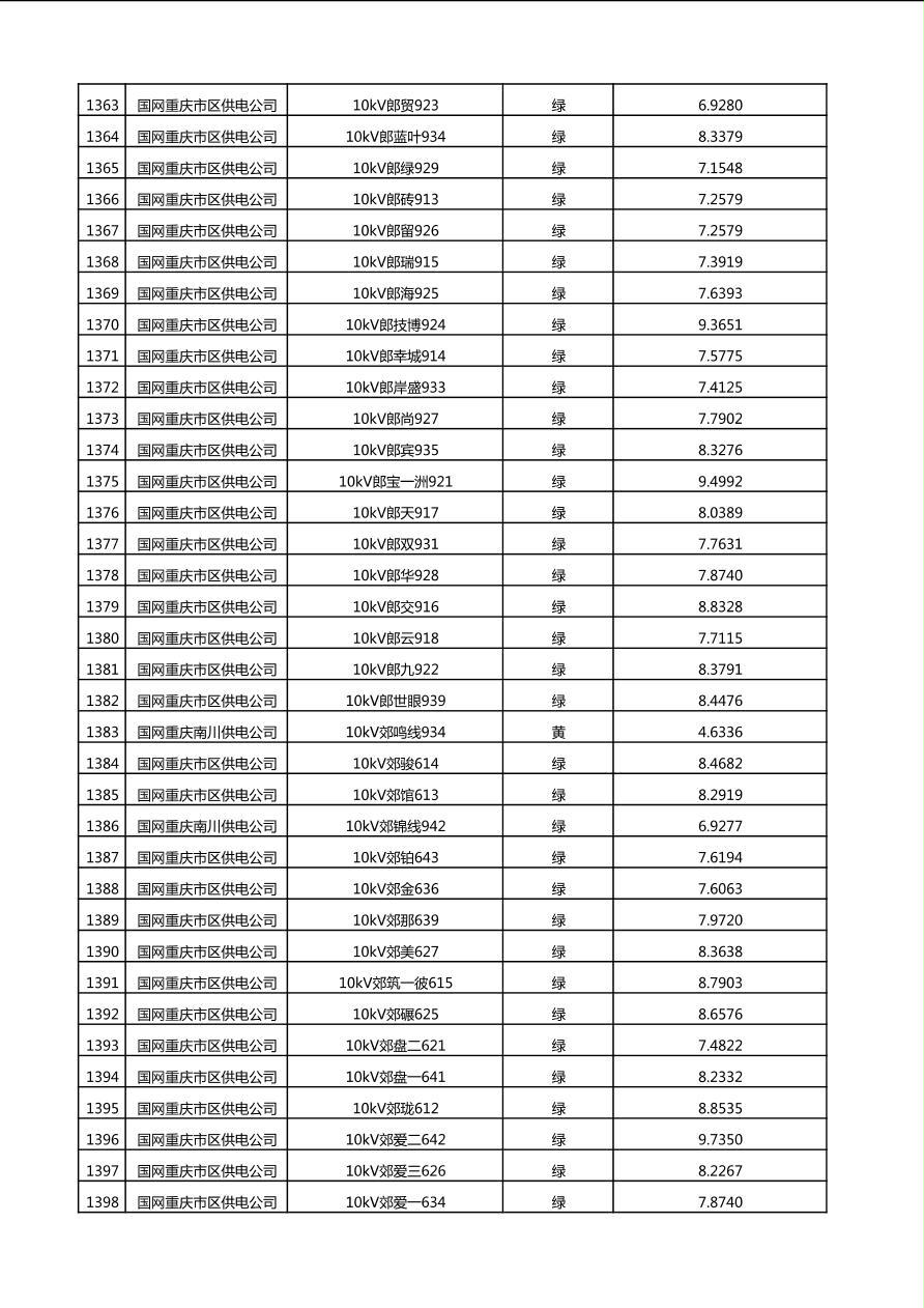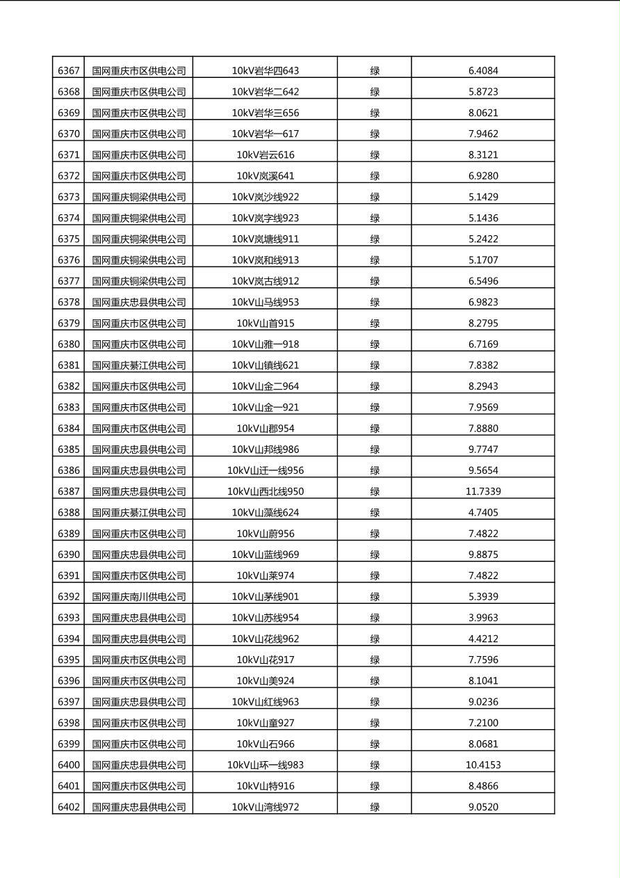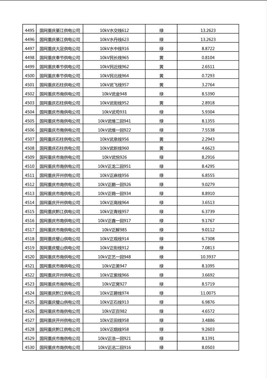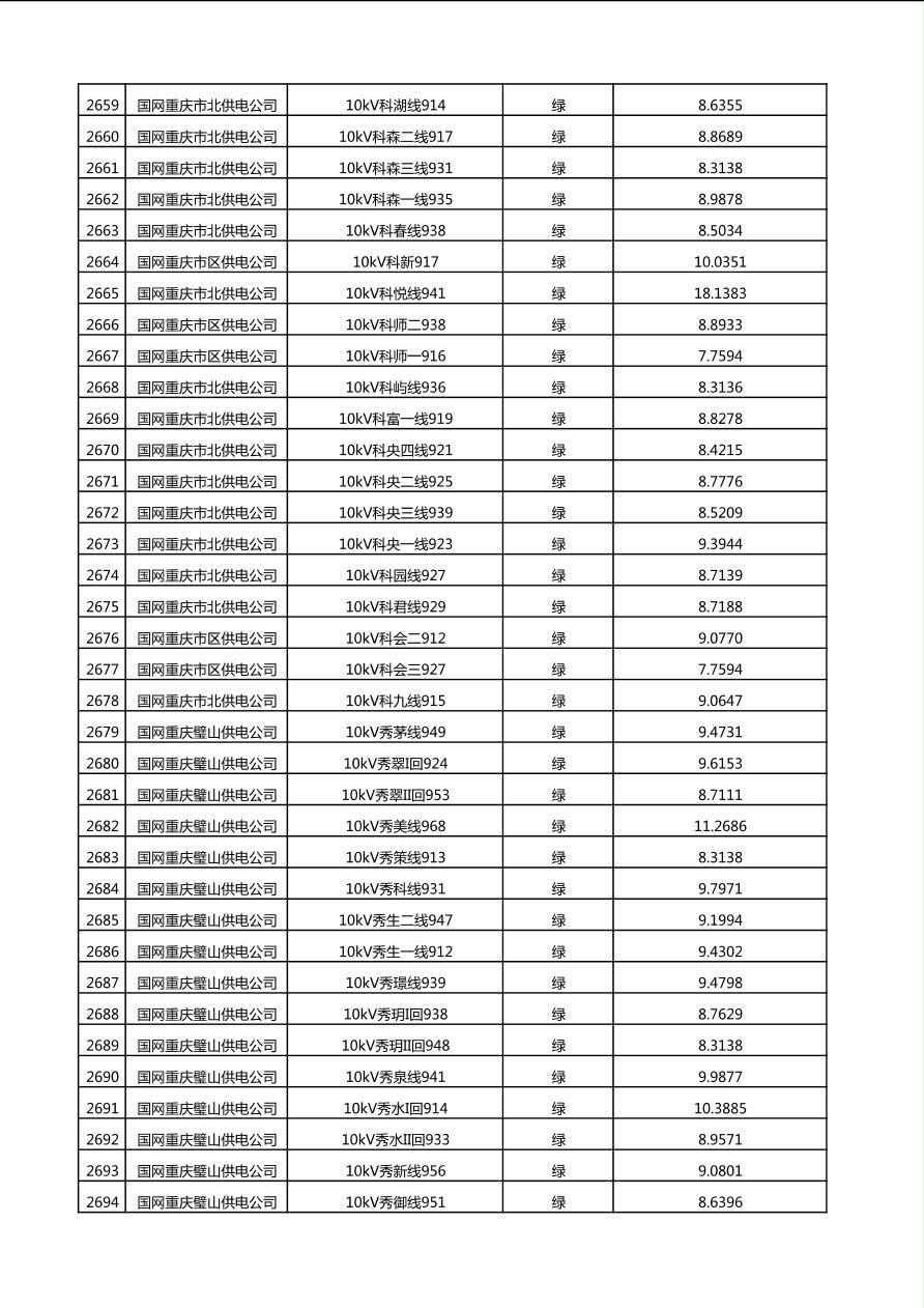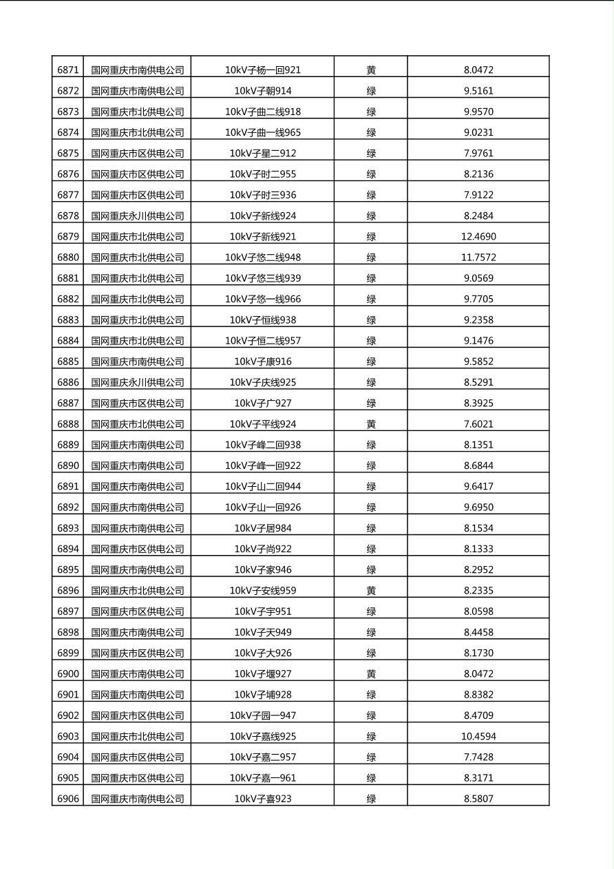 国网重庆市电力公司2025年第4季度分布式光伏可开放容量公示(10千伏配线)