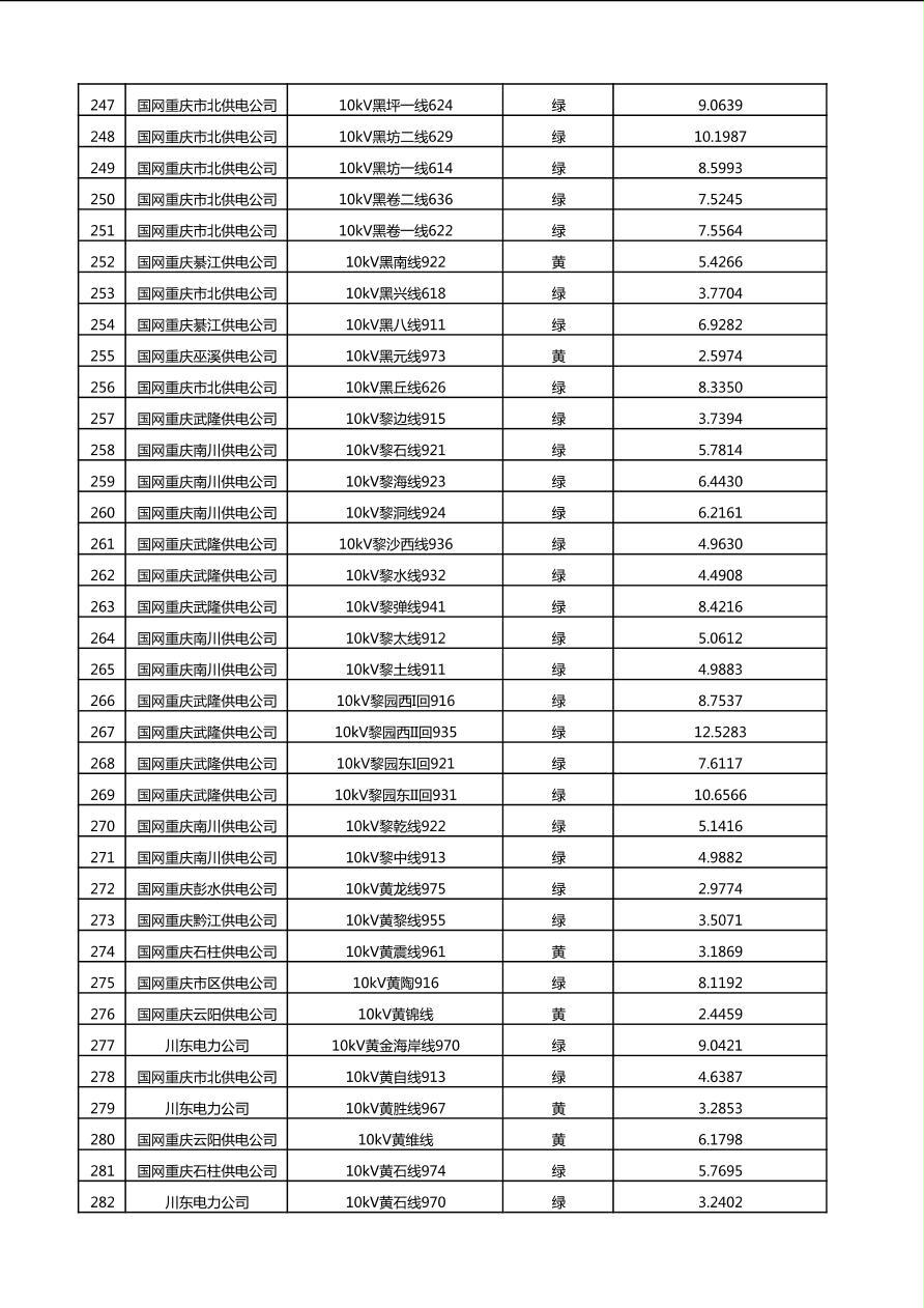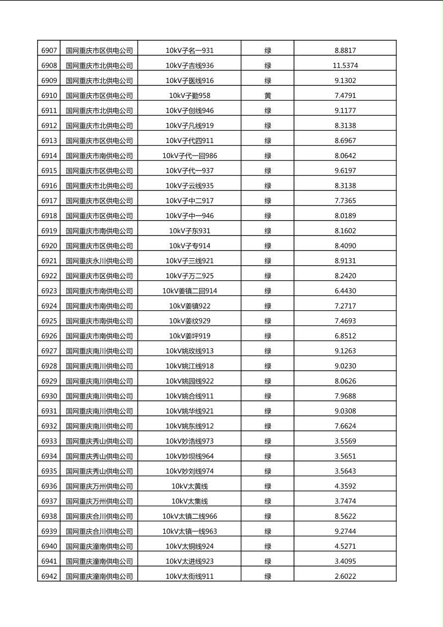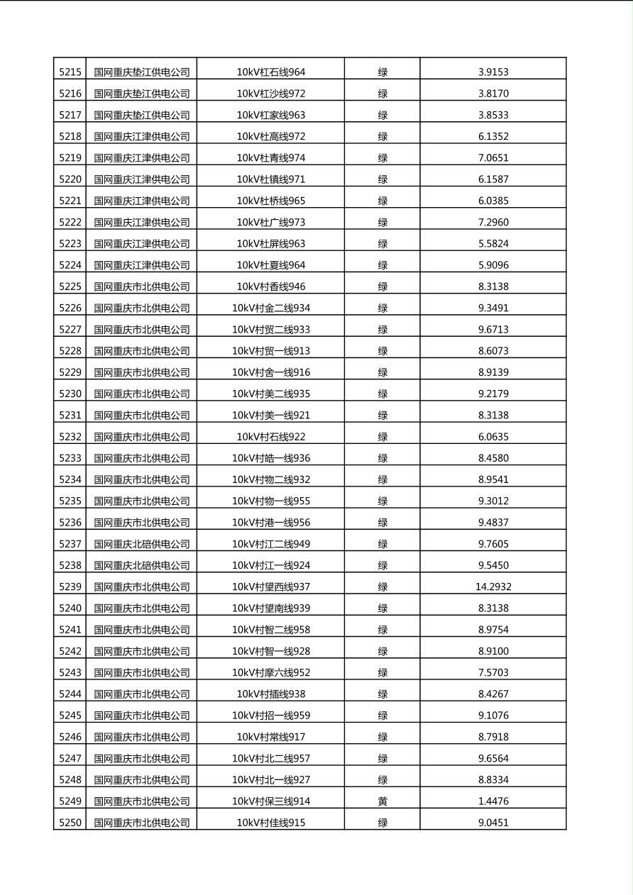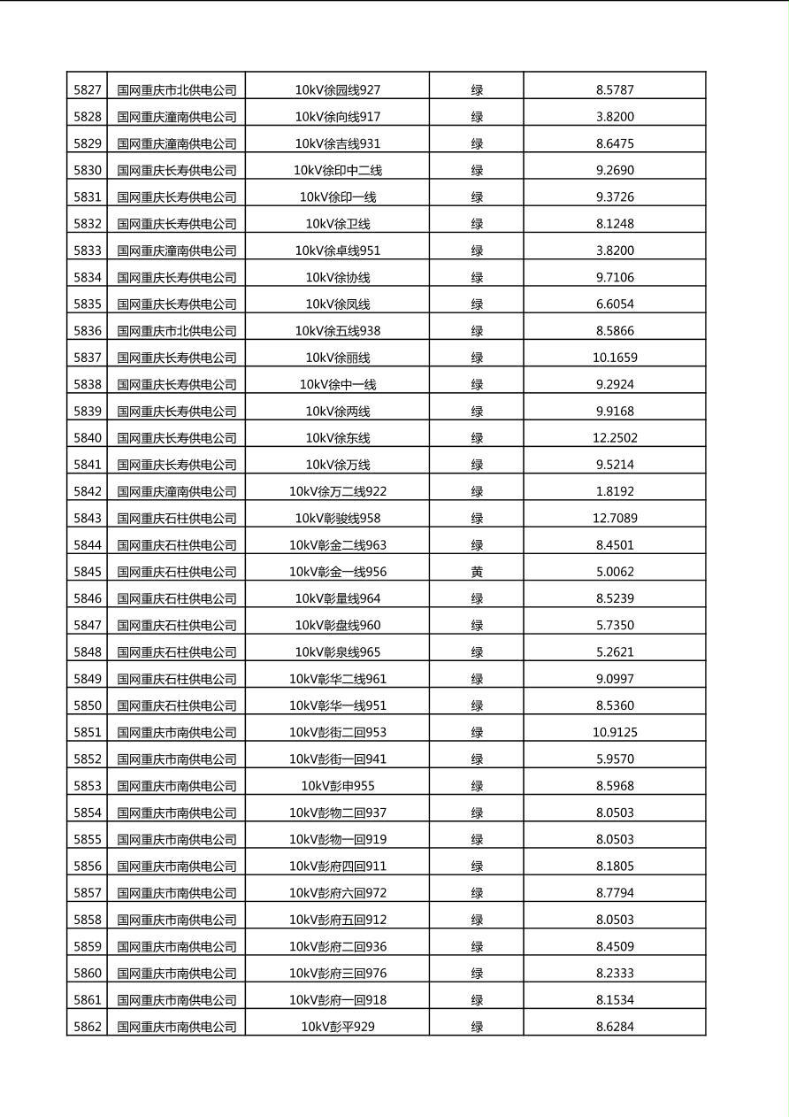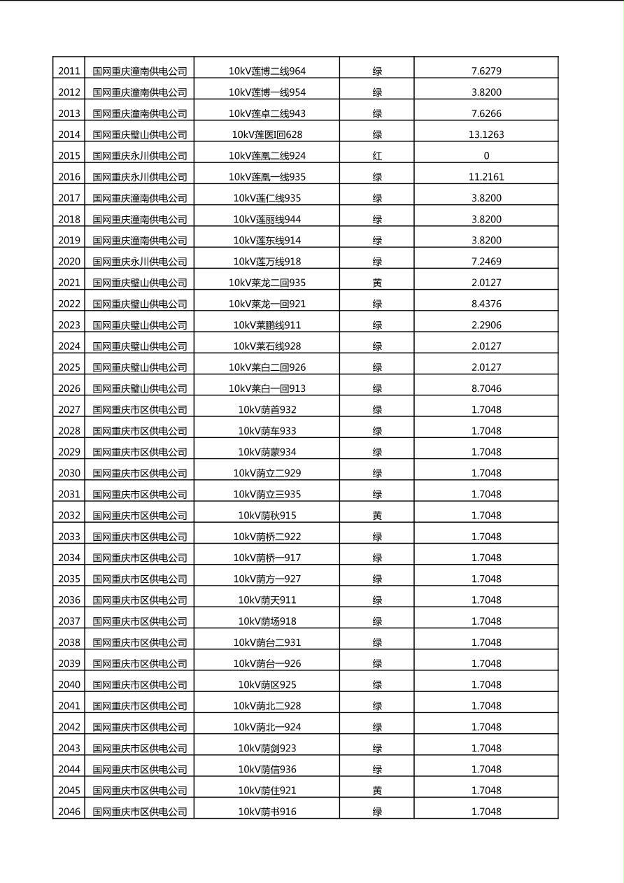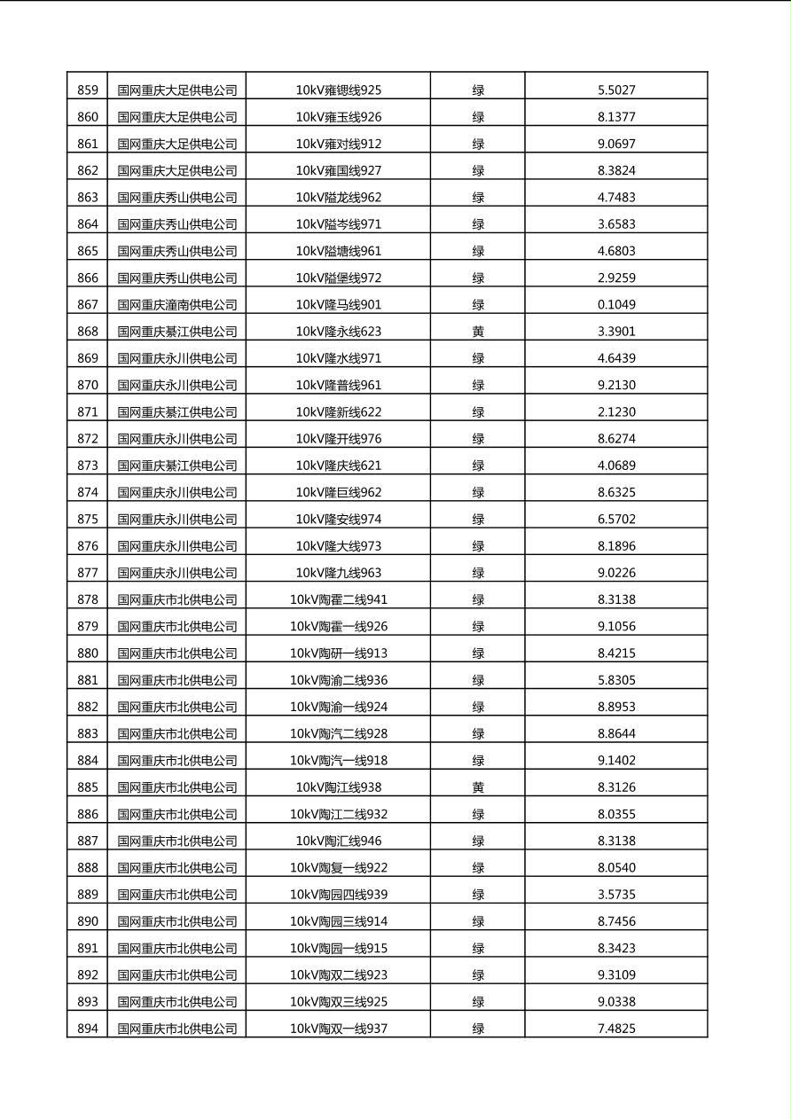 国网重庆市电力公司2025年第4季度分布式光伏可开放容量公示(10千伏配线)