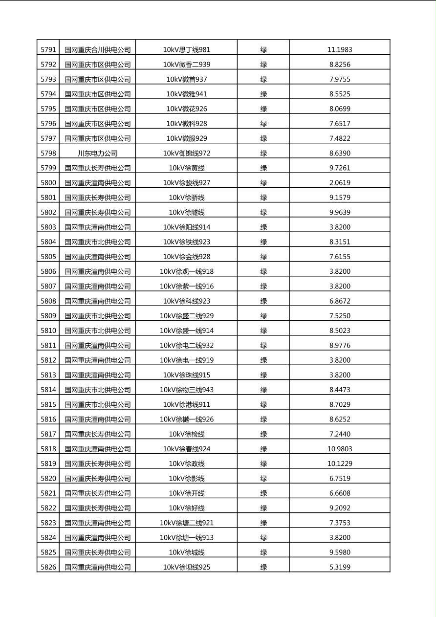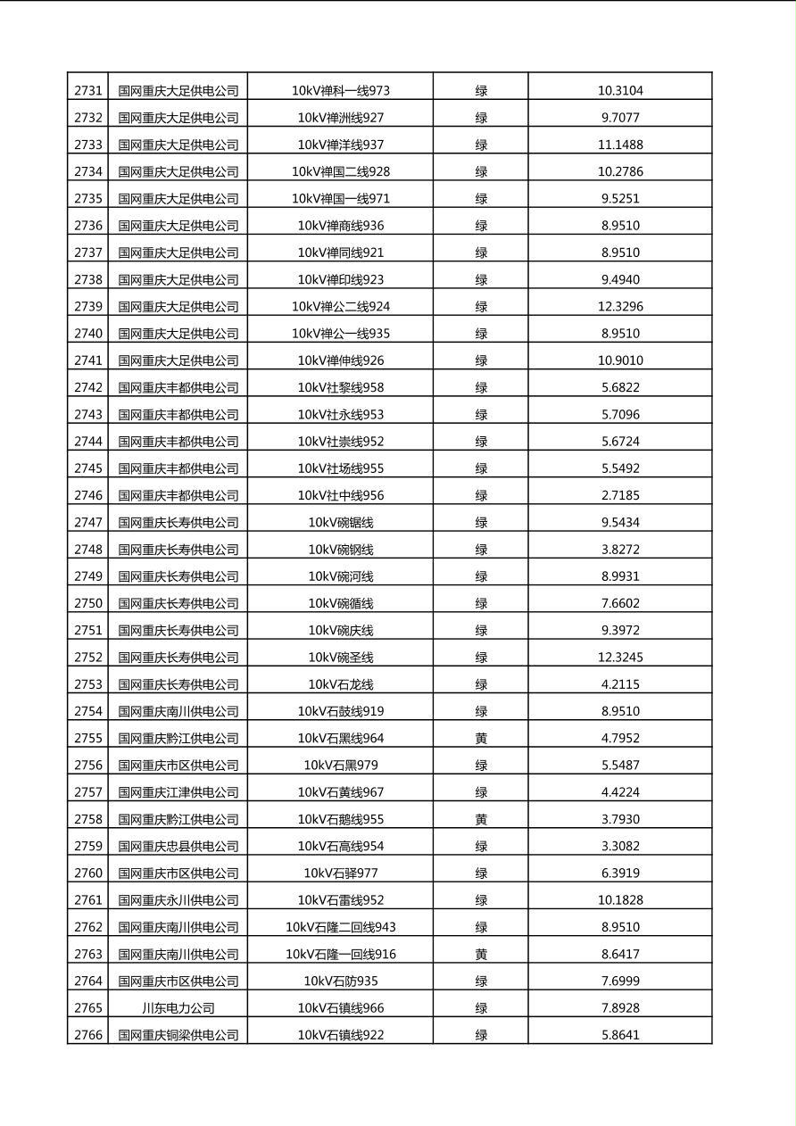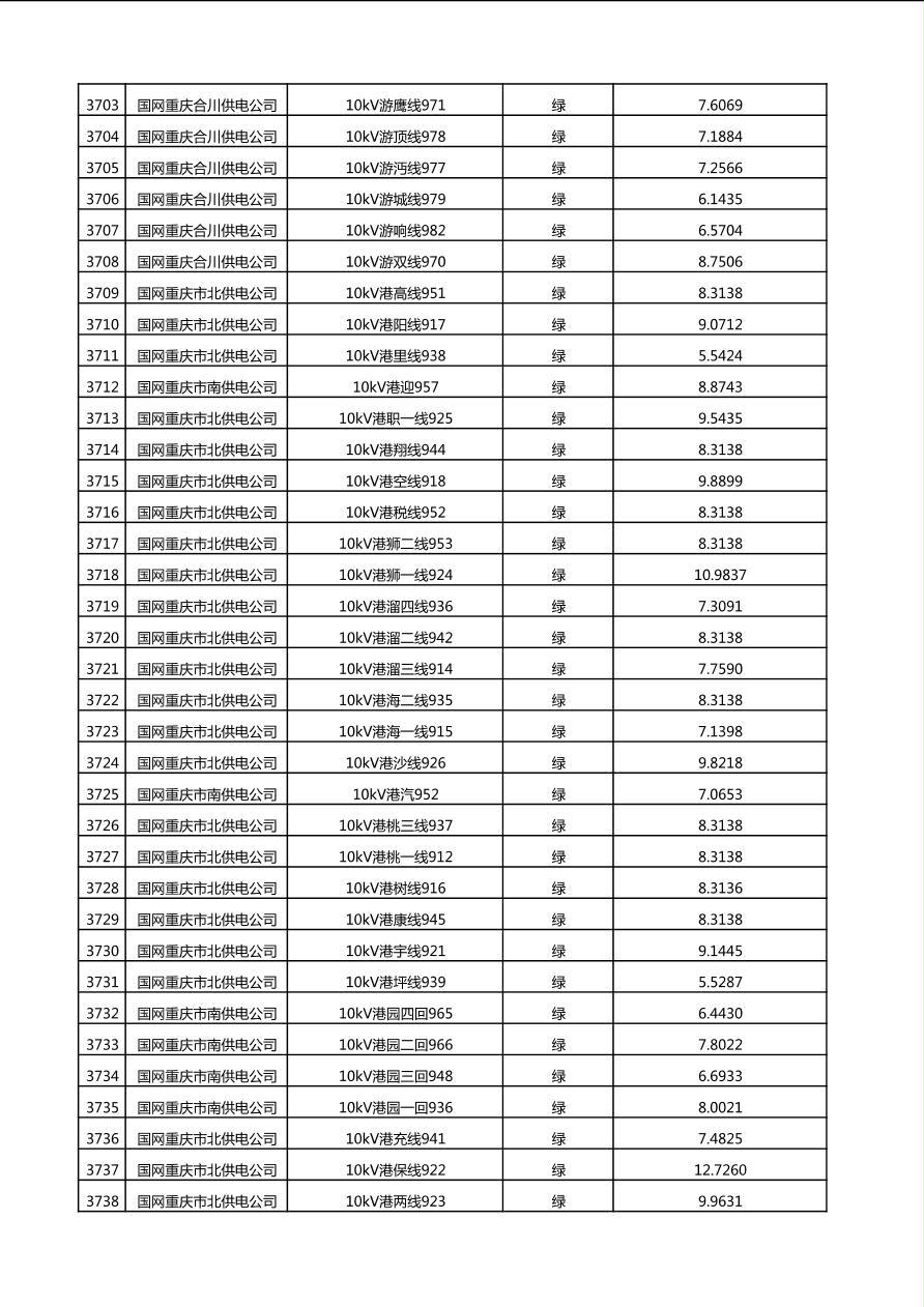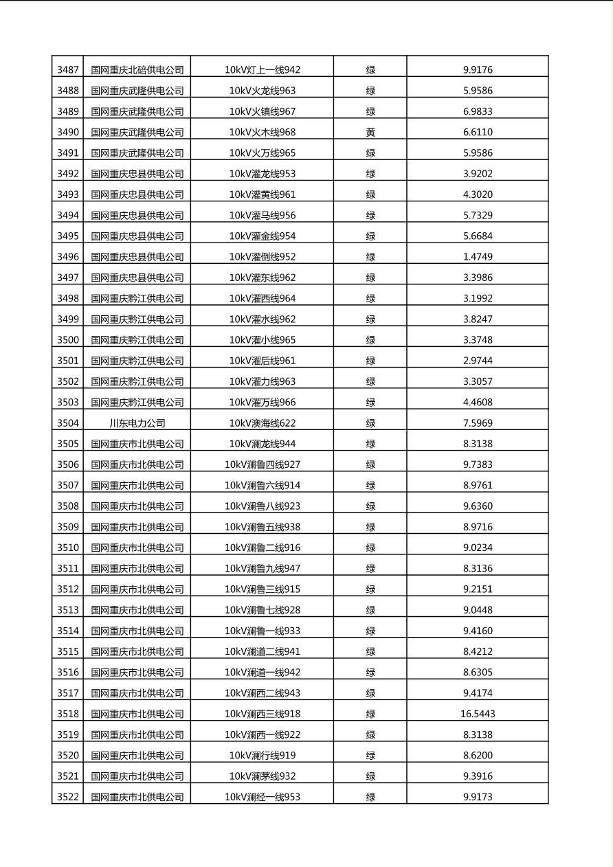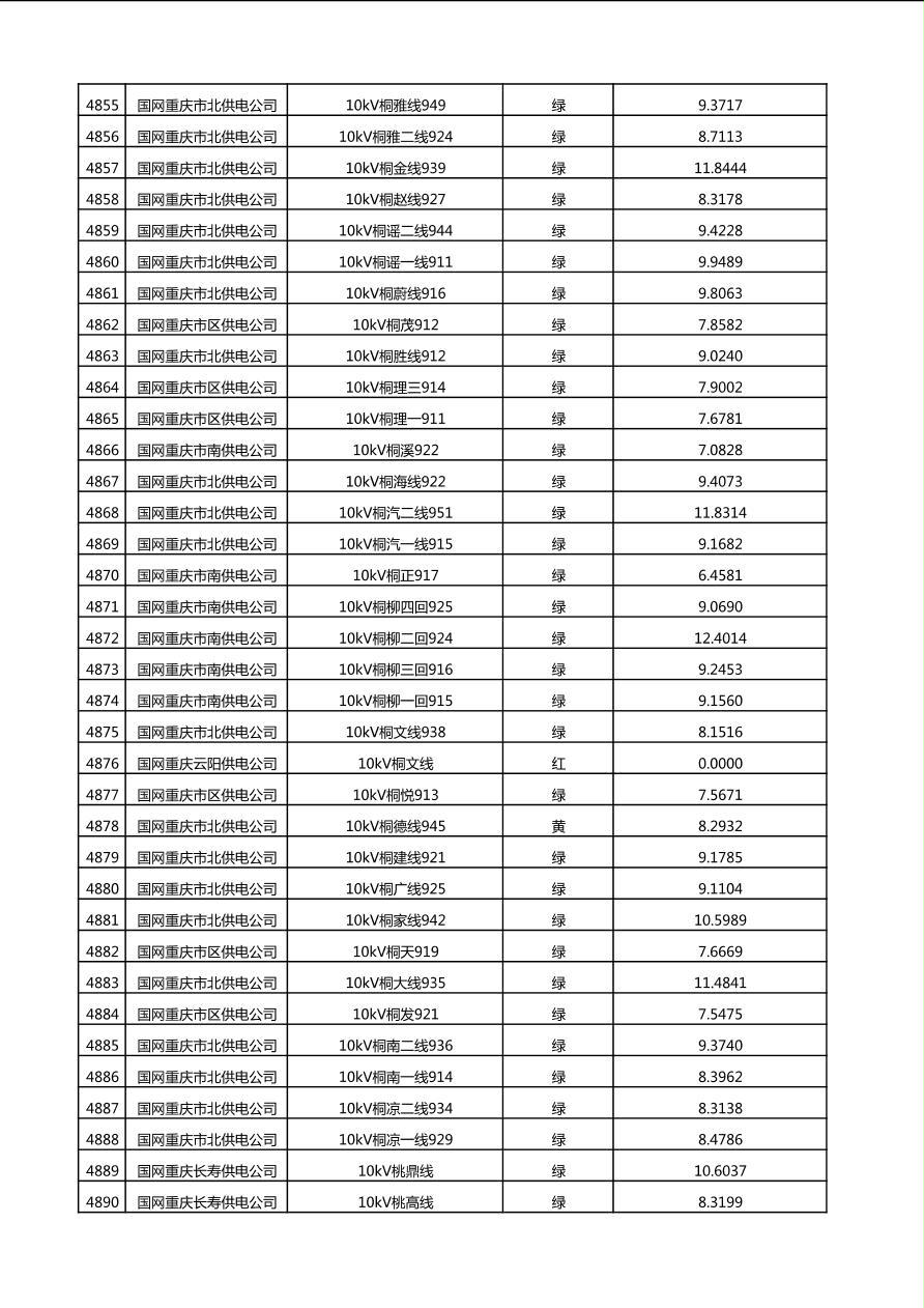 国网重庆市电力公司2025年第4季度分布式光伏可开放容量公示(10千伏配线)