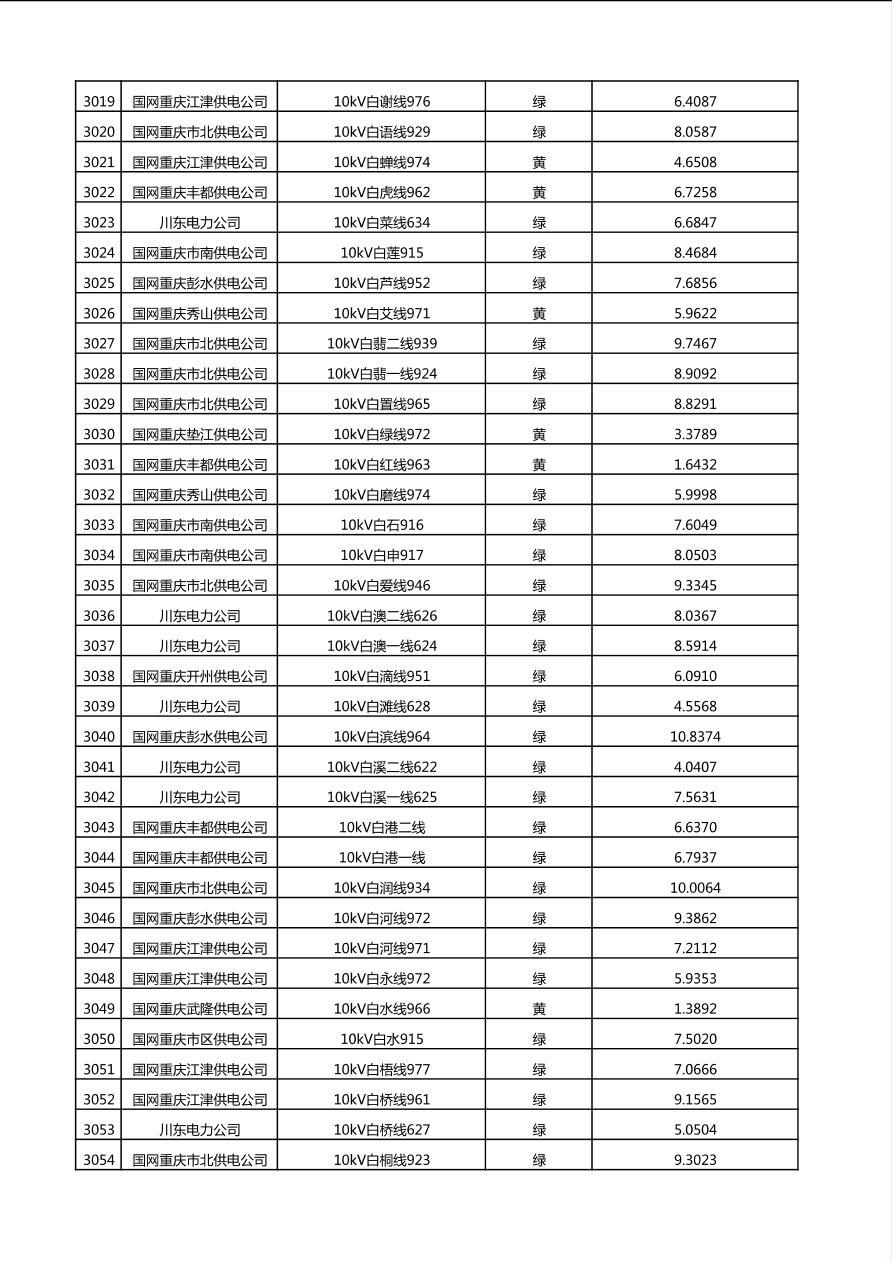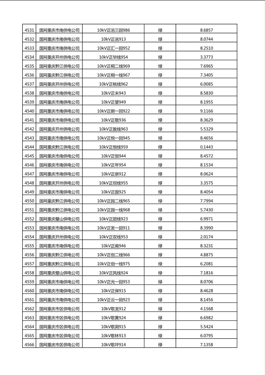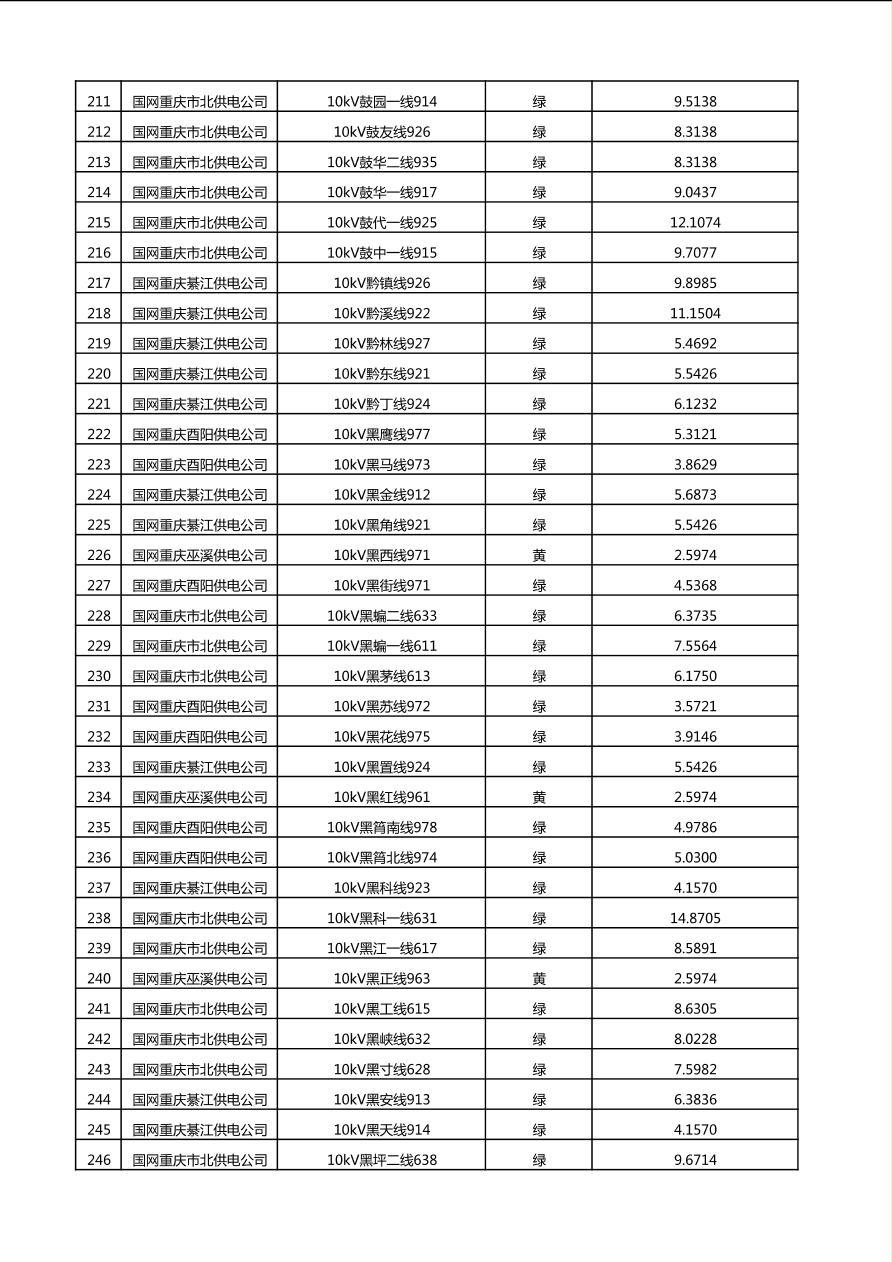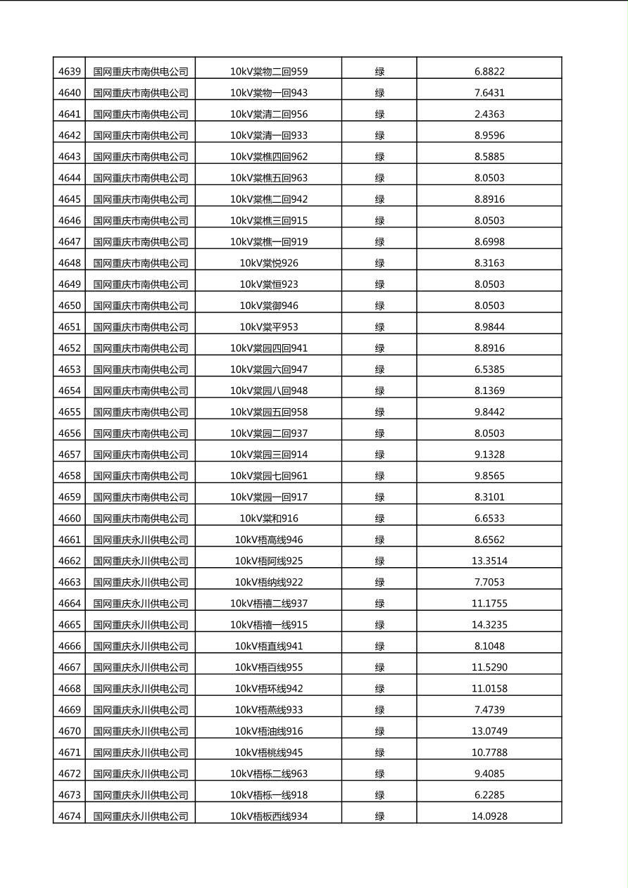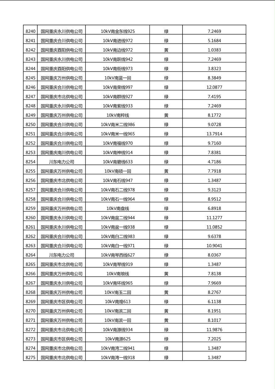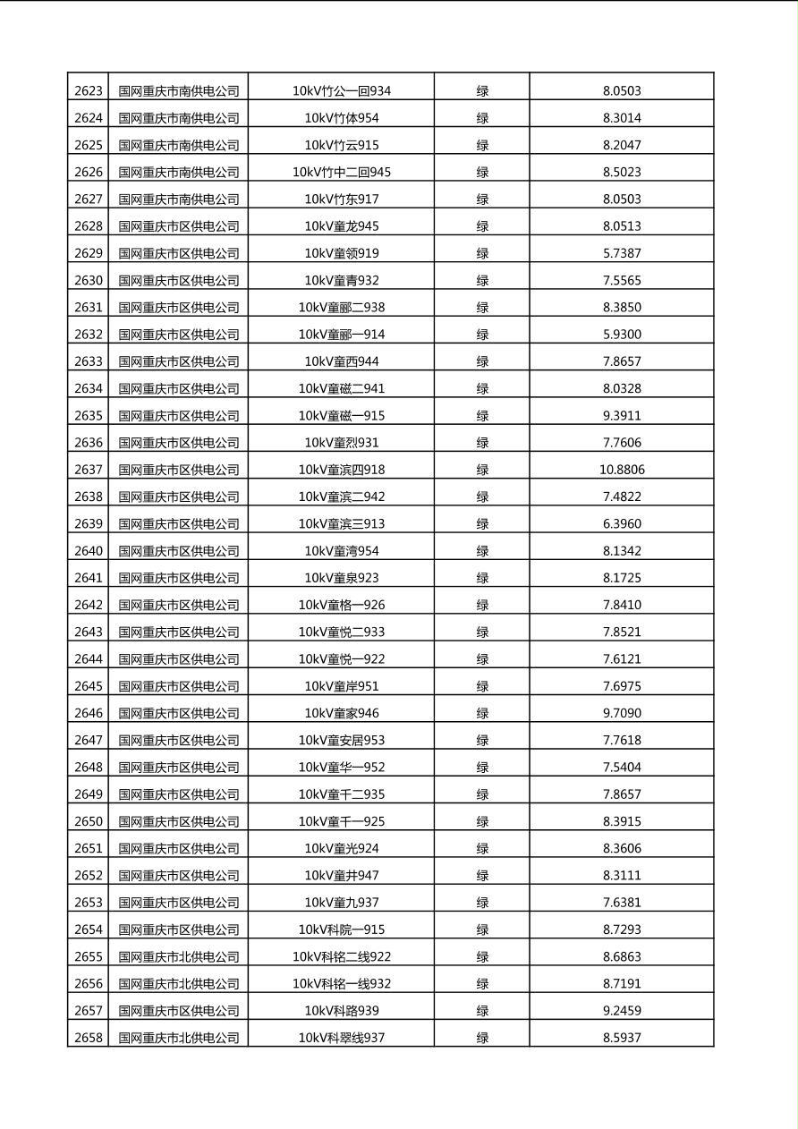 国网重庆市电力公司2025年第4季度分布式光伏可开放容量公示(10千伏配线)