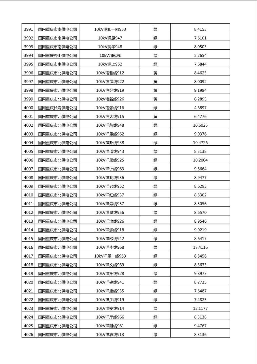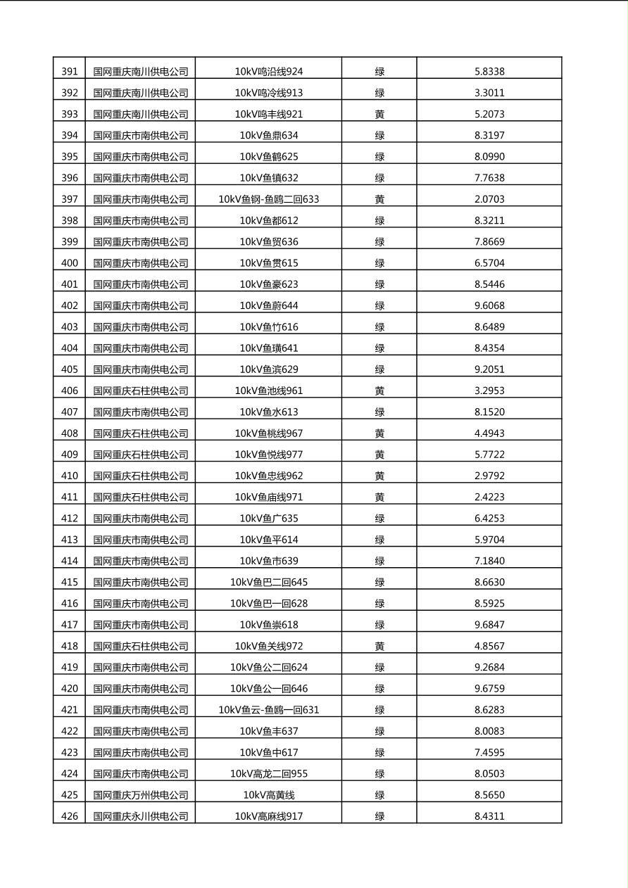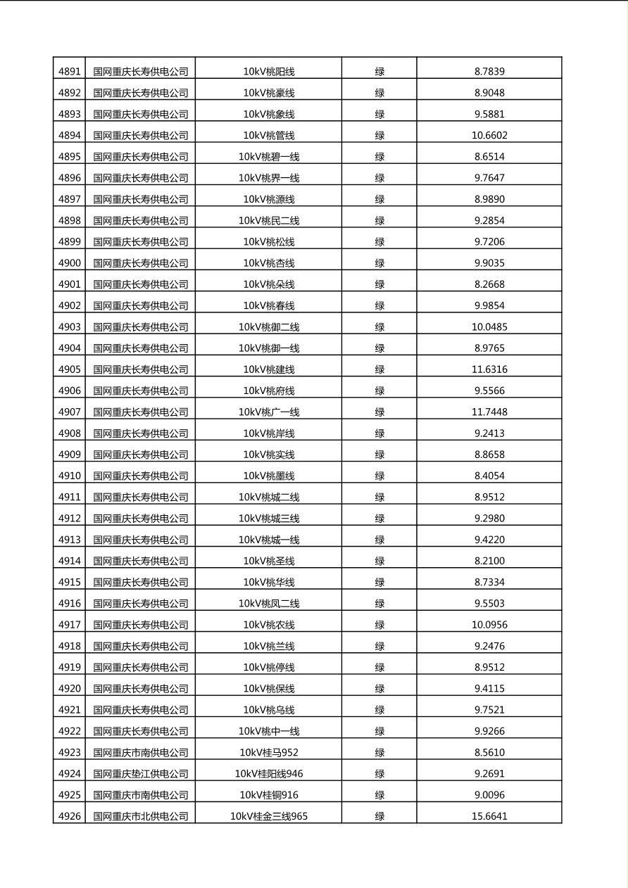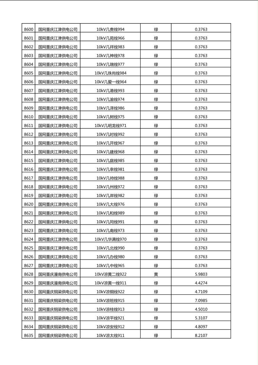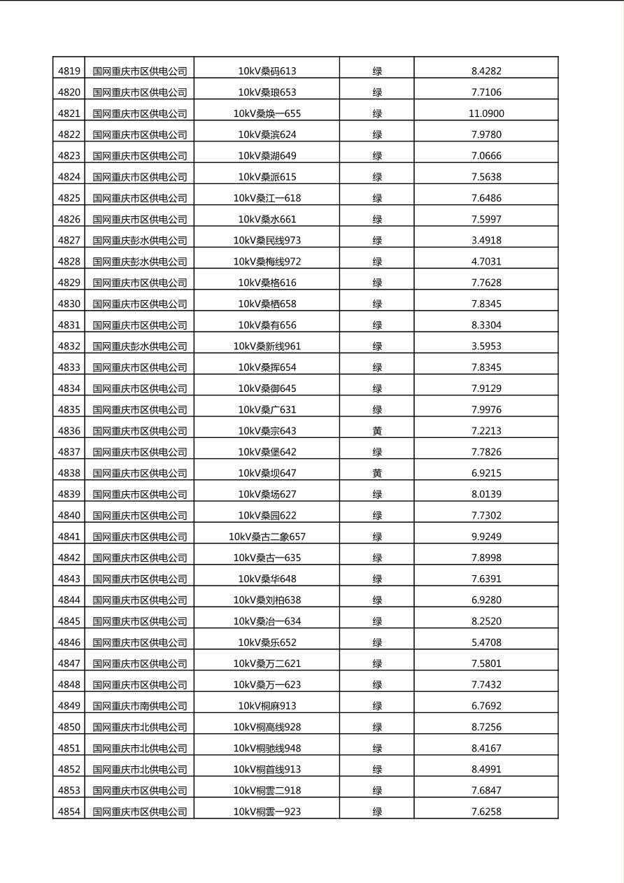 国网重庆市电力公司2025年第4季度分布式光伏可开放容量公示(10千伏配线)