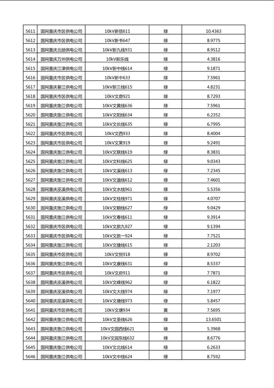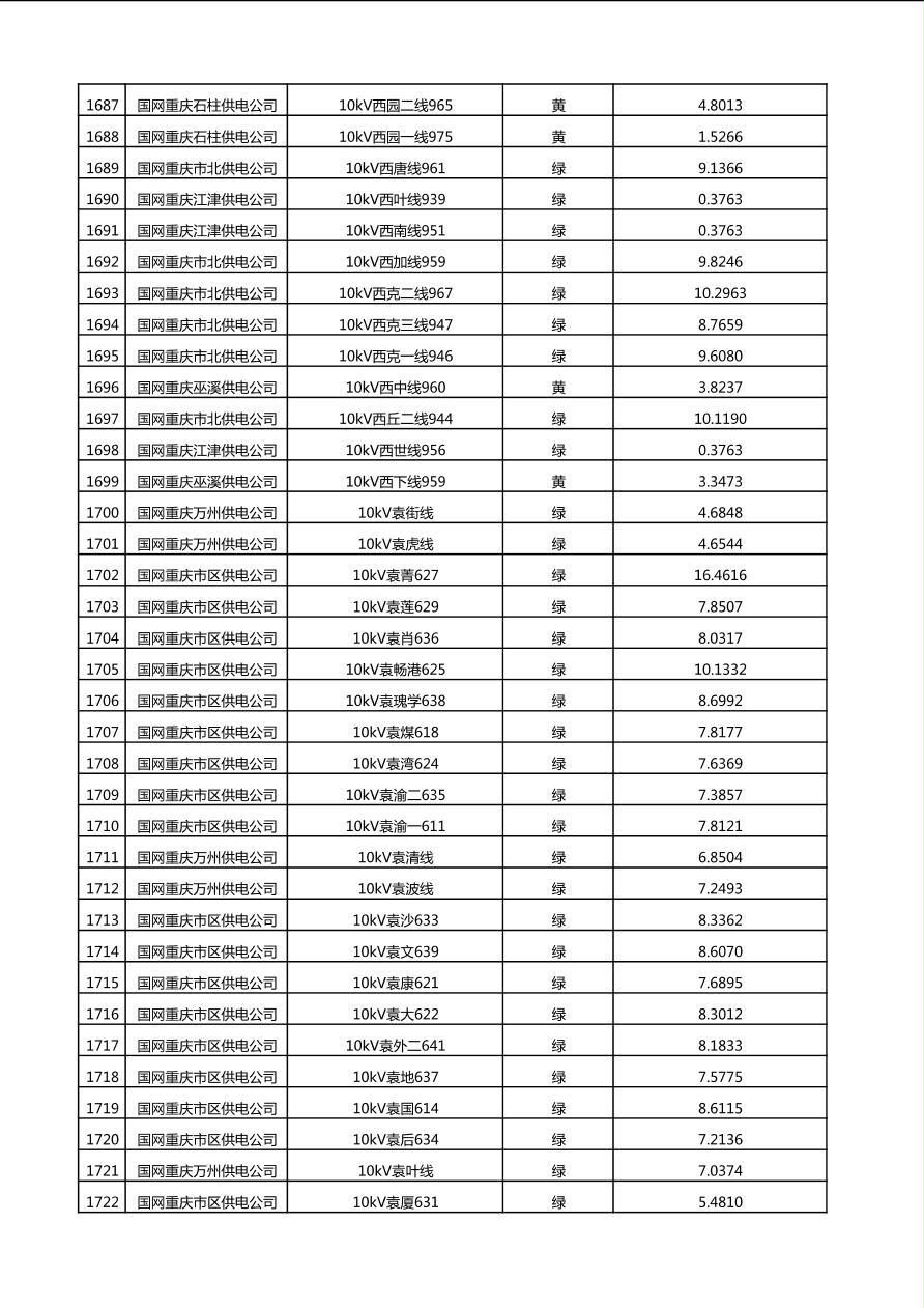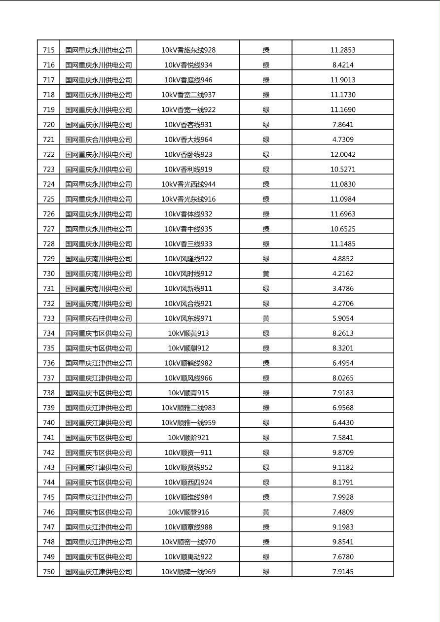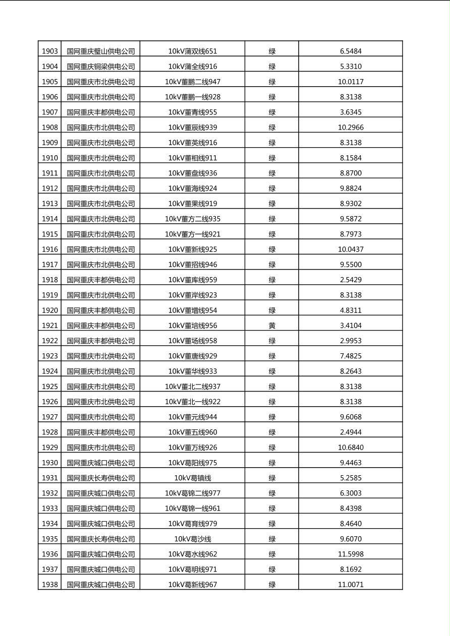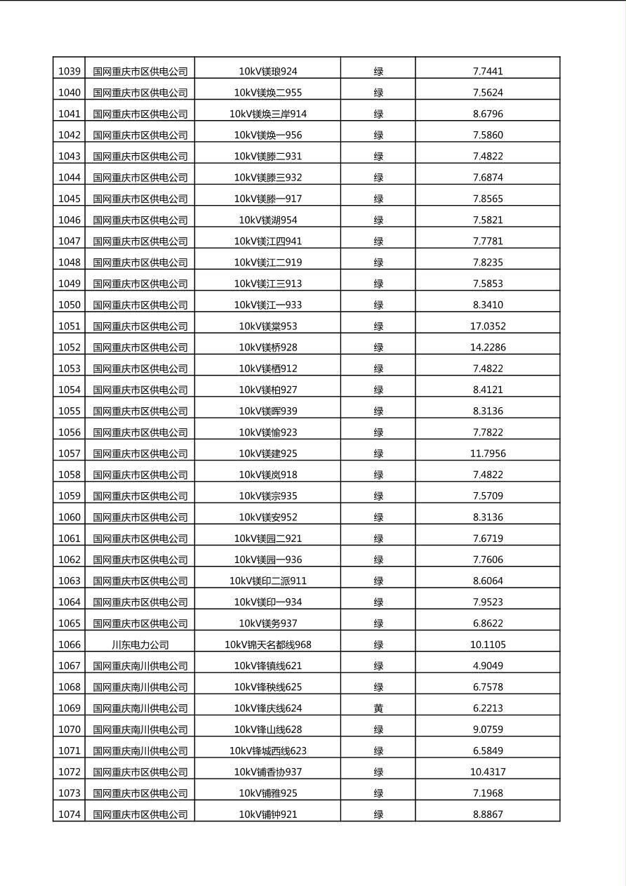 国网重庆市电力公司2025年第4季度分布式光伏可开放容量公示(10千伏配线)