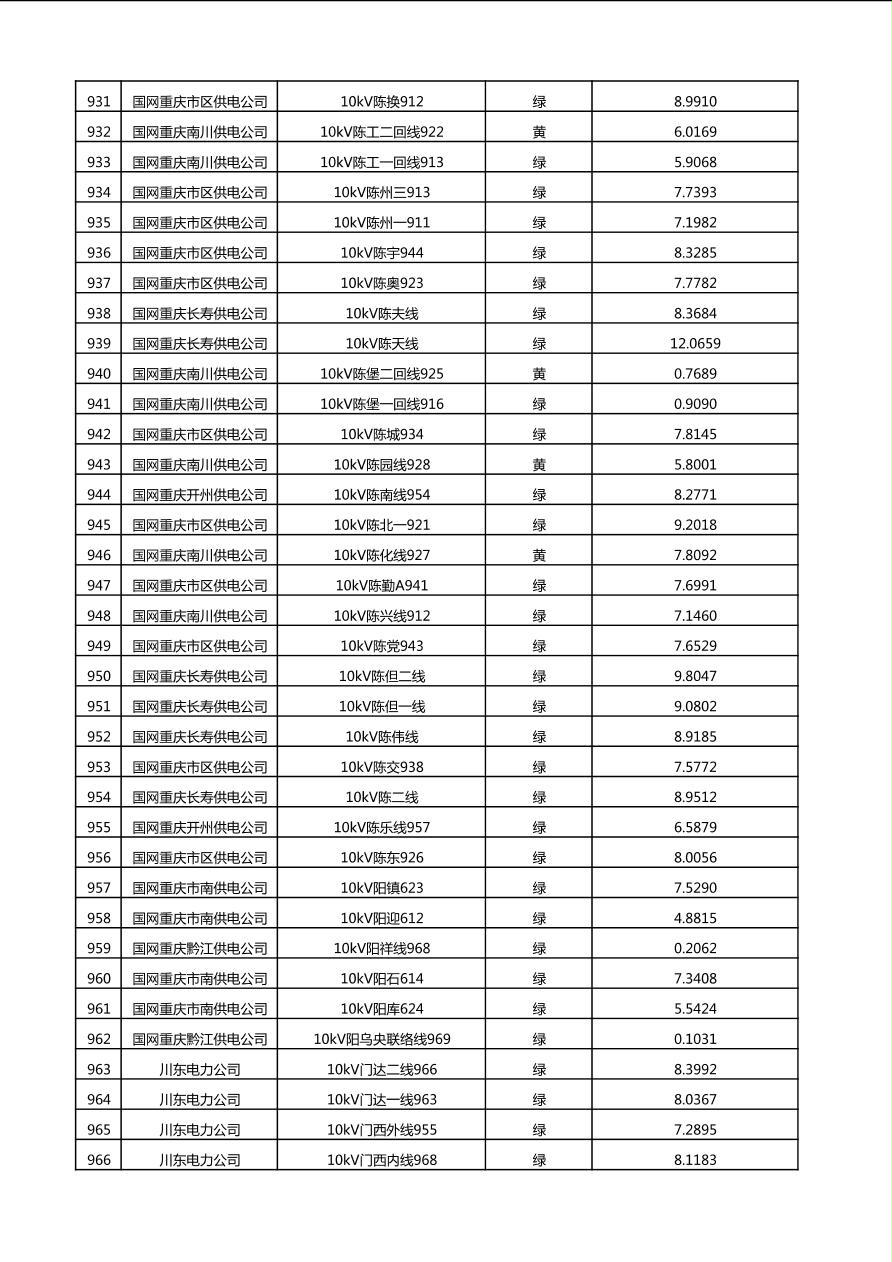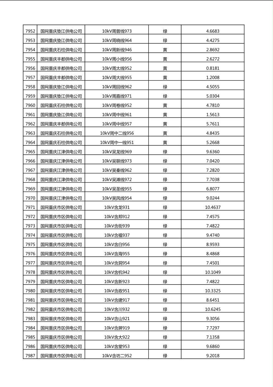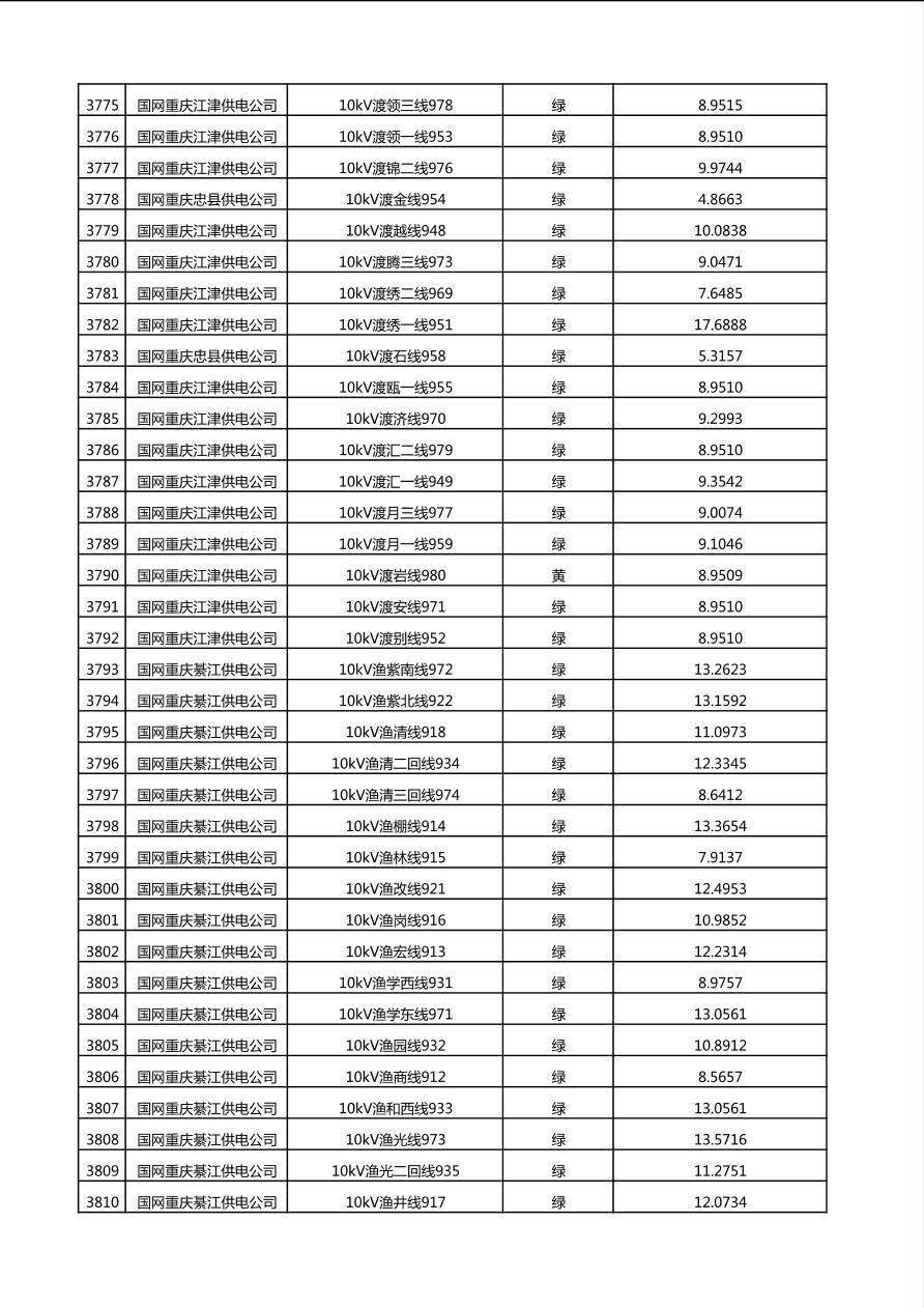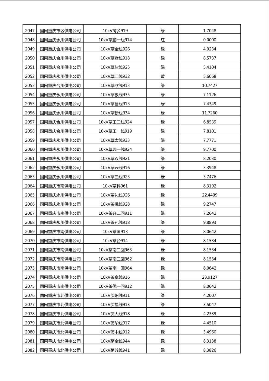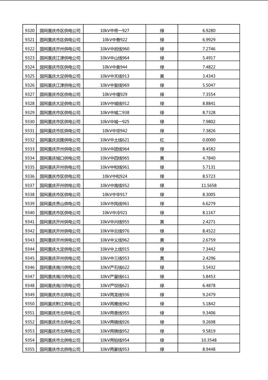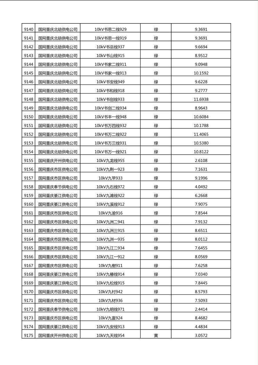 国网重庆市电力公司2025年第4季度分布式光伏可开放容量公示(10千伏配线)
