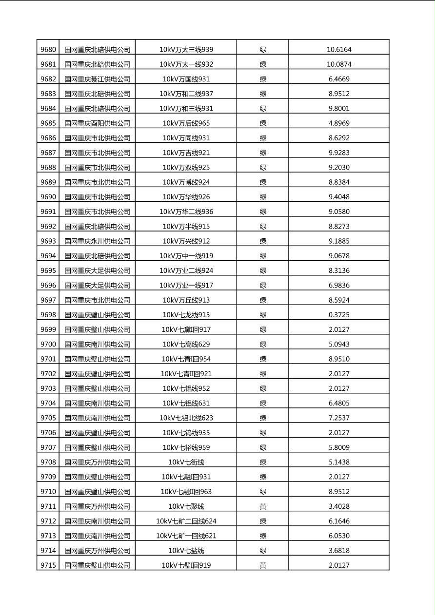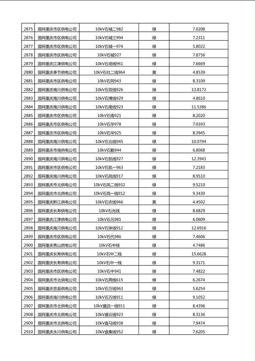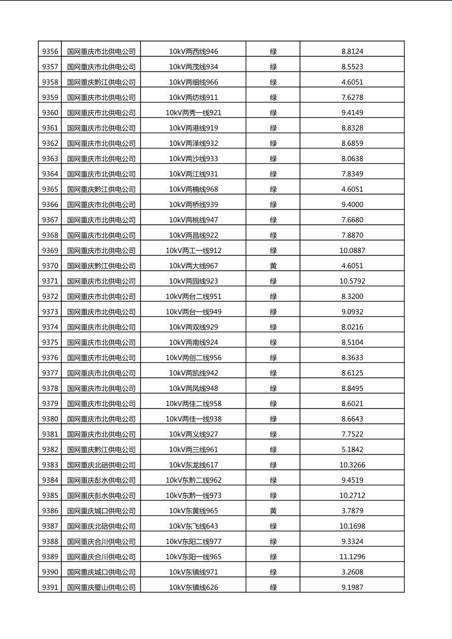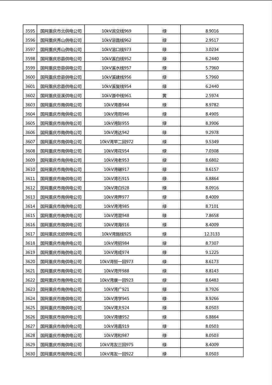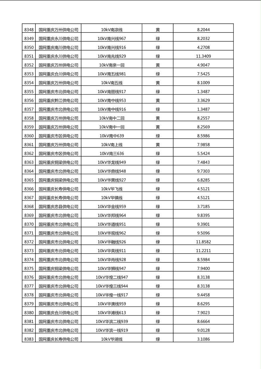 国网重庆市电力公司2025年第4季度分布式光伏可开放容量公示(10千伏配线)
