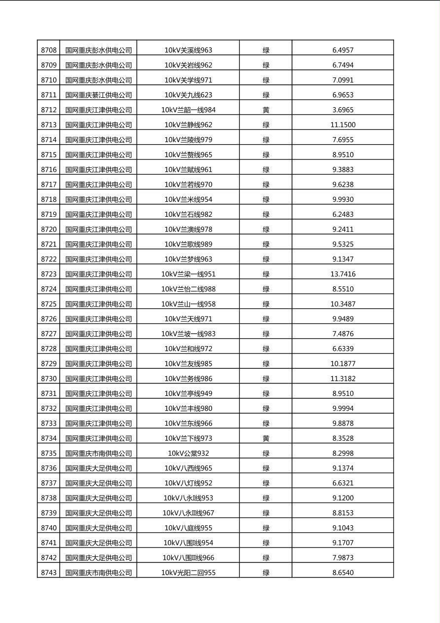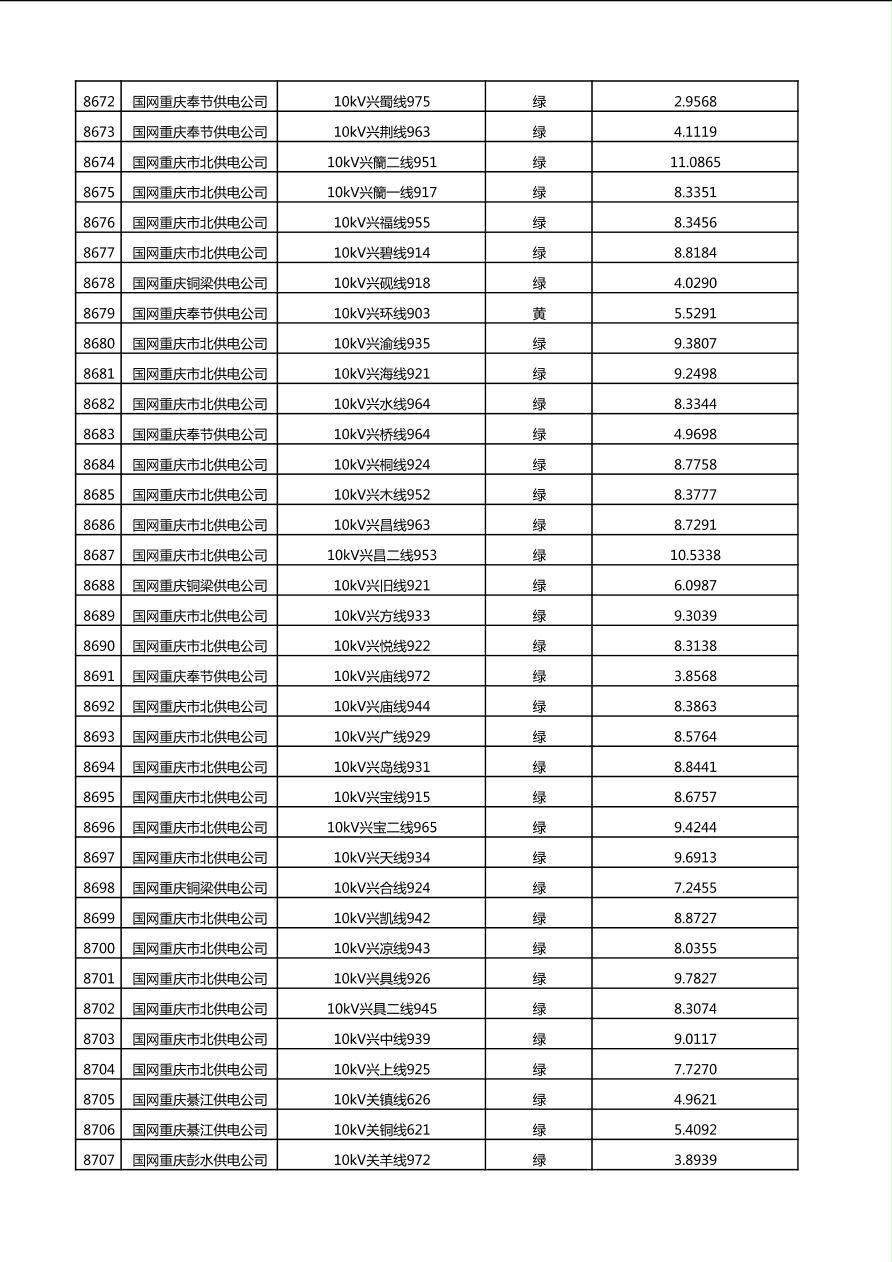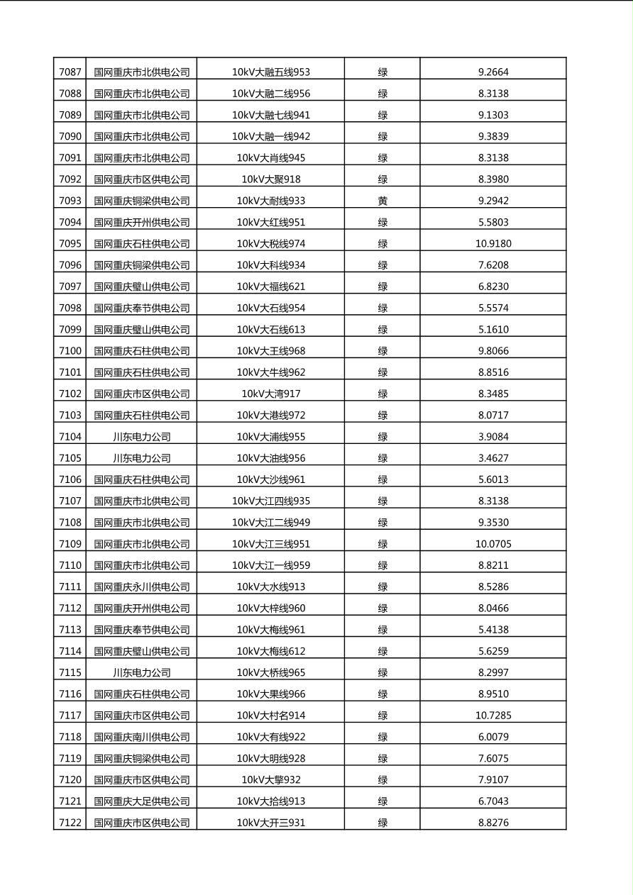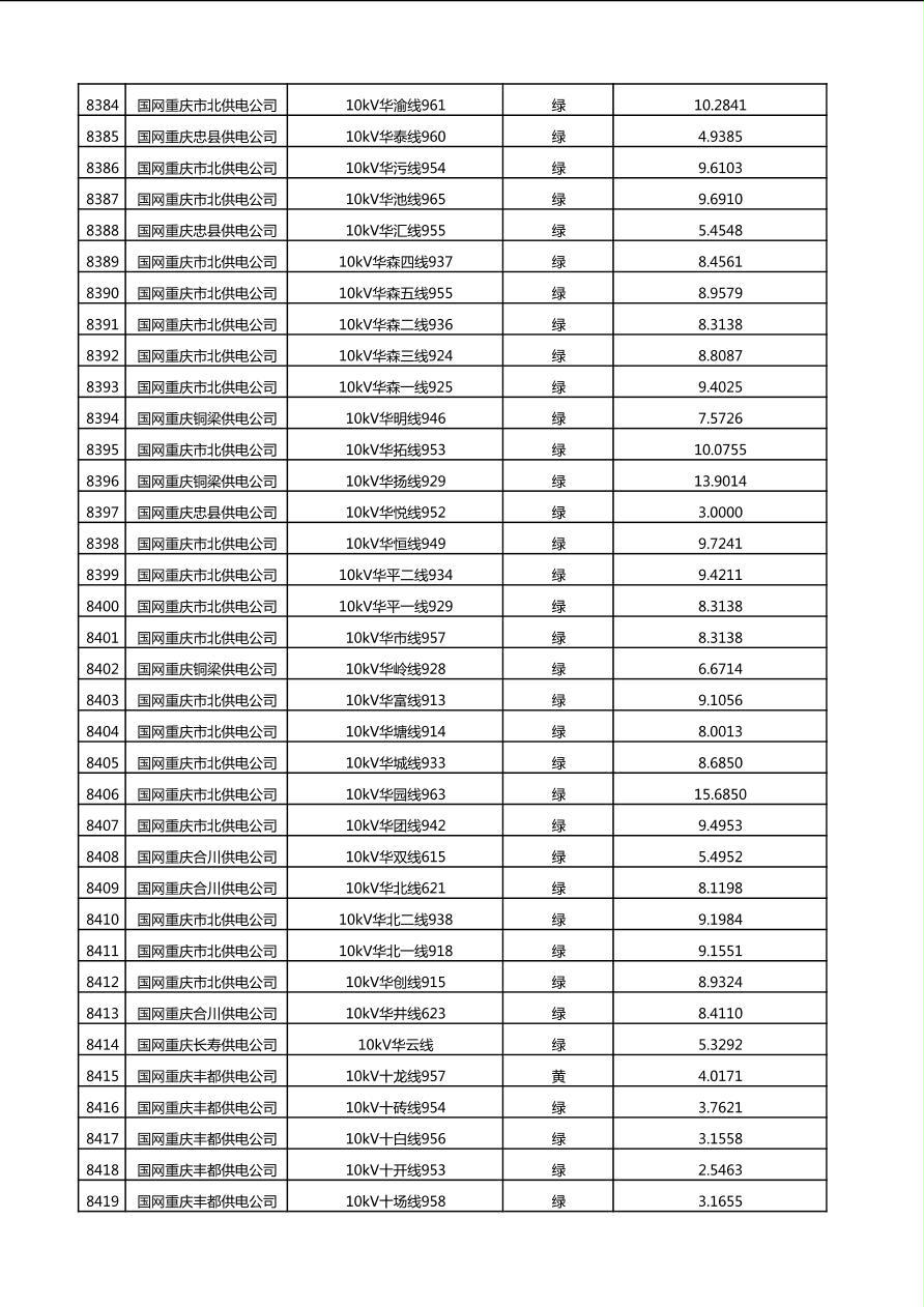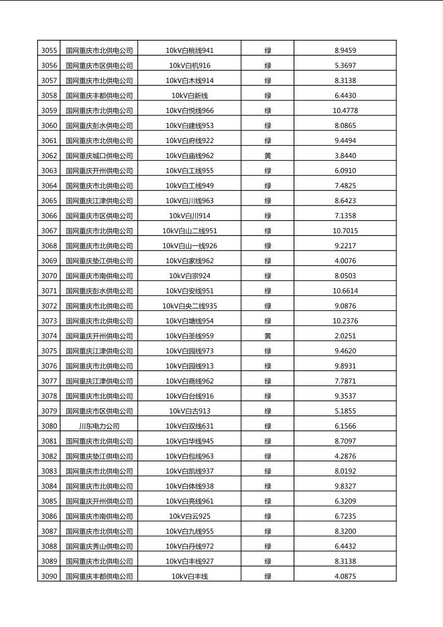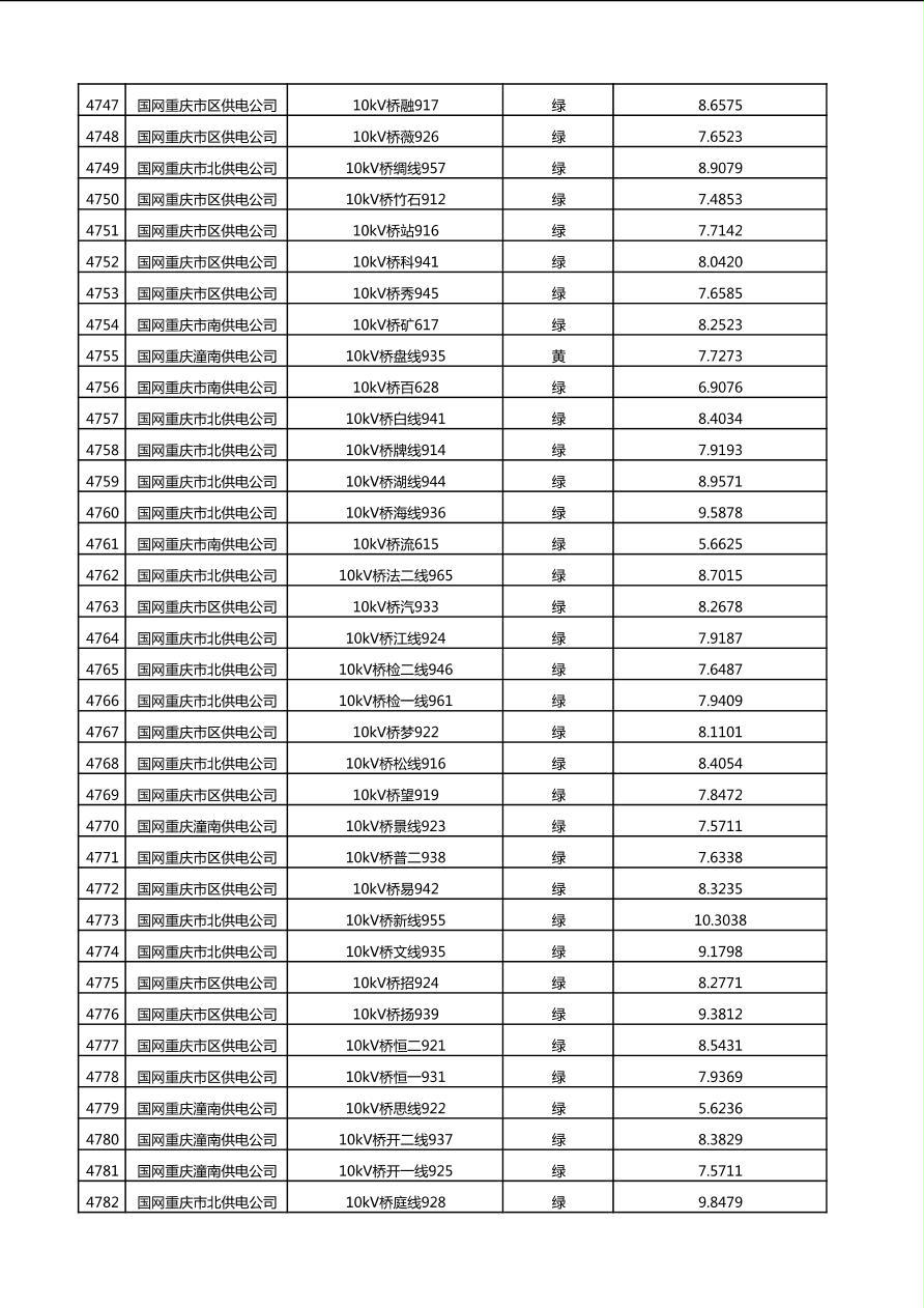 国网重庆市电力公司2025年第4季度分布式光伏可开放容量公示(10千伏配线)