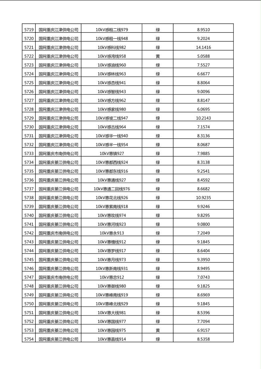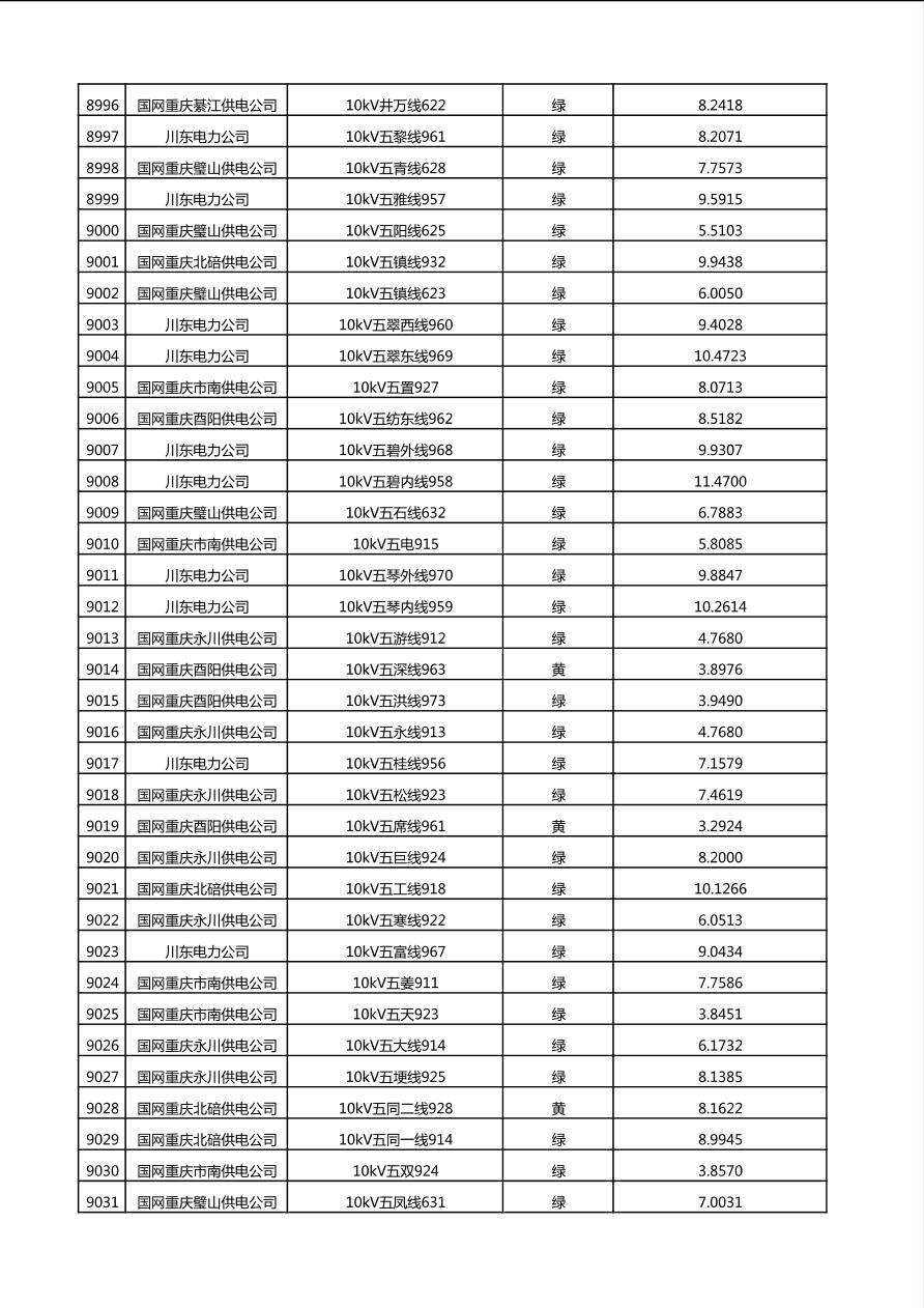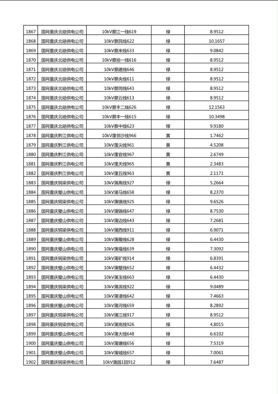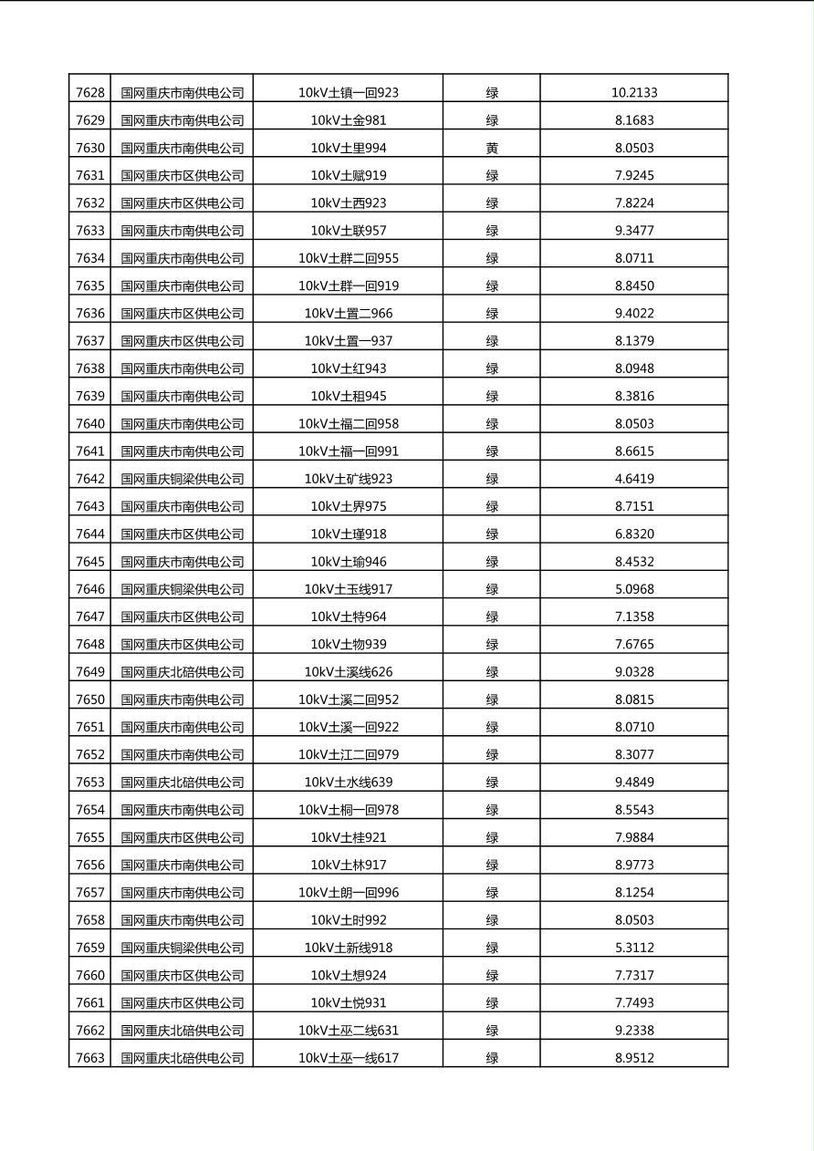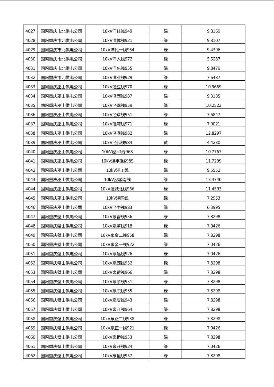 国网重庆市电力公司2025年第4季度分布式光伏可开放容量公示(10千伏配线)