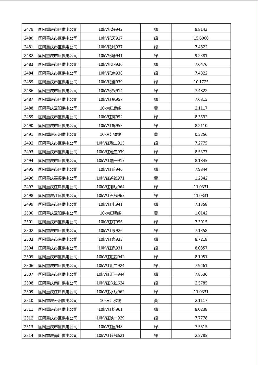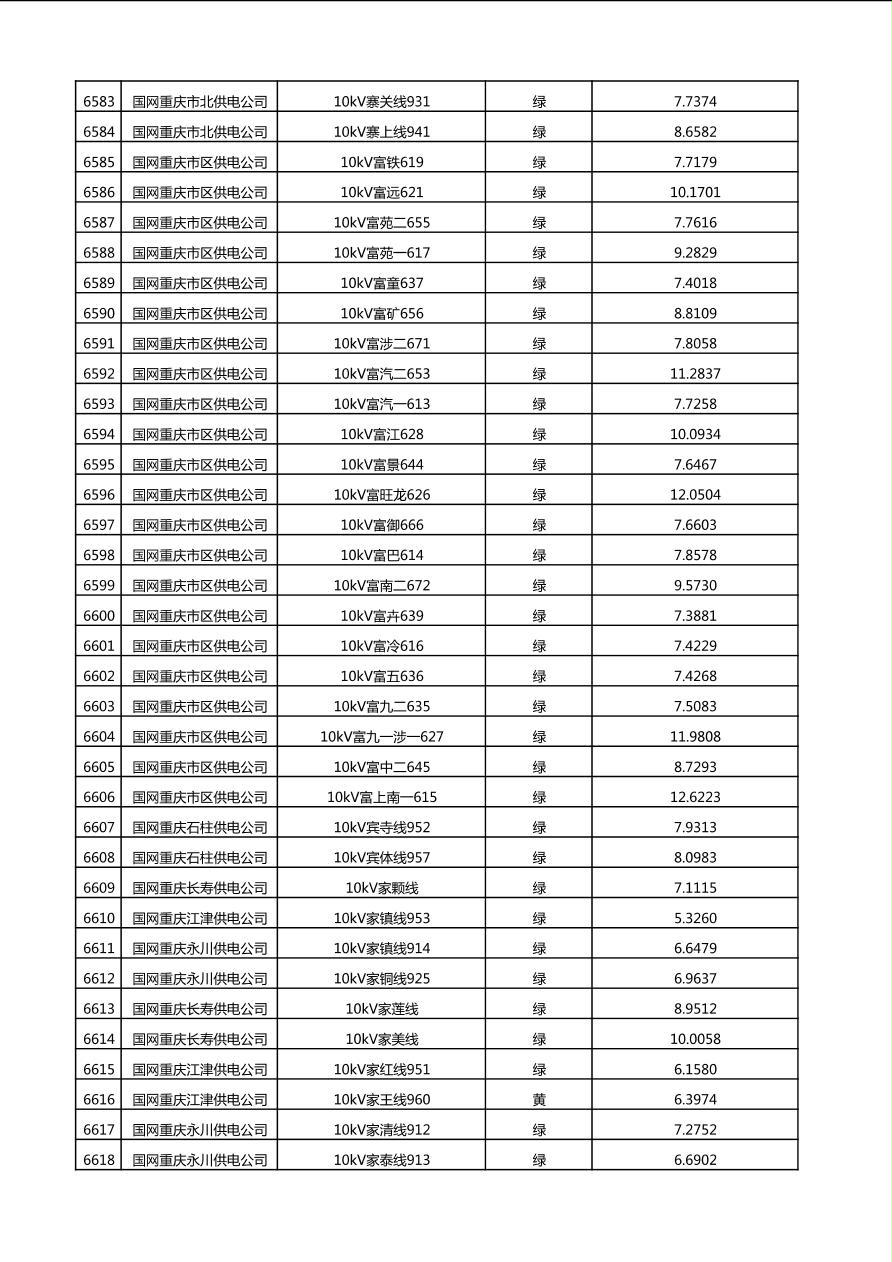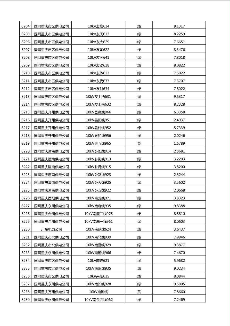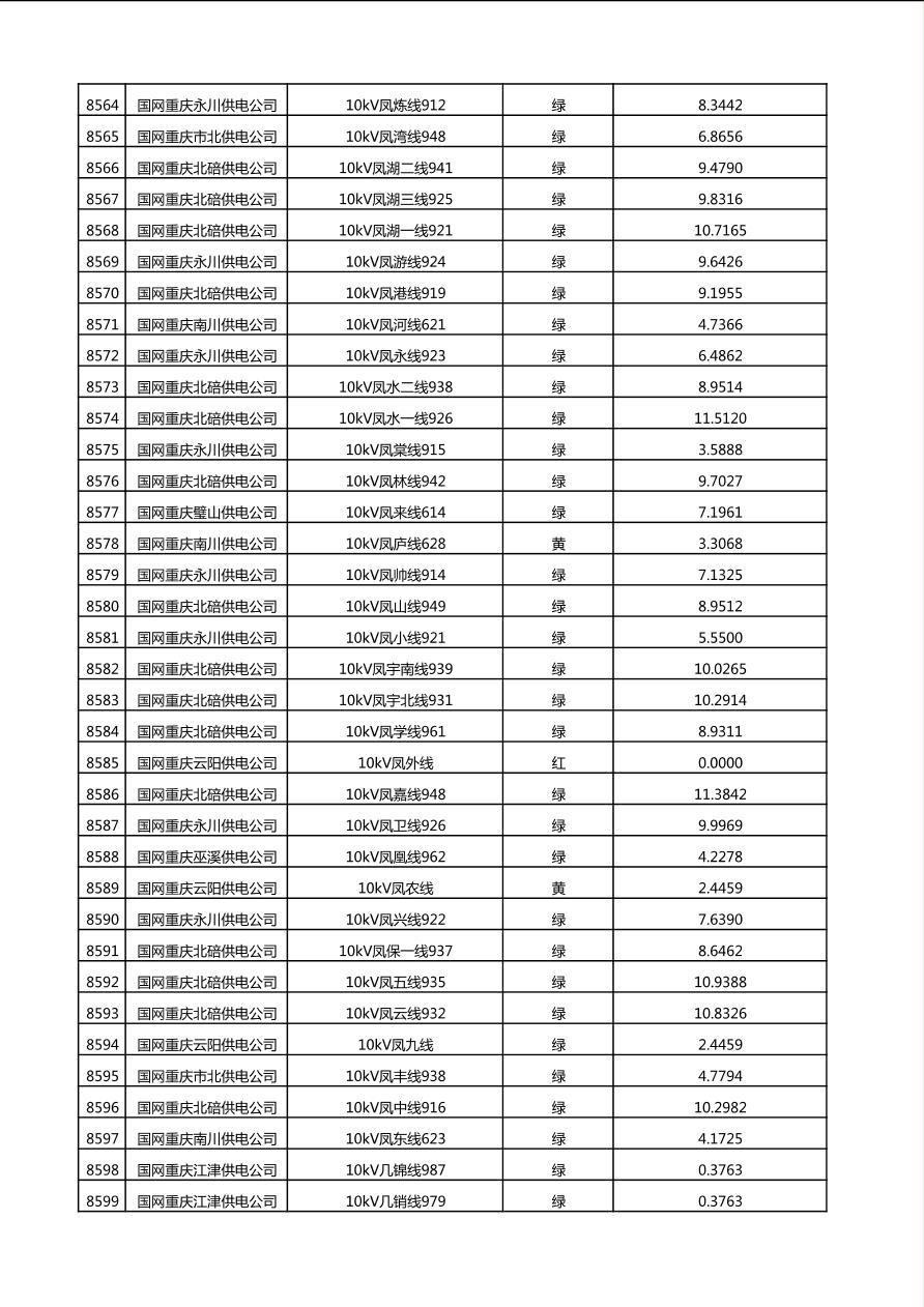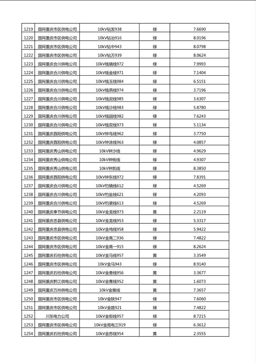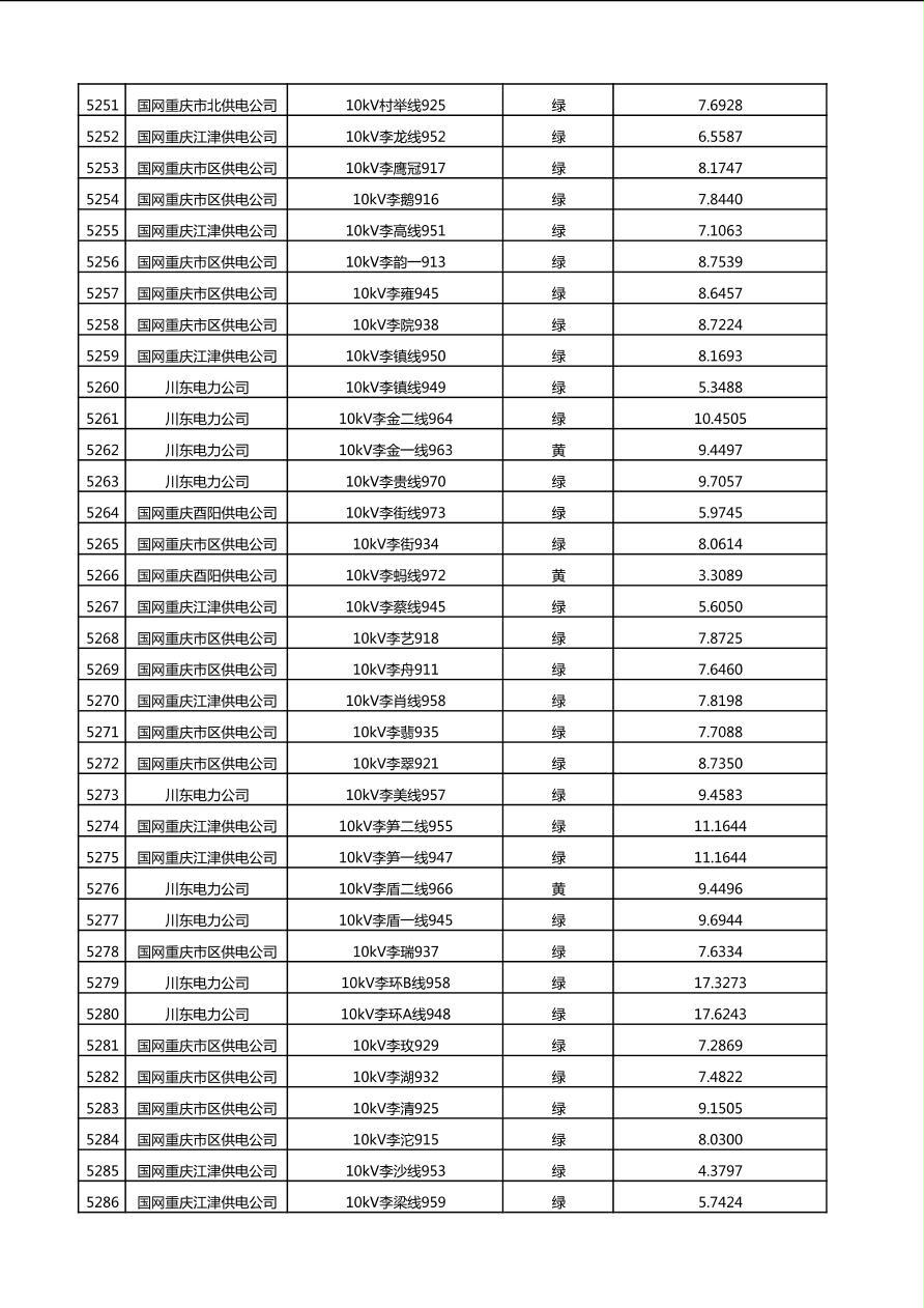 国网重庆市电力公司2025年第4季度分布式光伏可开放容量公示(10千伏配线)