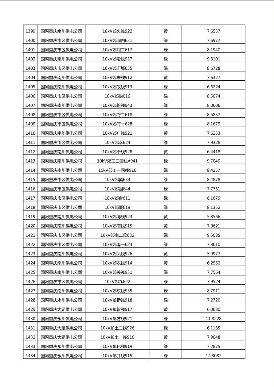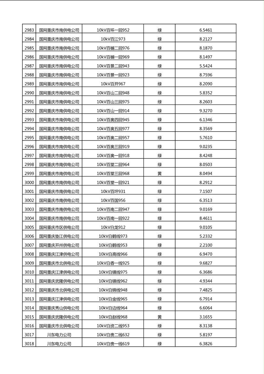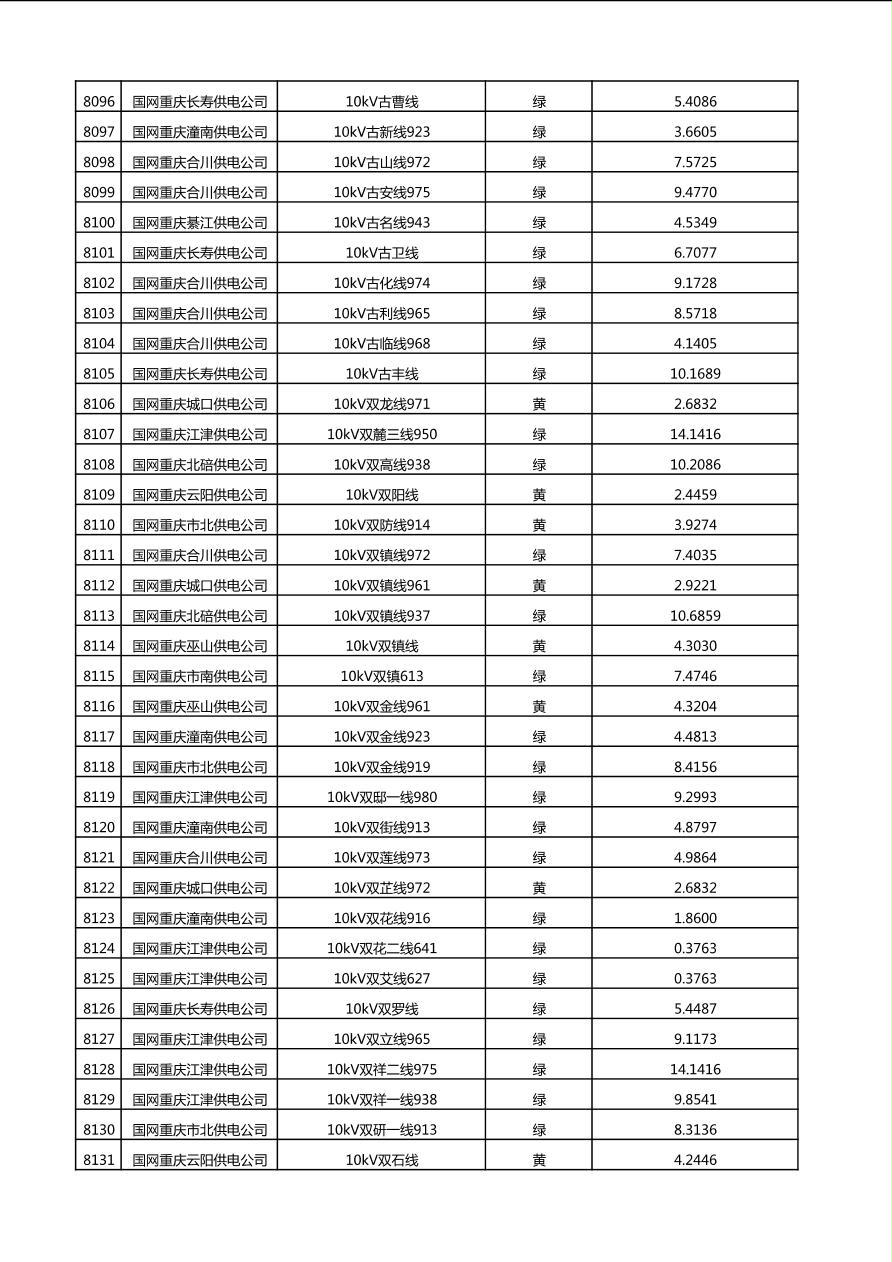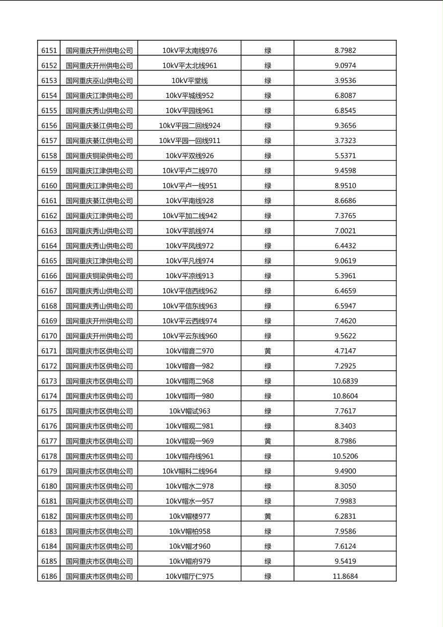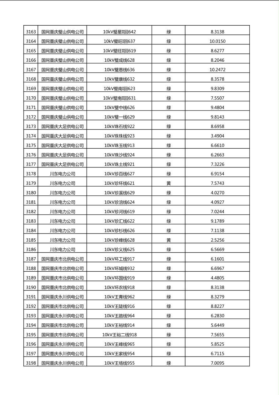 国网重庆市电力公司2025年第4季度分布式光伏可开放容量公示(10千伏配线)