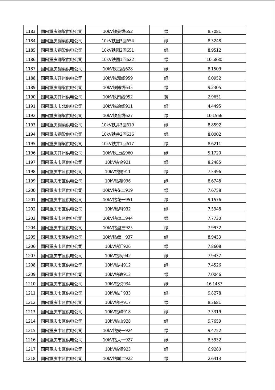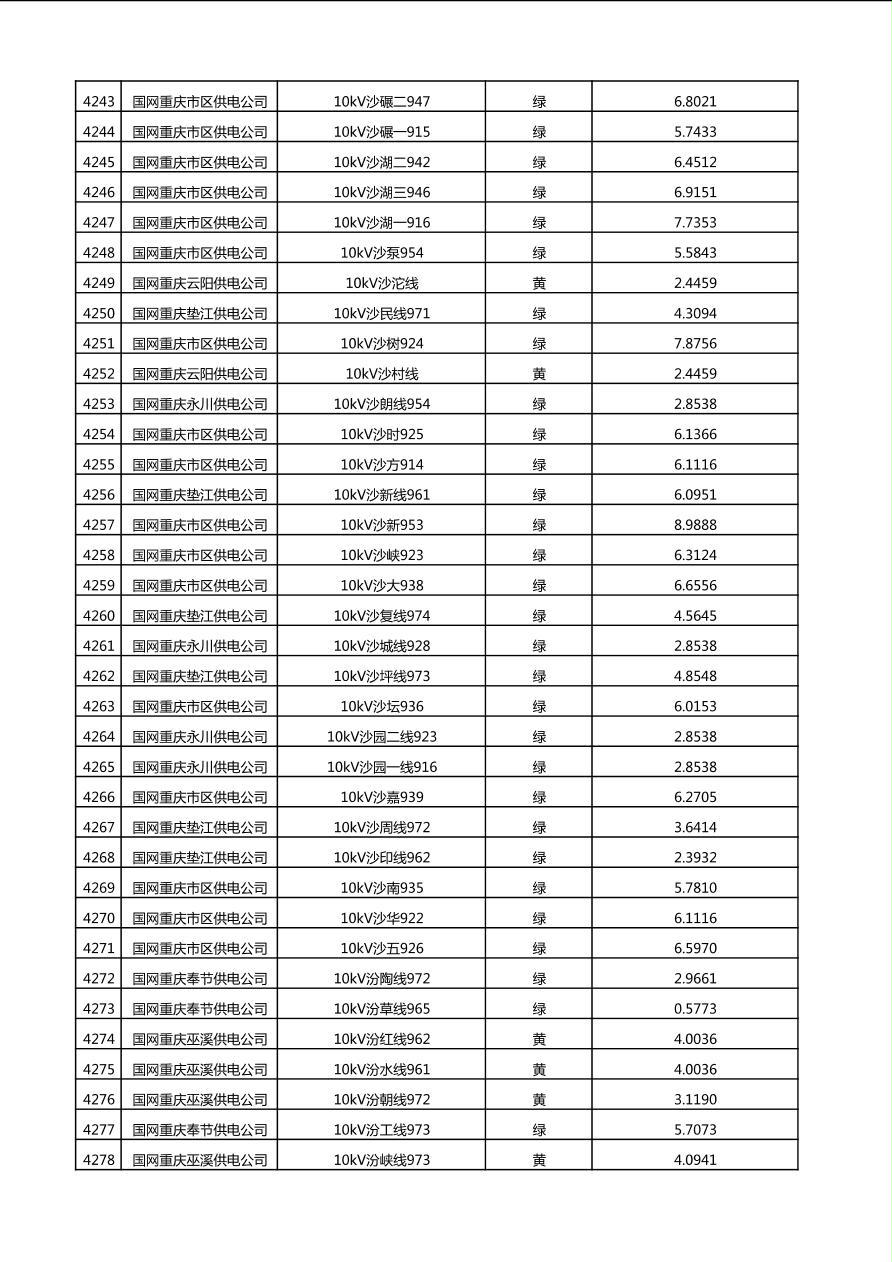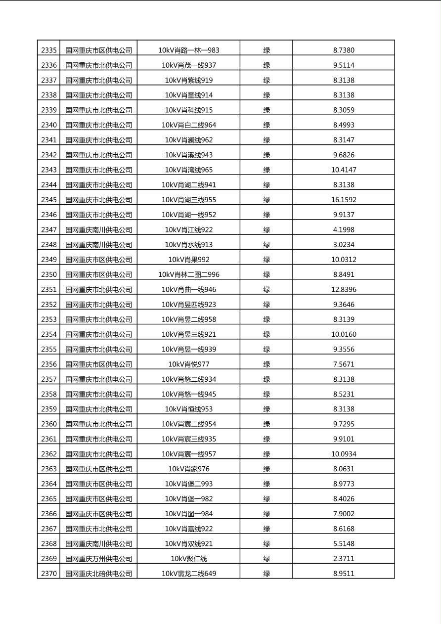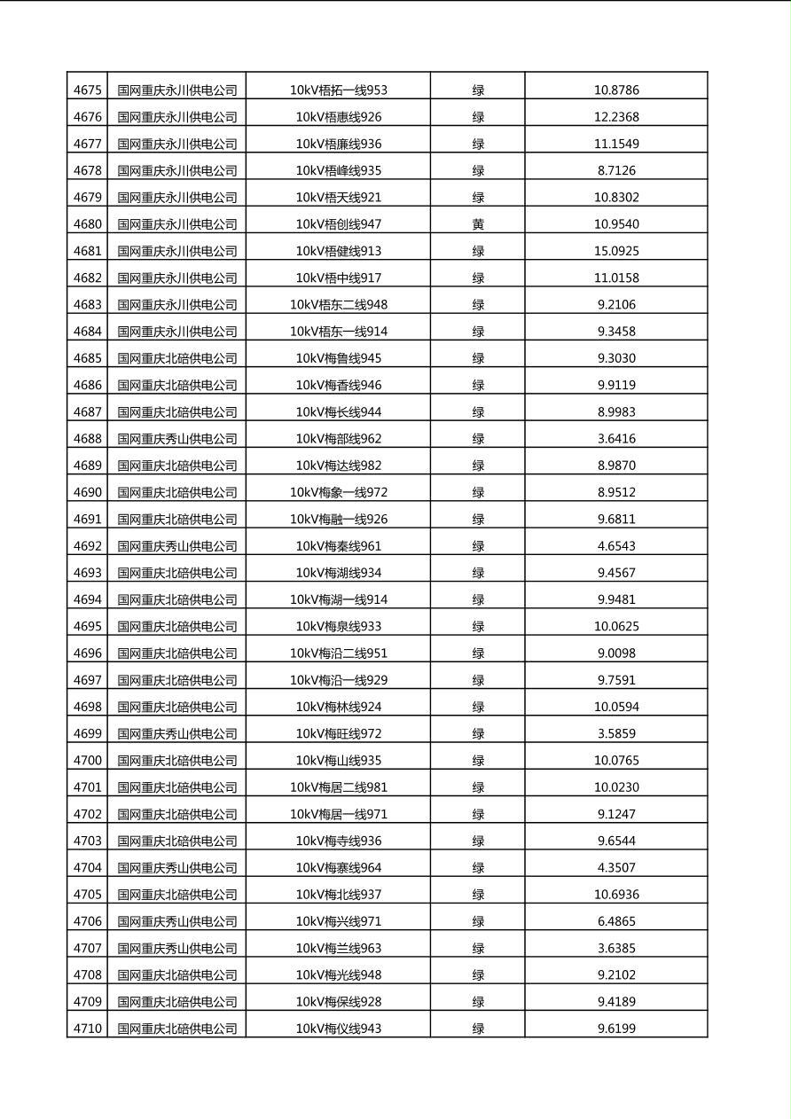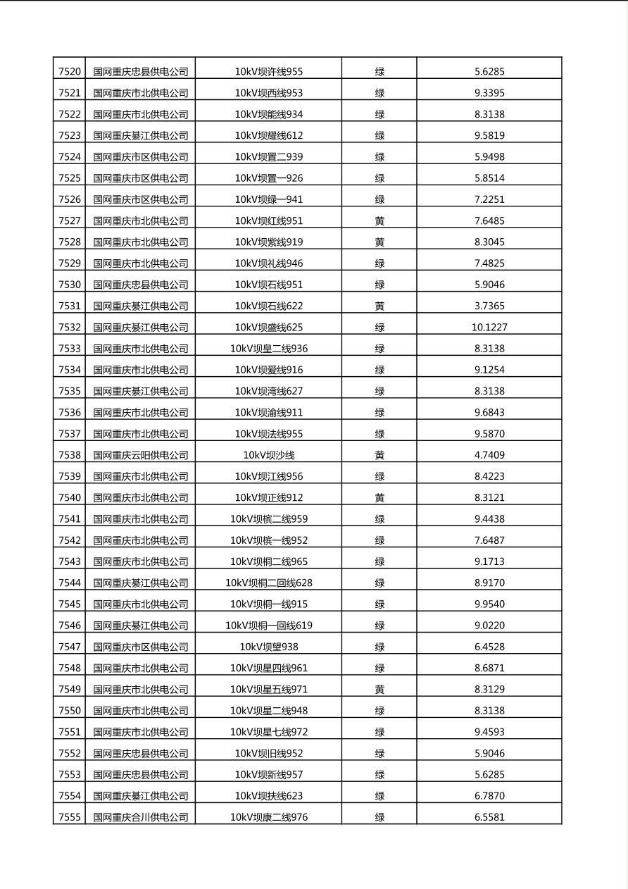 国网重庆市电力公司2025年第4季度分布式光伏可开放容量公示(10千伏配线)