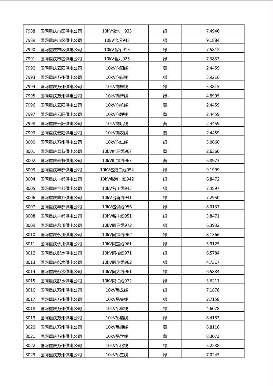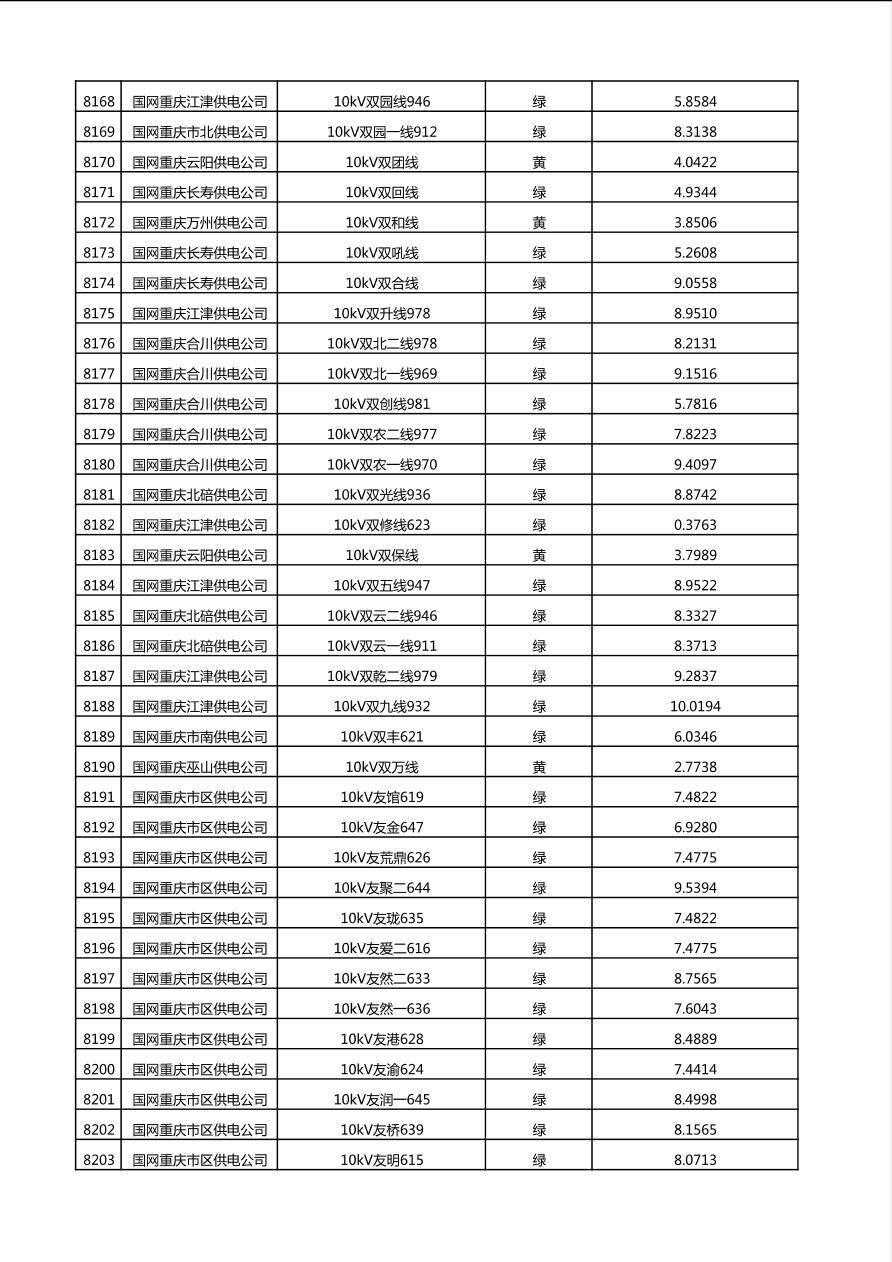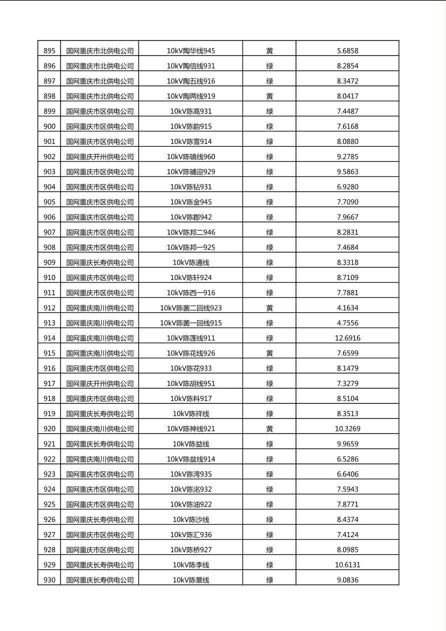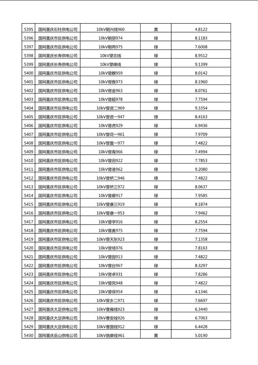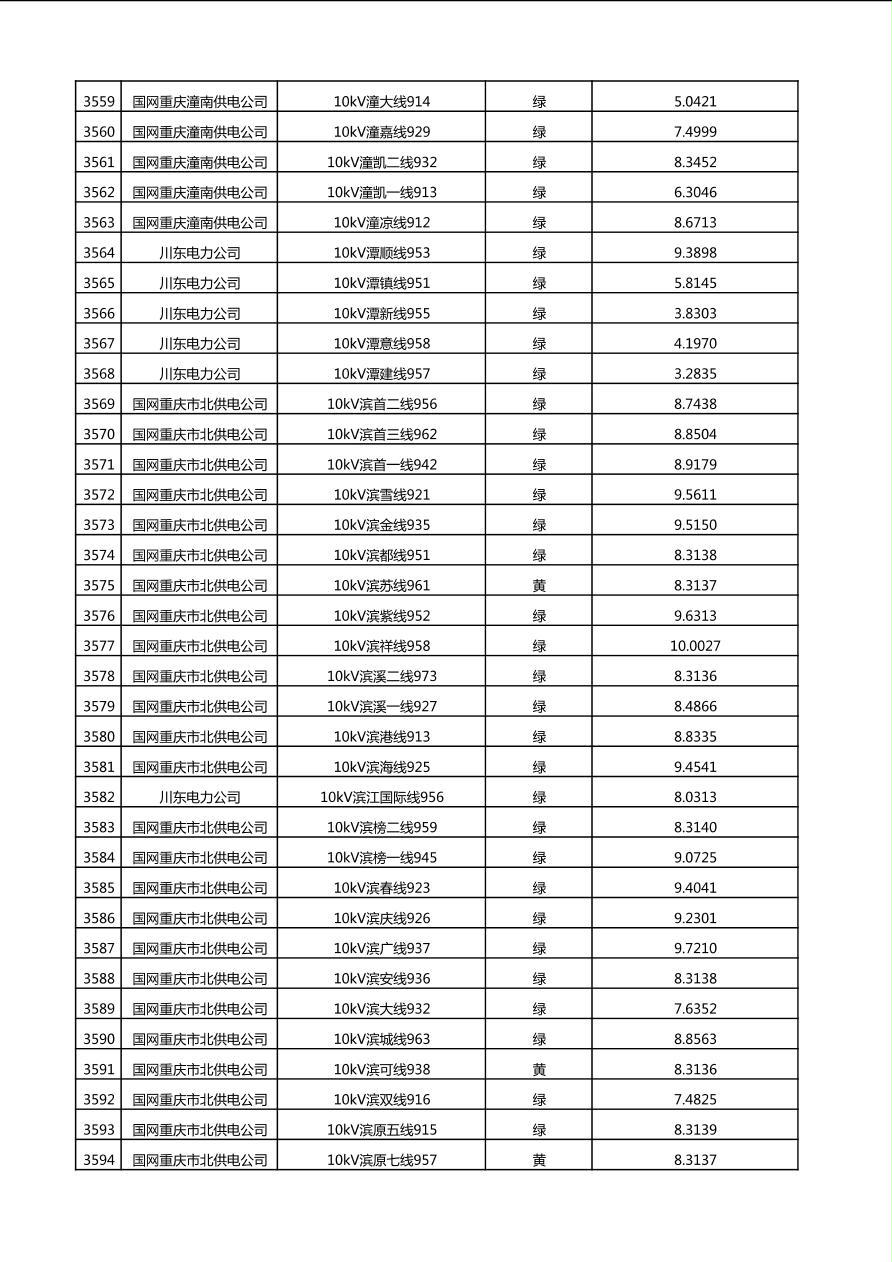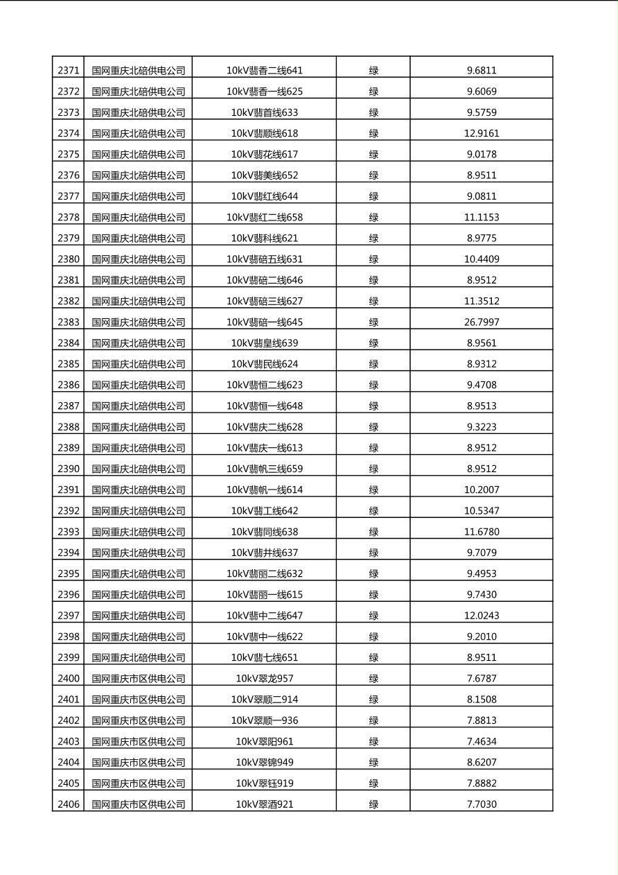 国网重庆市电力公司2025年第4季度分布式光伏可开放容量公示(10千伏配线)