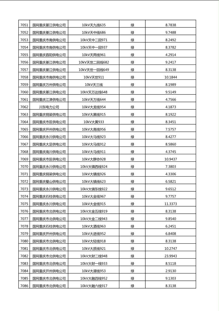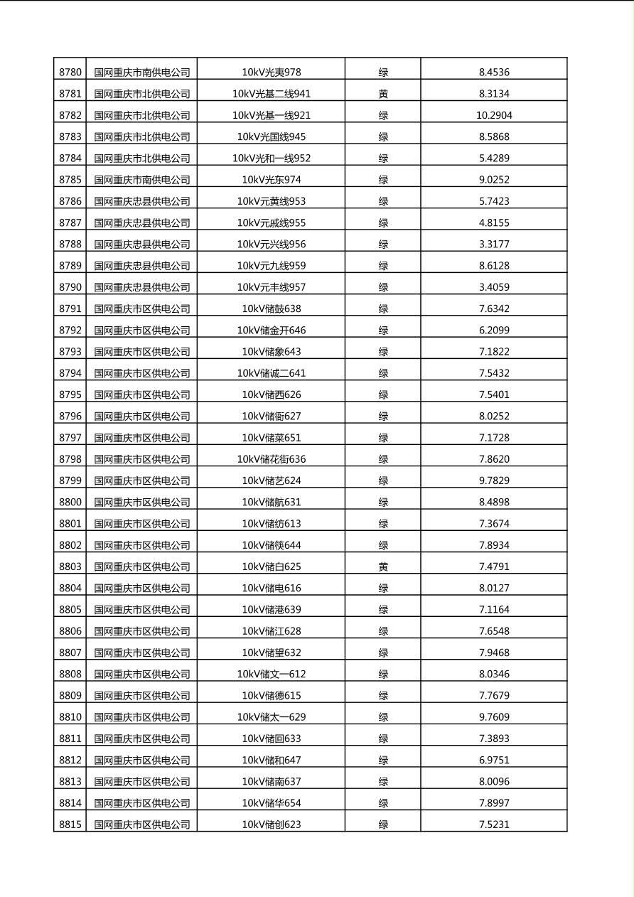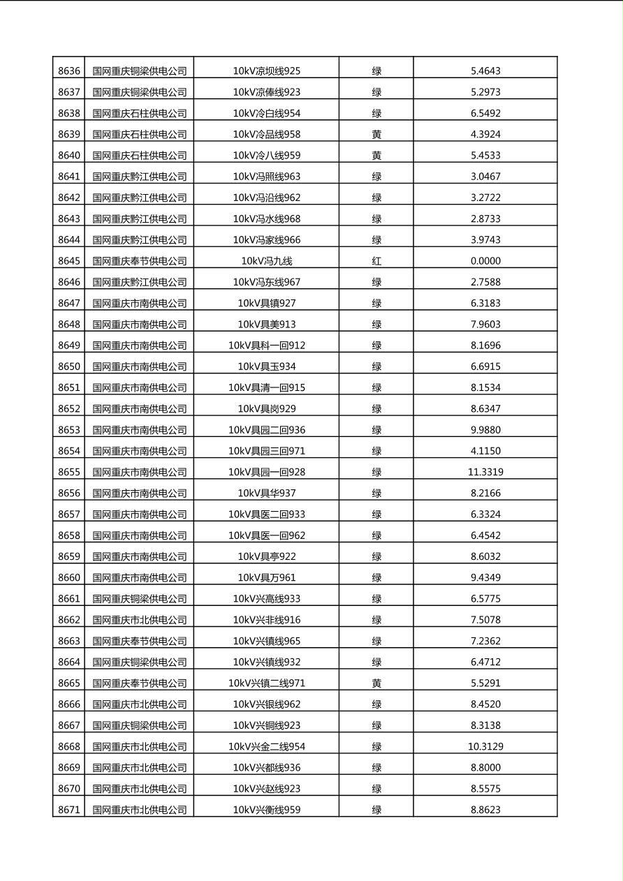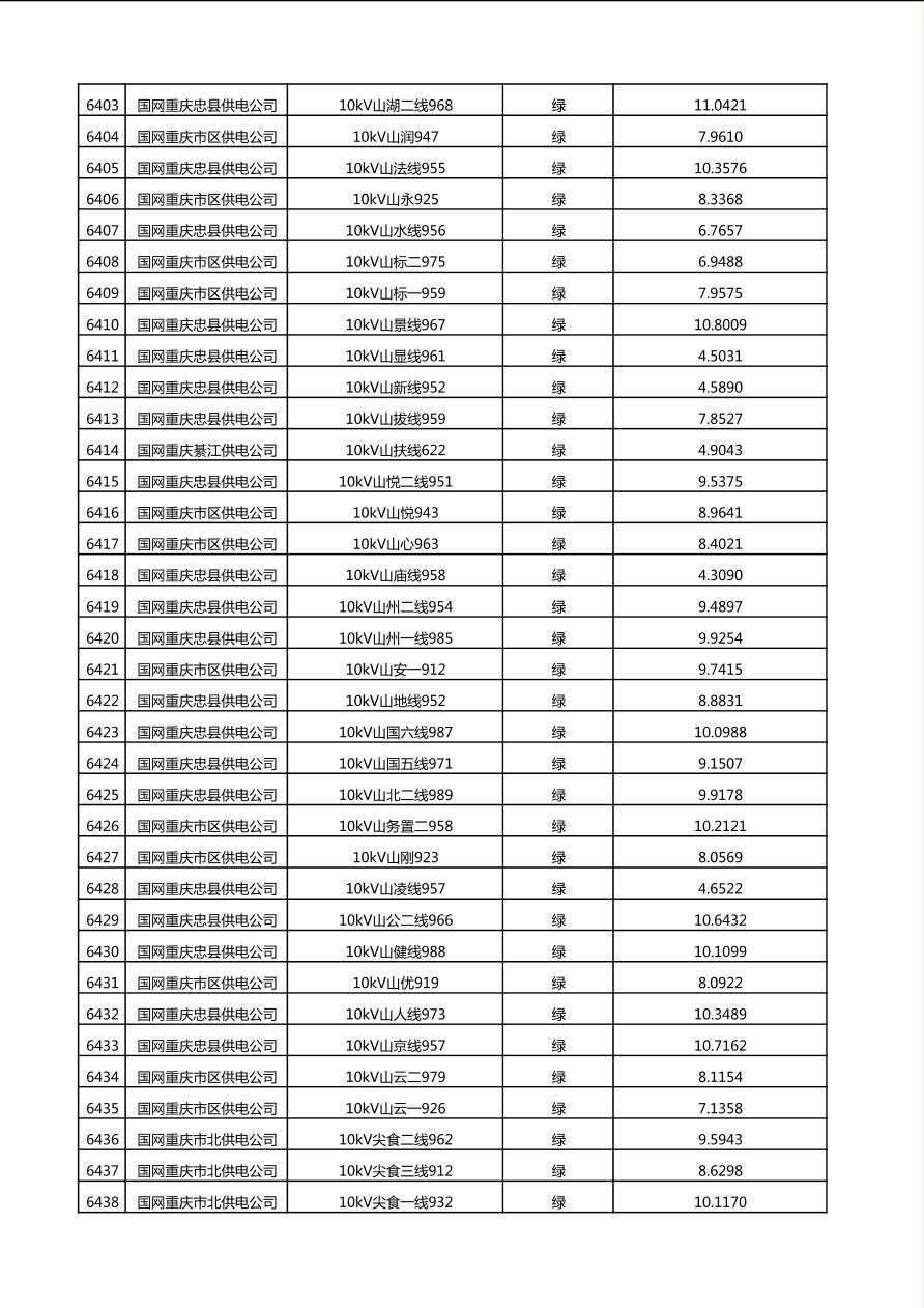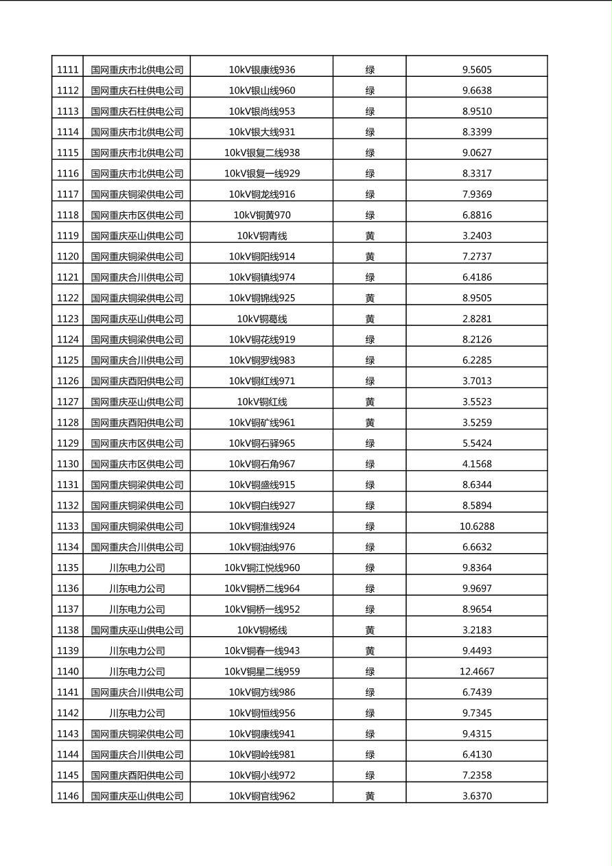 国网重庆市电力公司2025年第4季度分布式光伏可开放容量公示(10千伏配线)