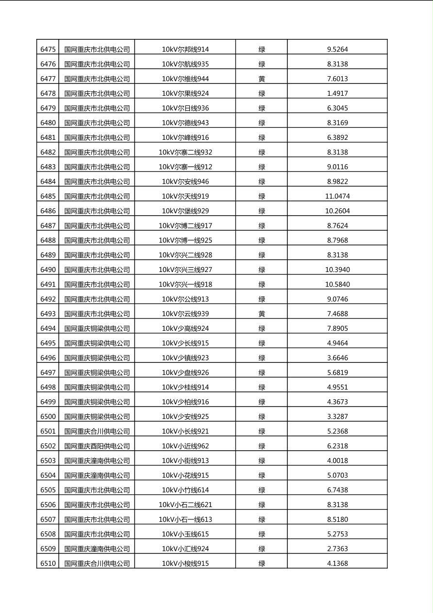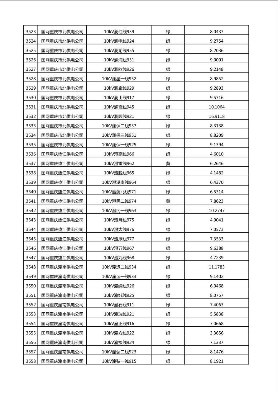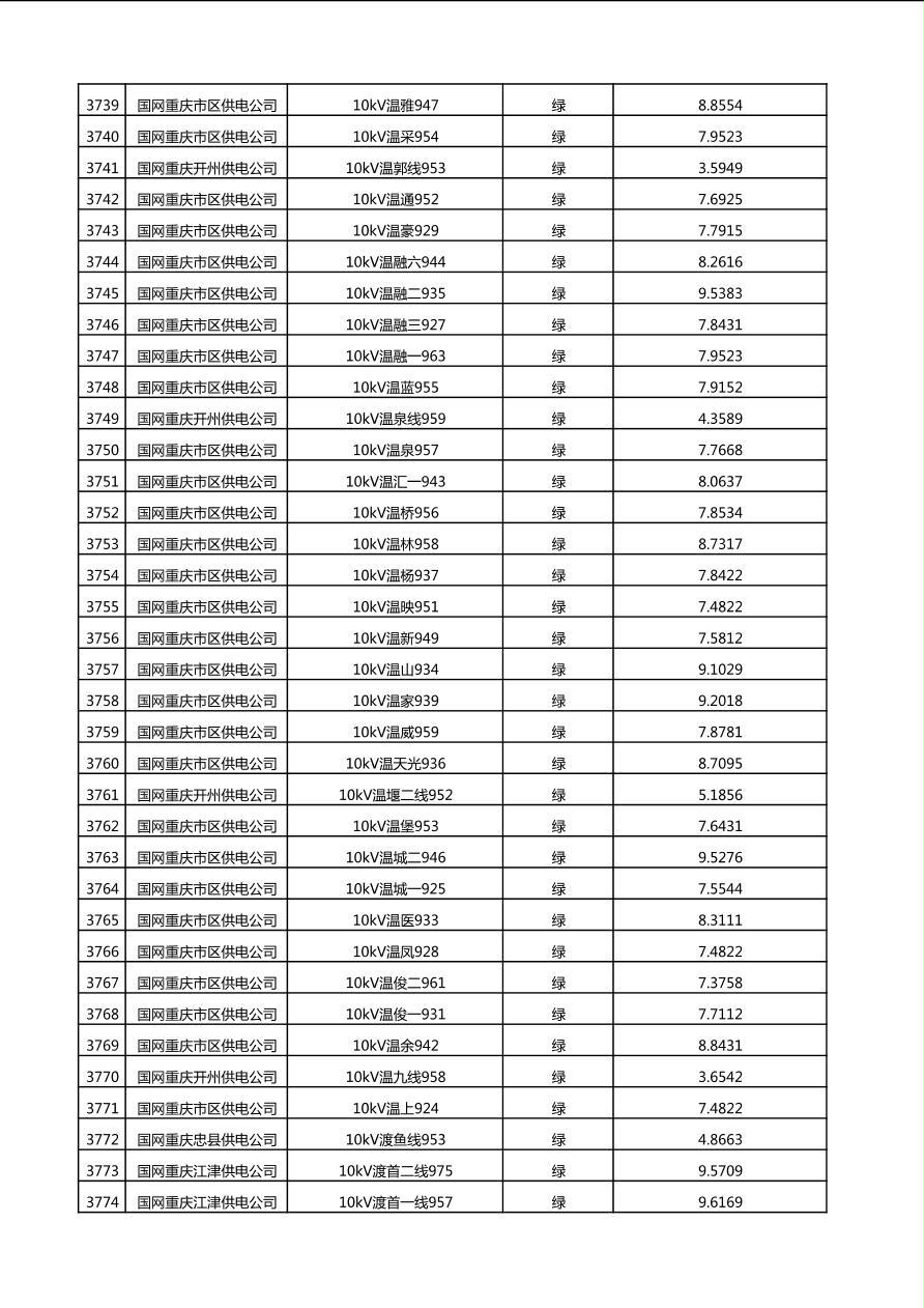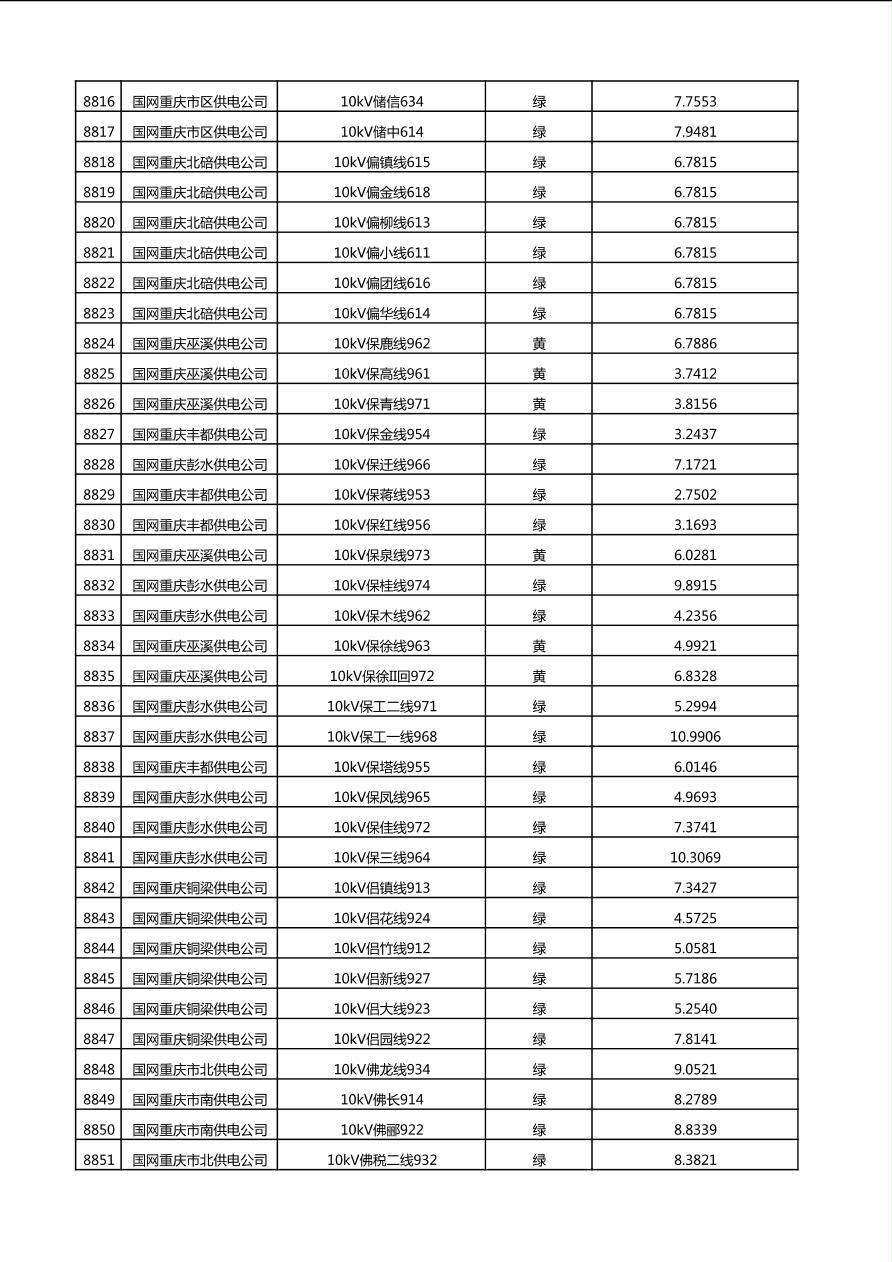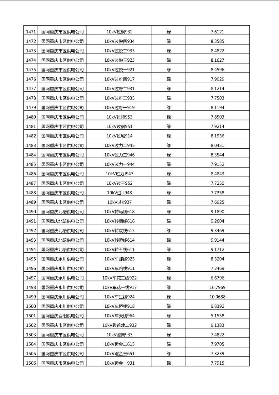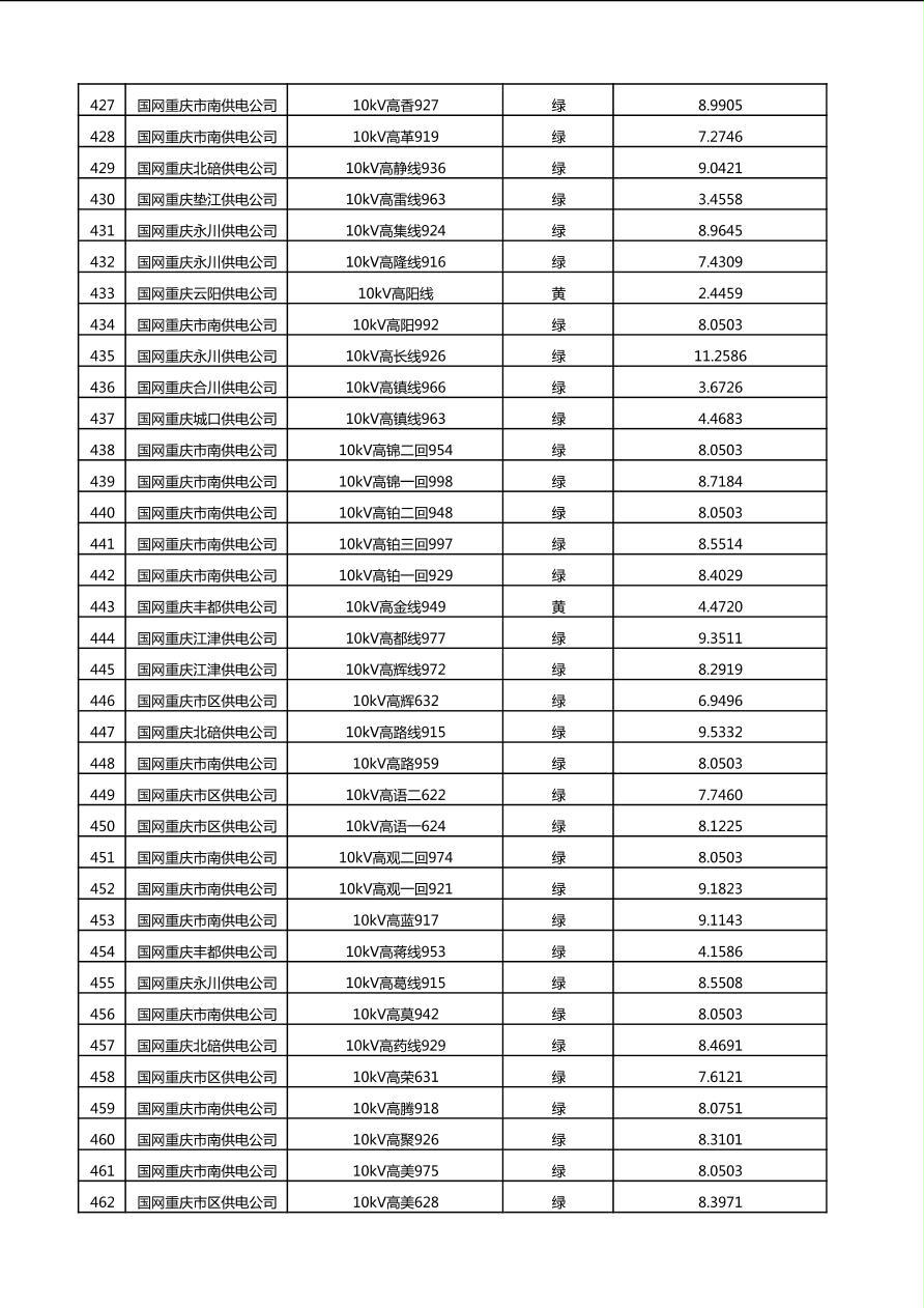国网重庆市电力公司2025年第4季度分布式光伏可开放容量公示(10千伏配线)