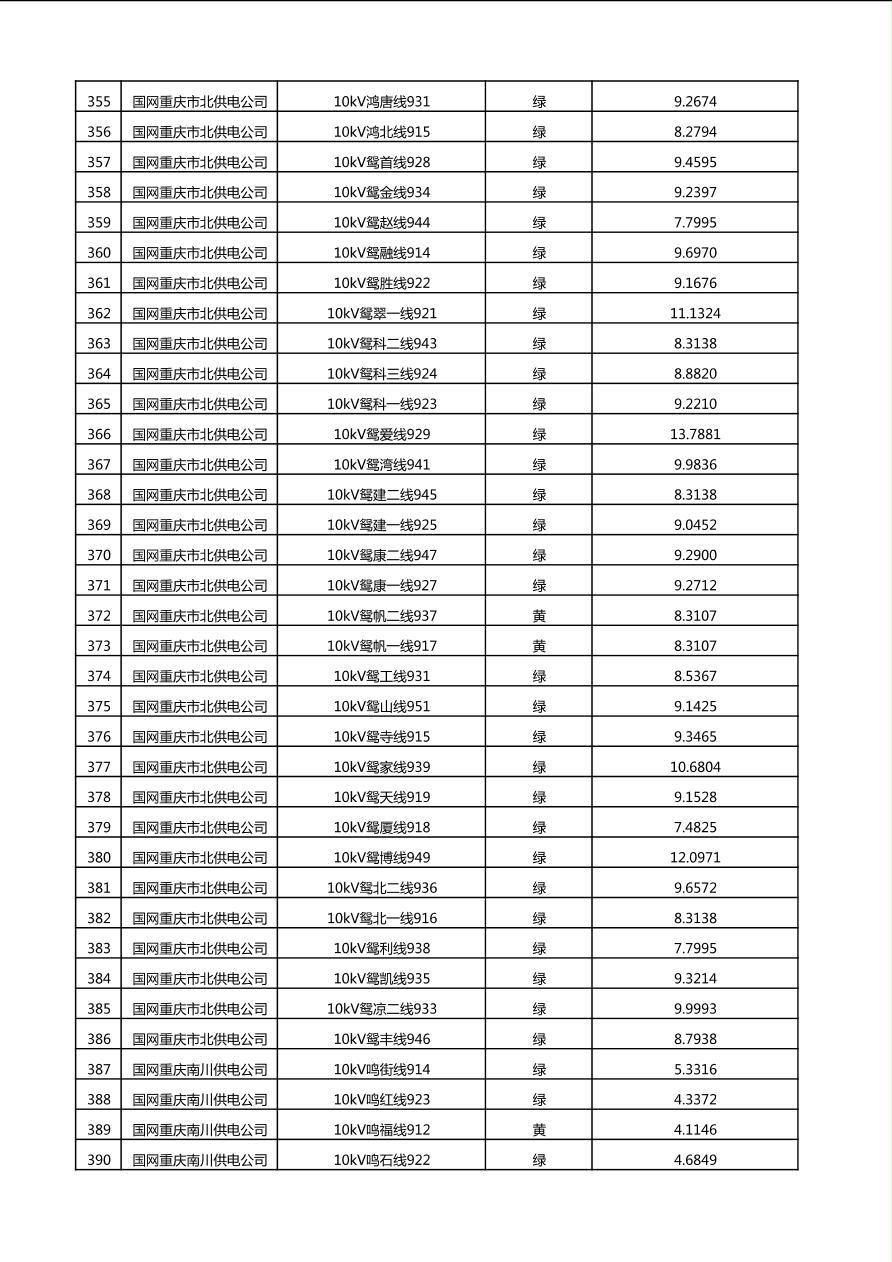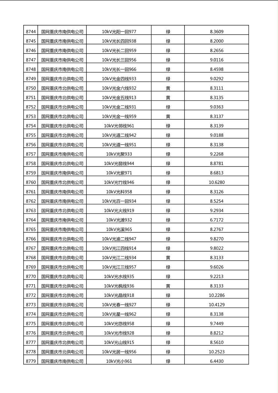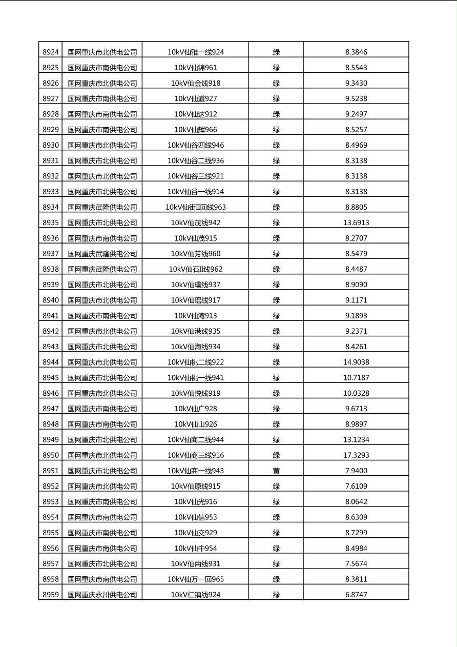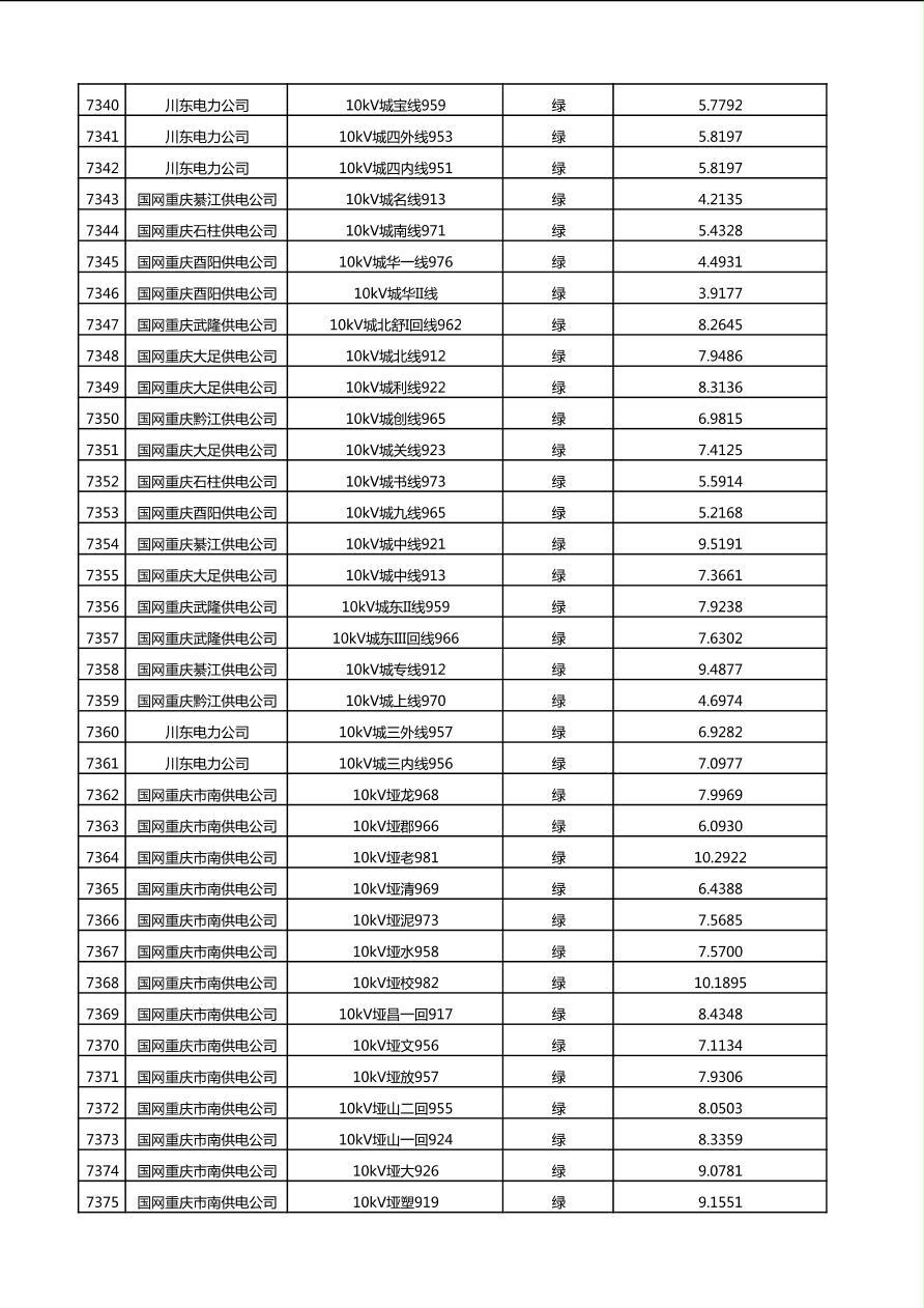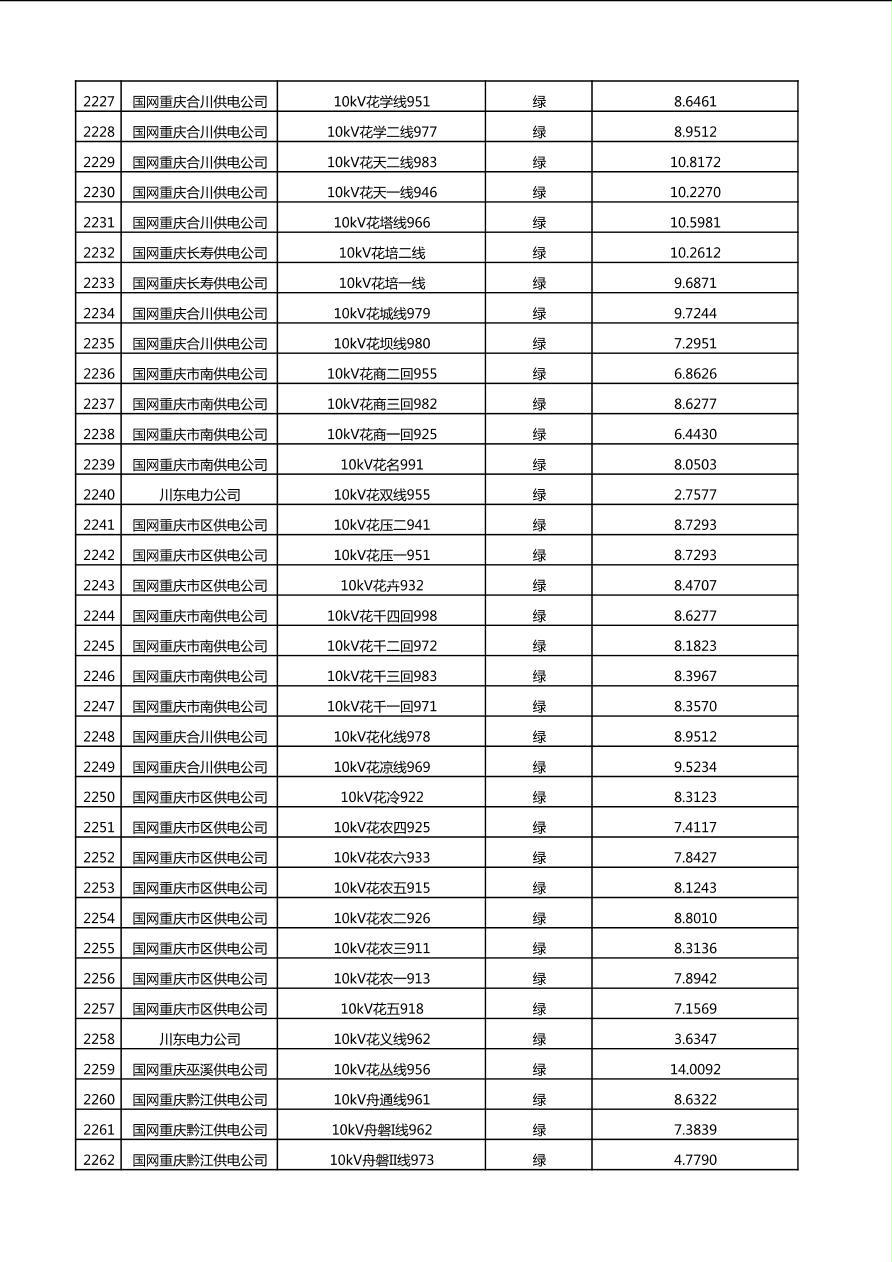 国网重庆市电力公司2025年第4季度分布式光伏可开放容量公示(10千伏配线)