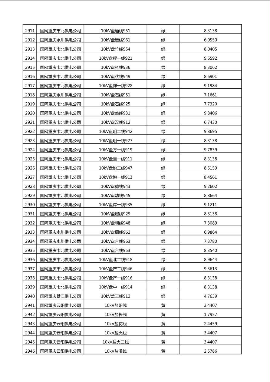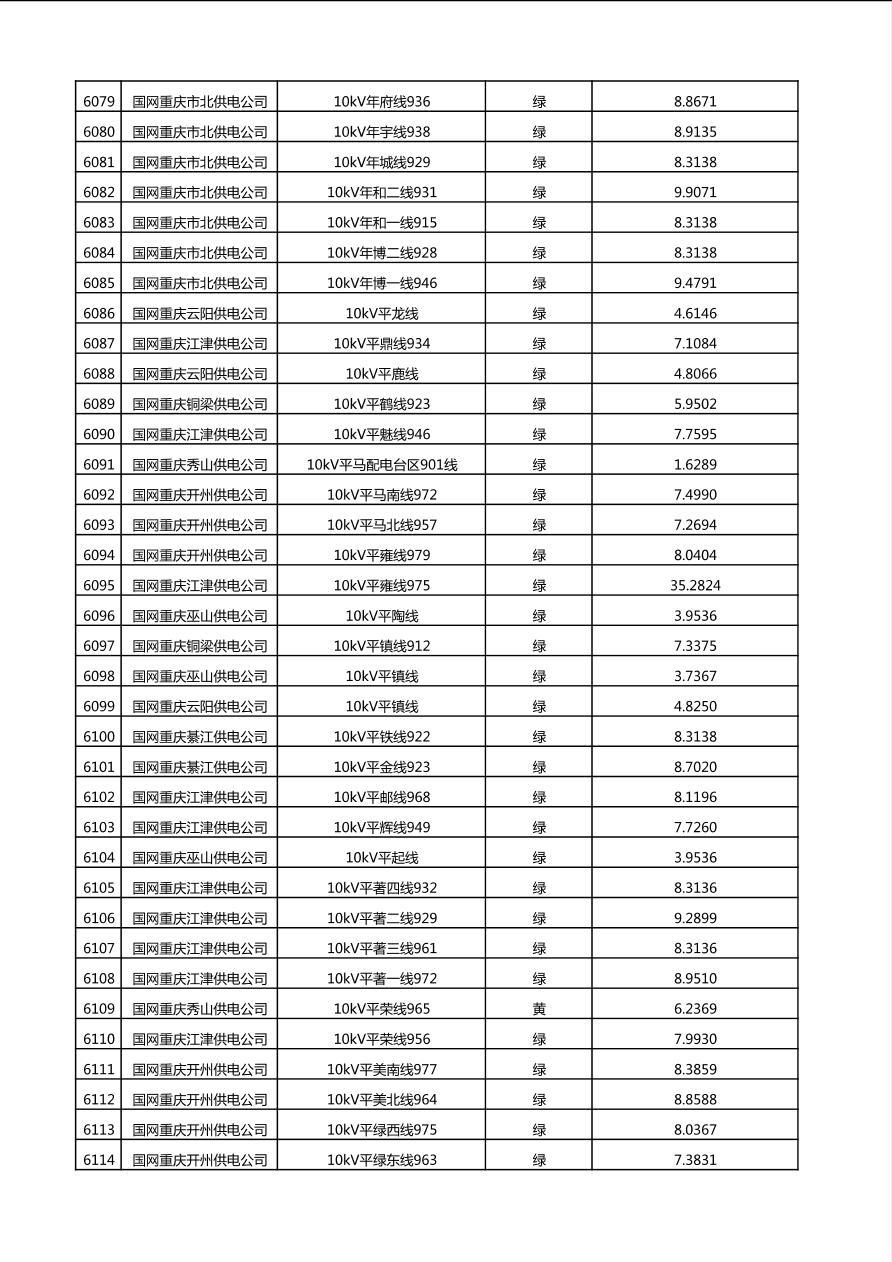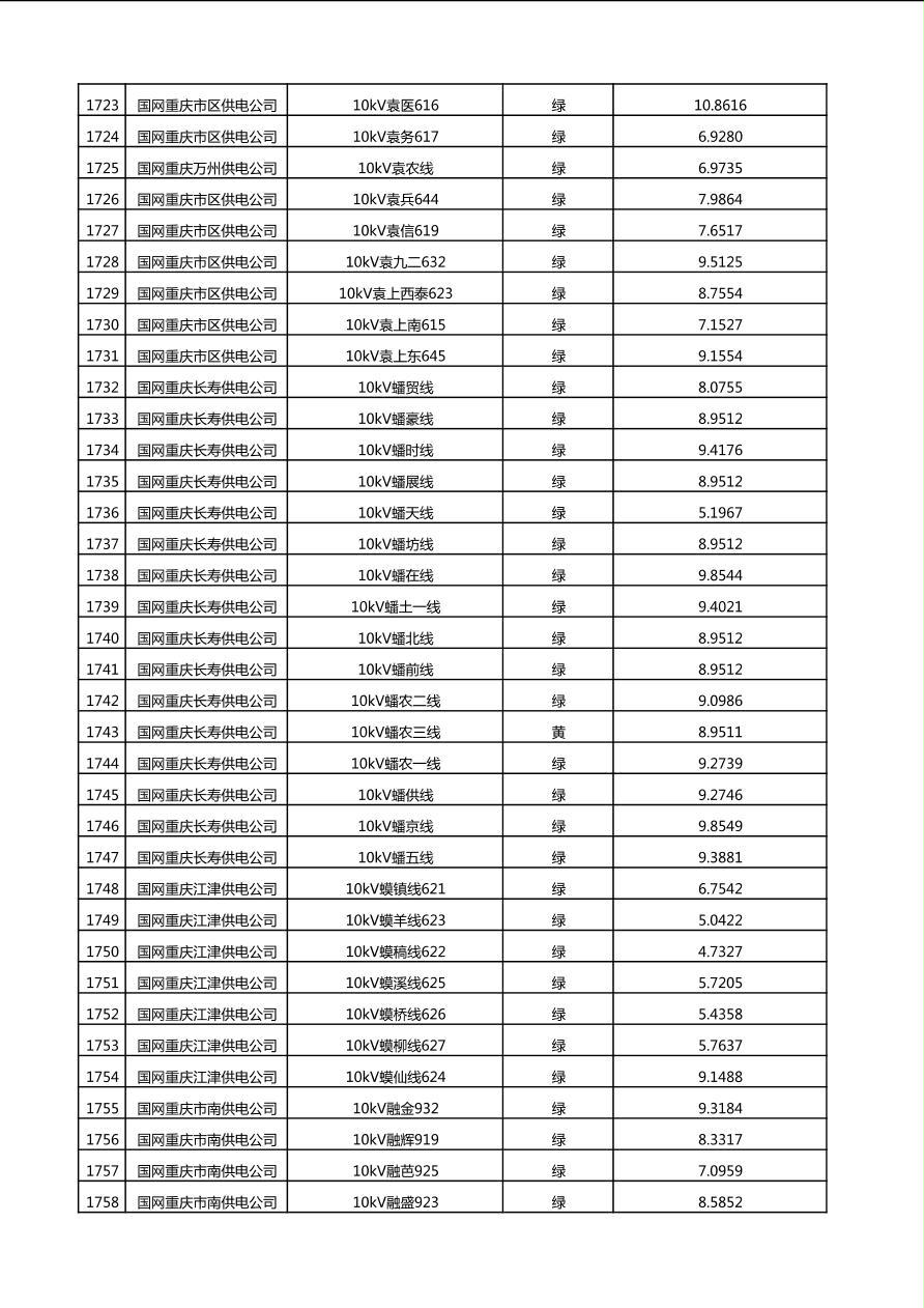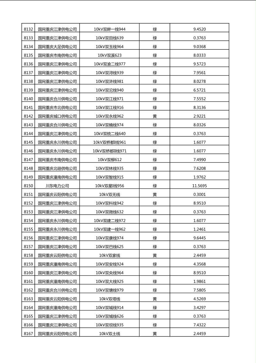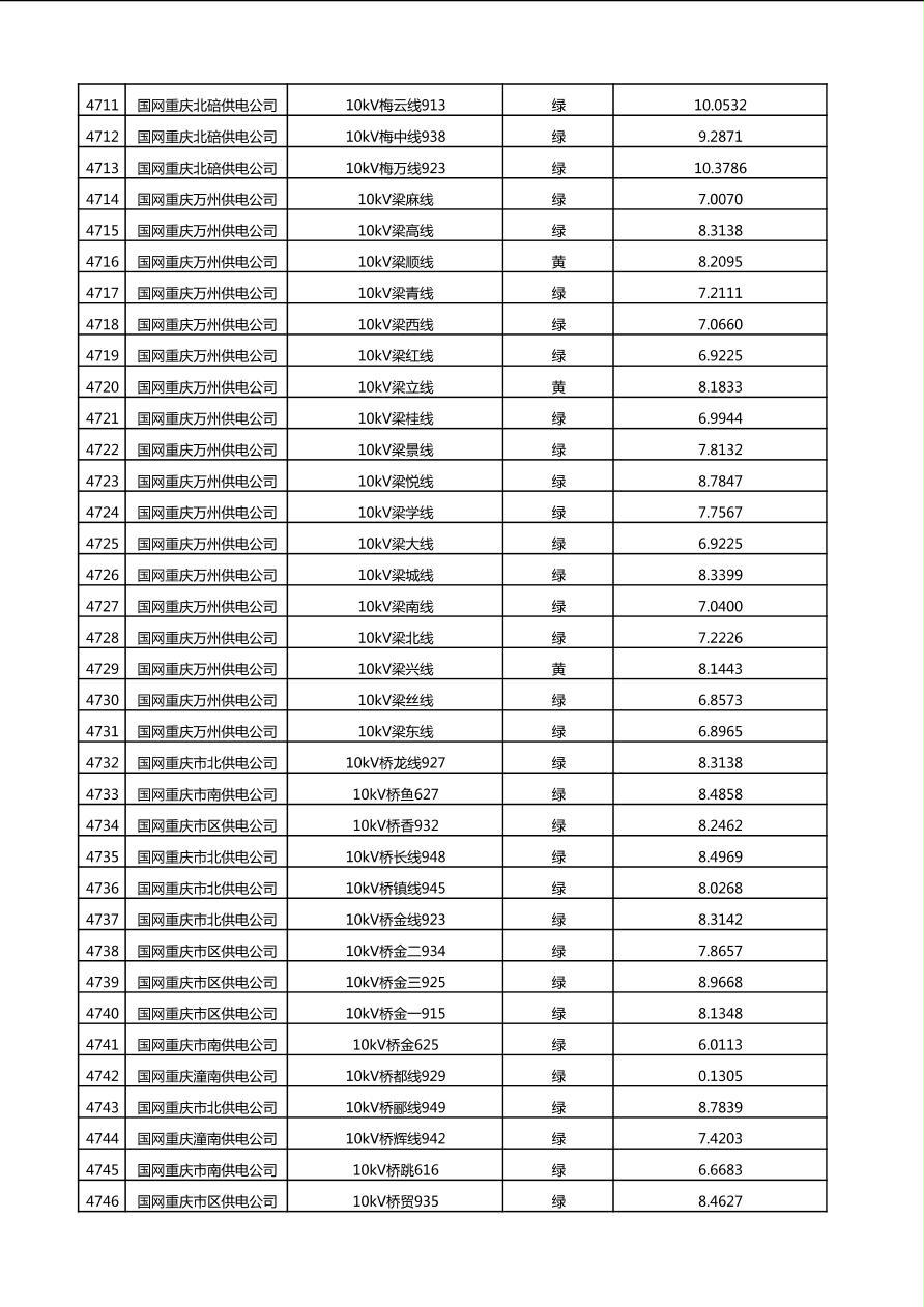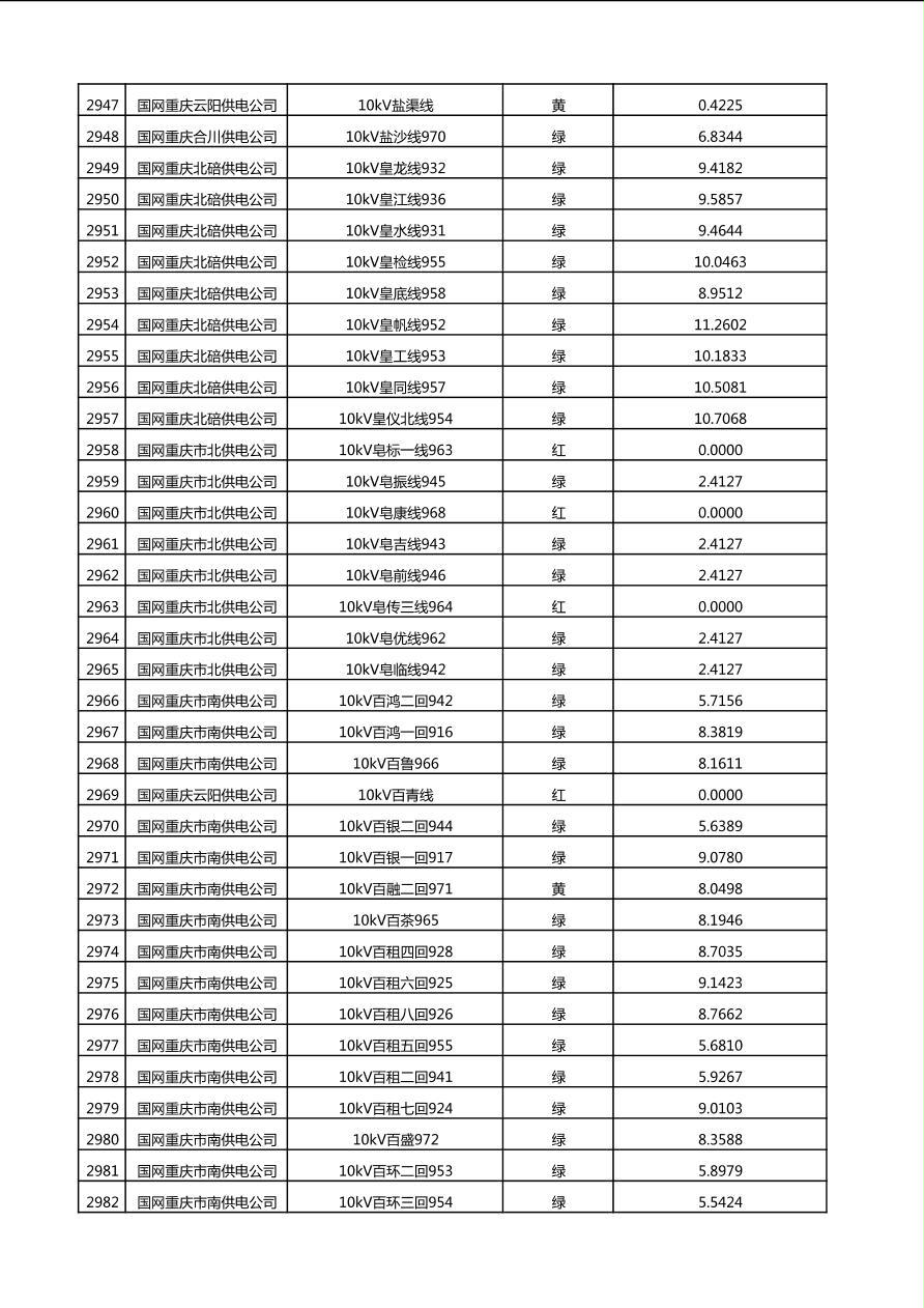 国网重庆市电力公司2025年第4季度分布式光伏可开放容量公示(10千伏配线)