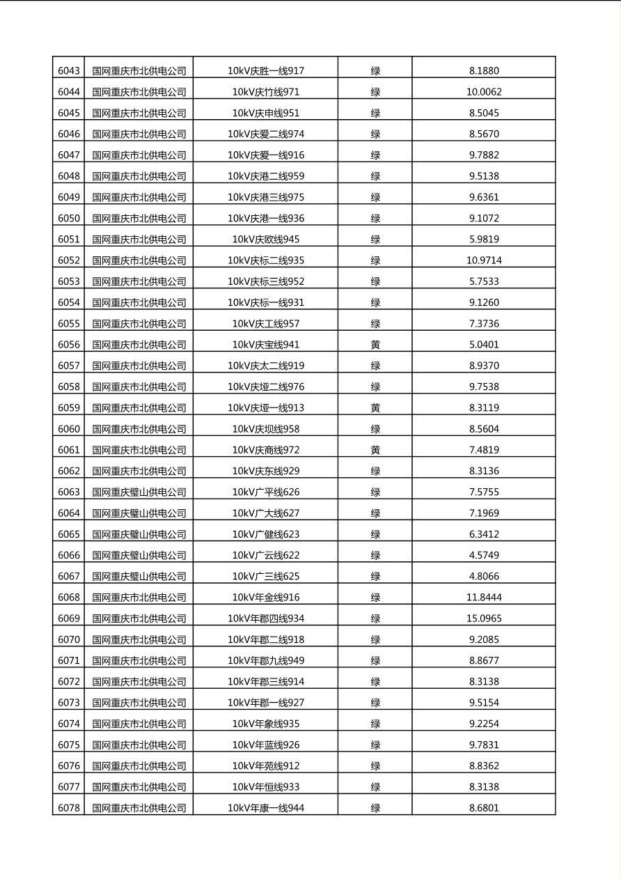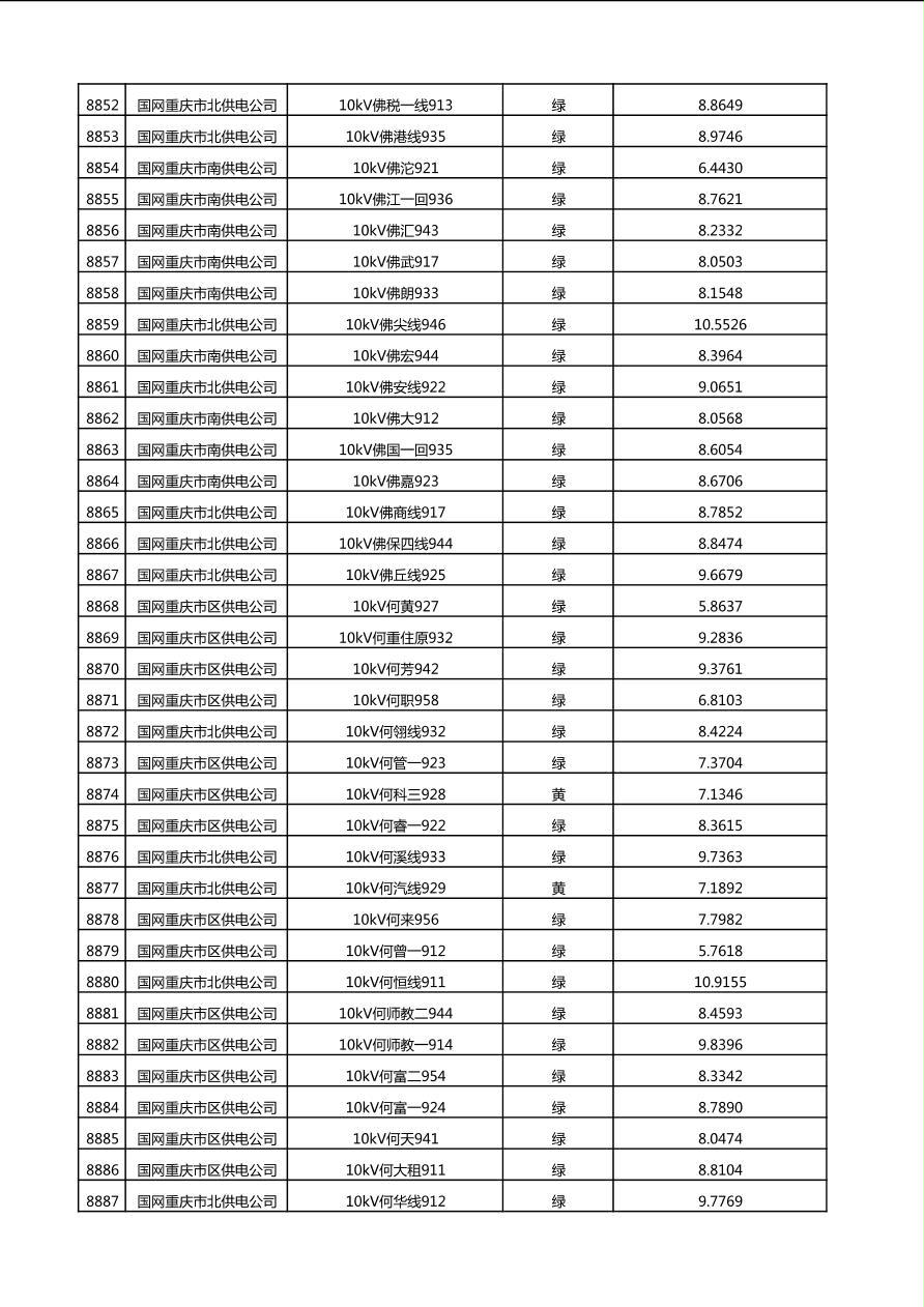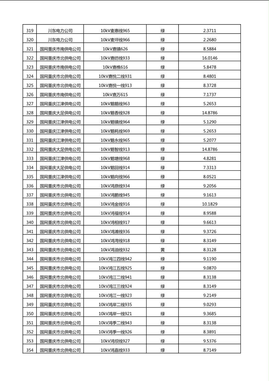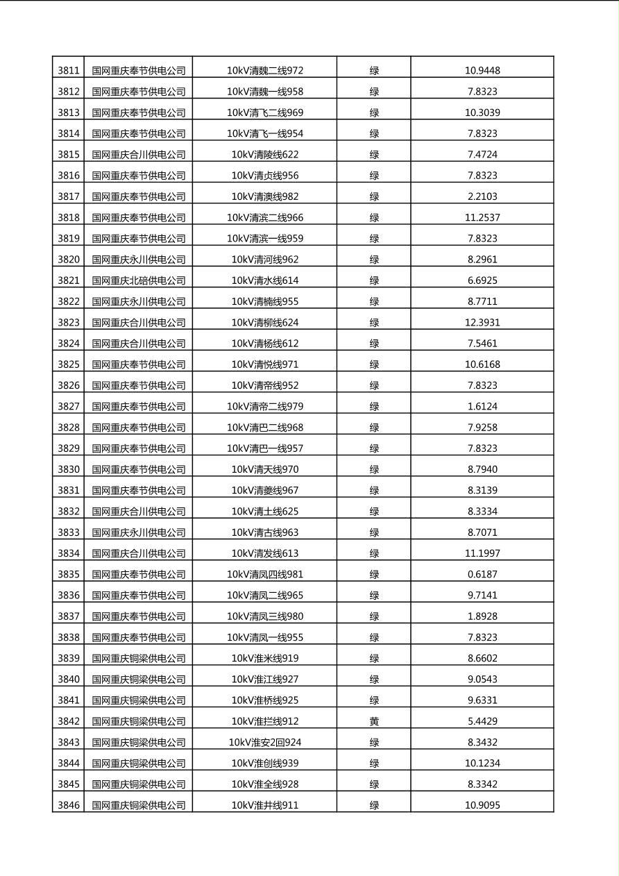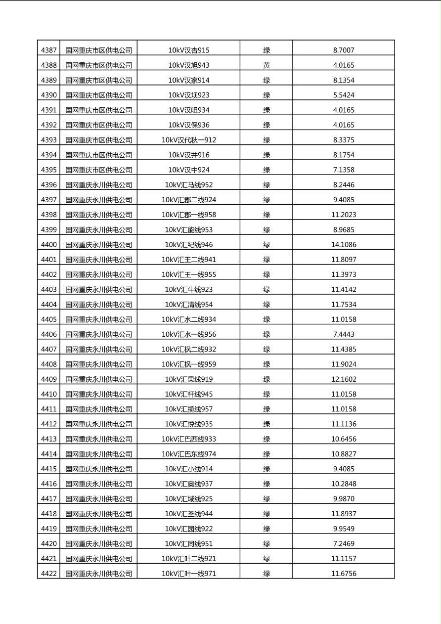 国网重庆市电力公司2025年第4季度分布式光伏可开放容量公示(10千伏配线)