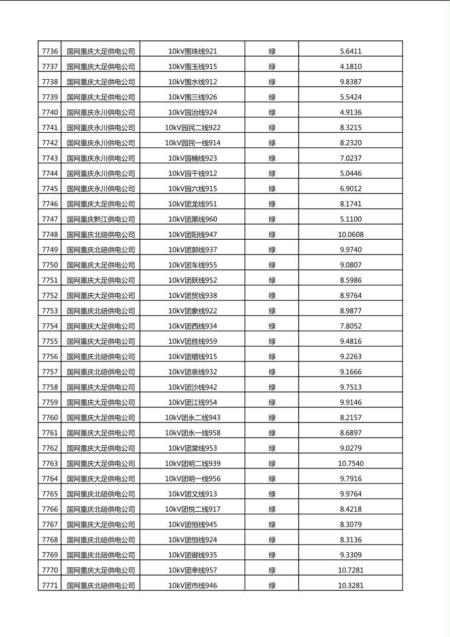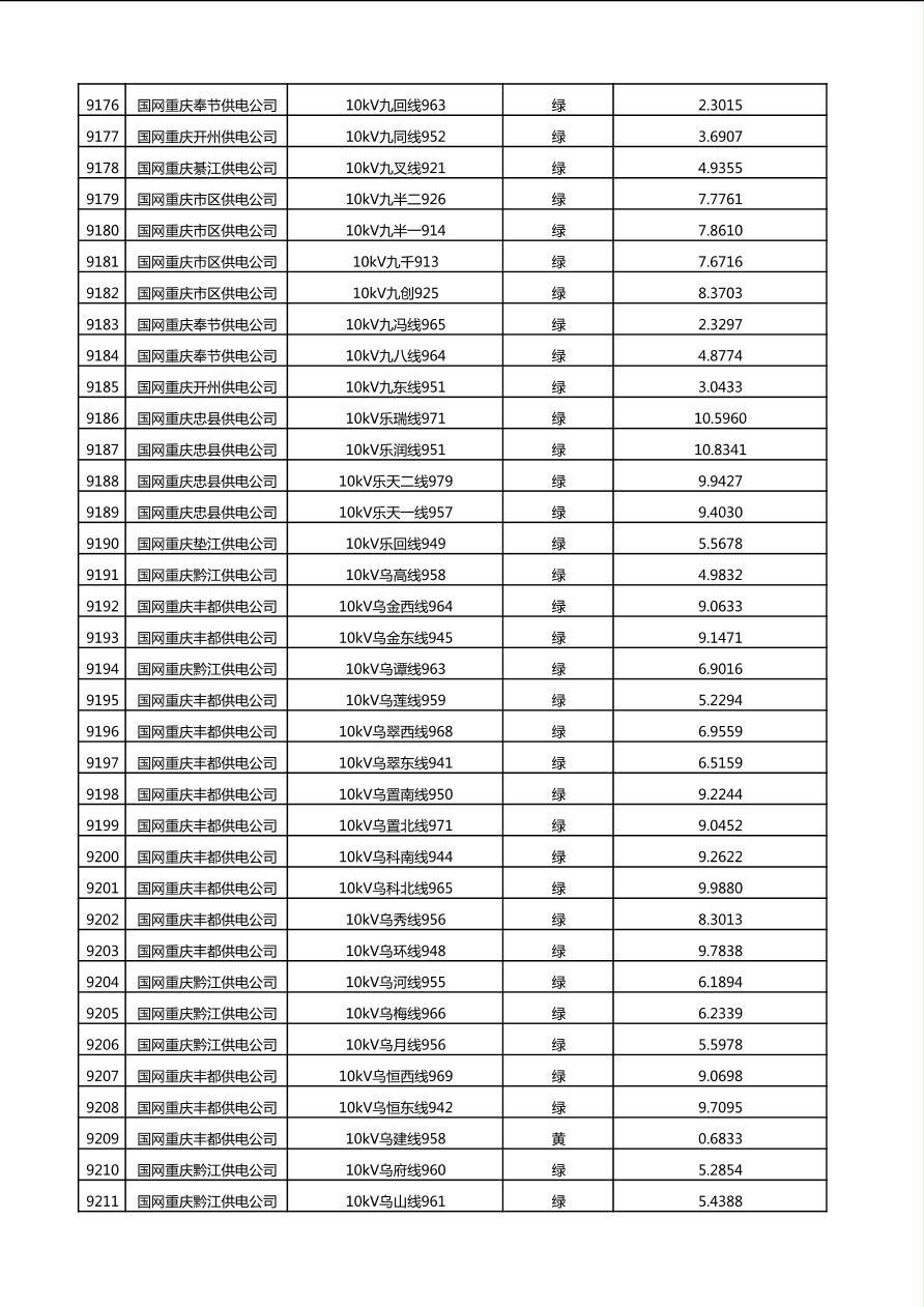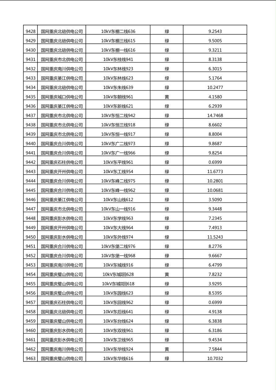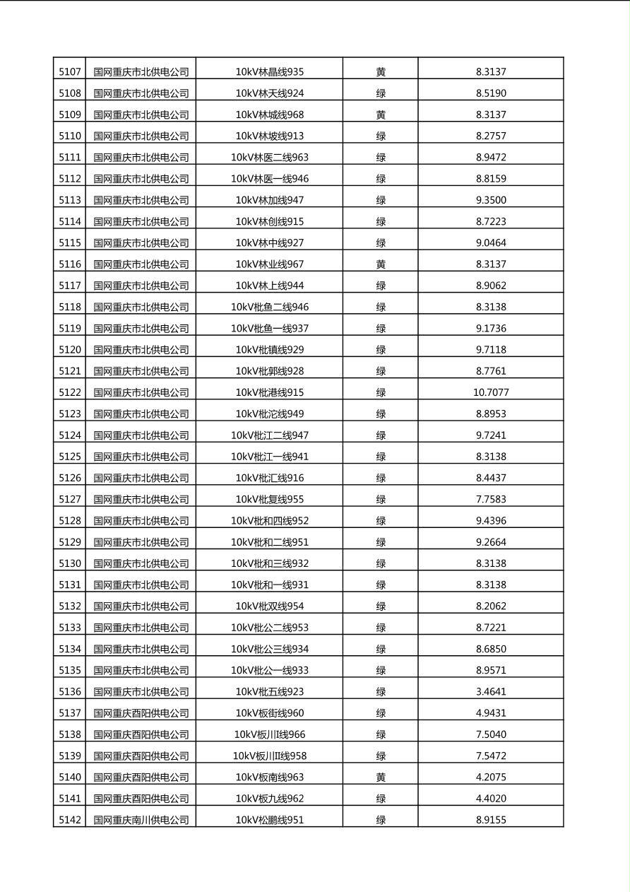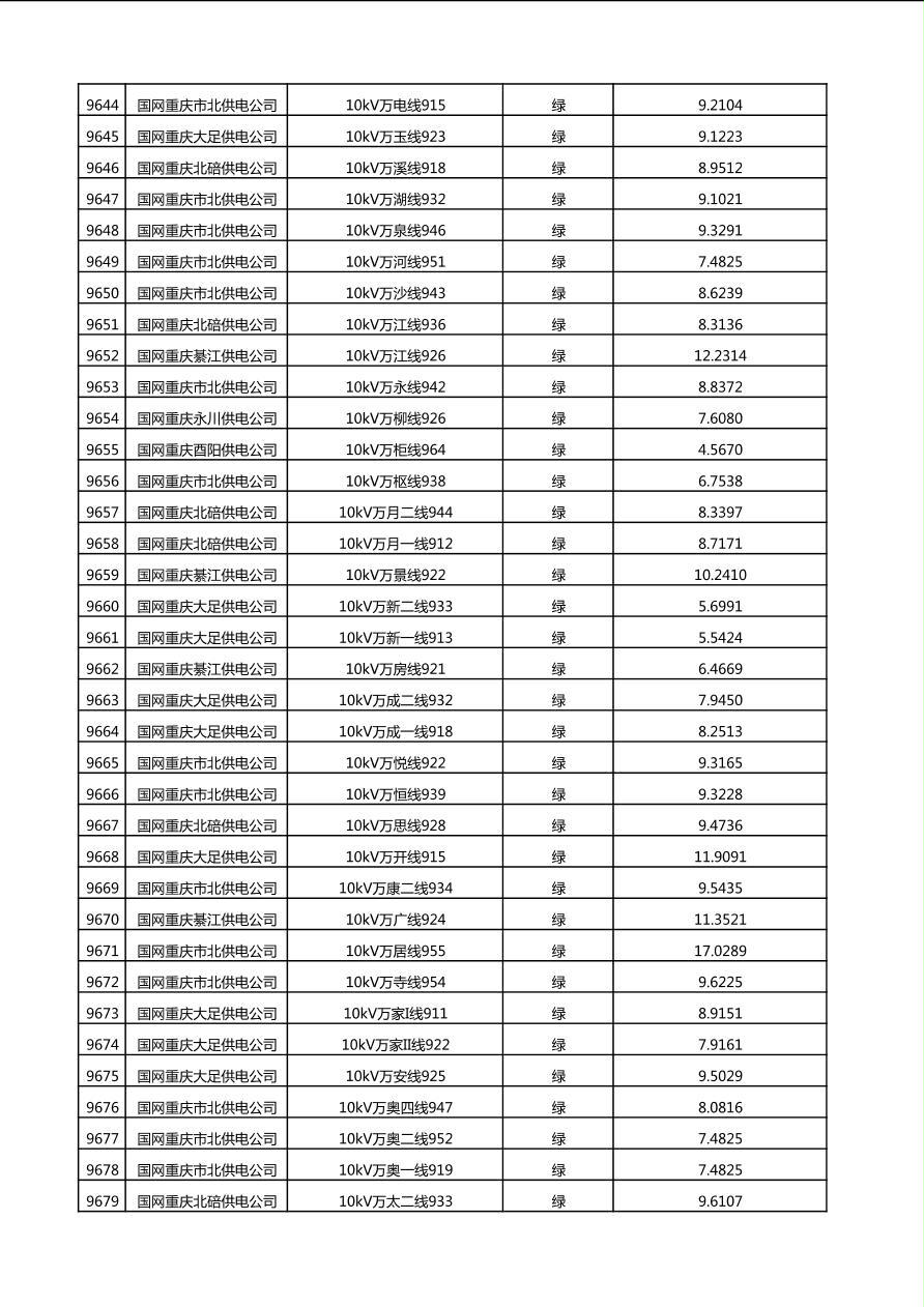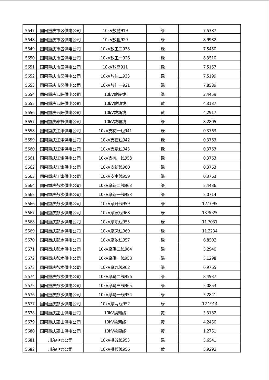 国网重庆市电力公司2025年第4季度分布式光伏可开放容量公示(10千伏配线)