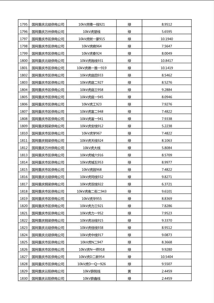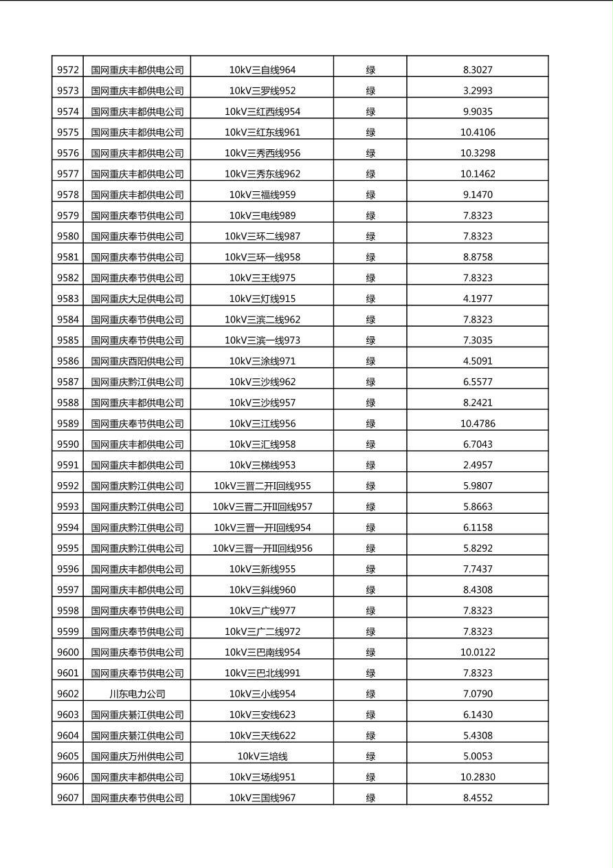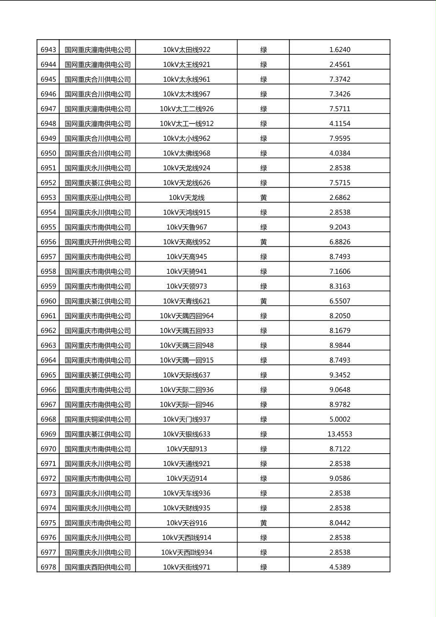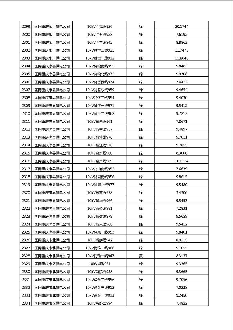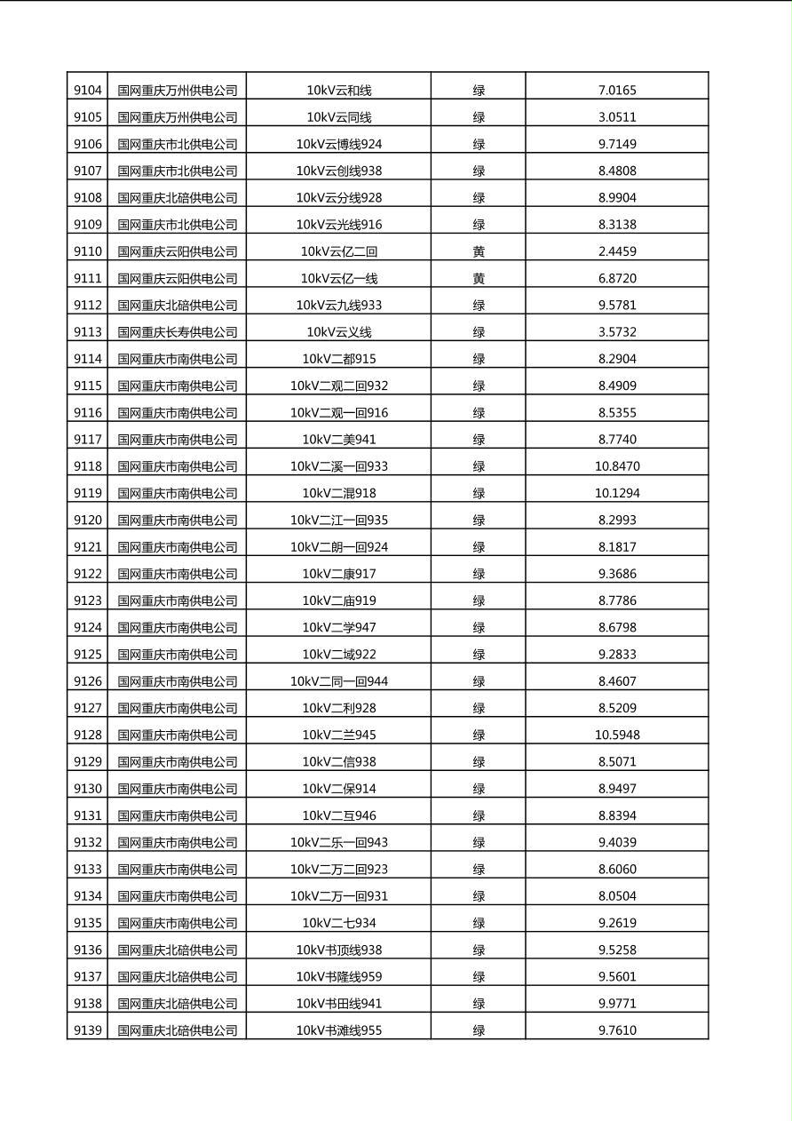 国网重庆市电力公司2025年第4季度分布式光伏可开放容量公示(10千伏配线)