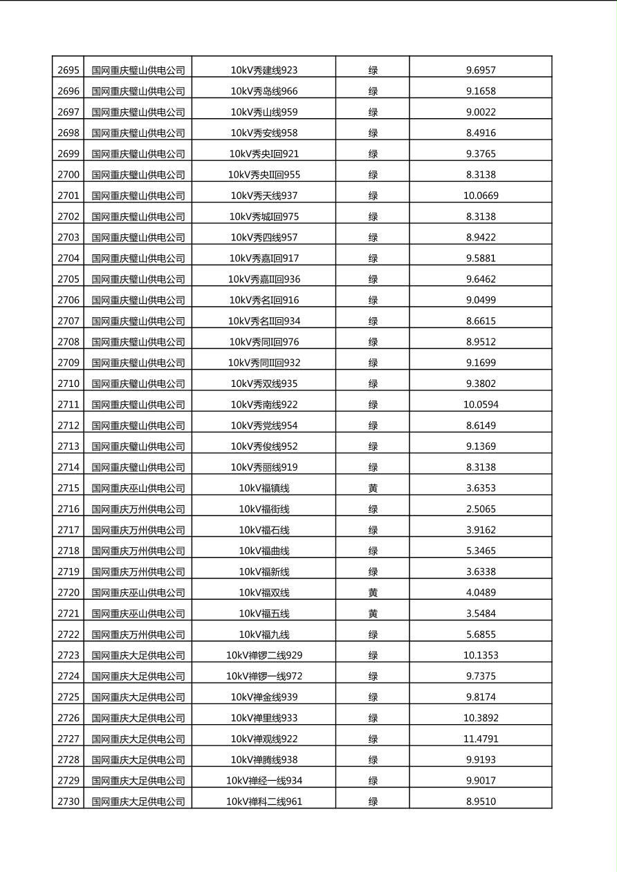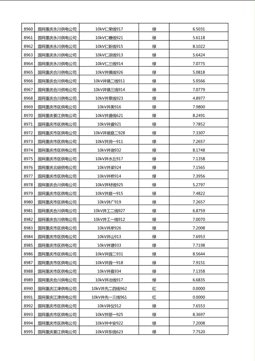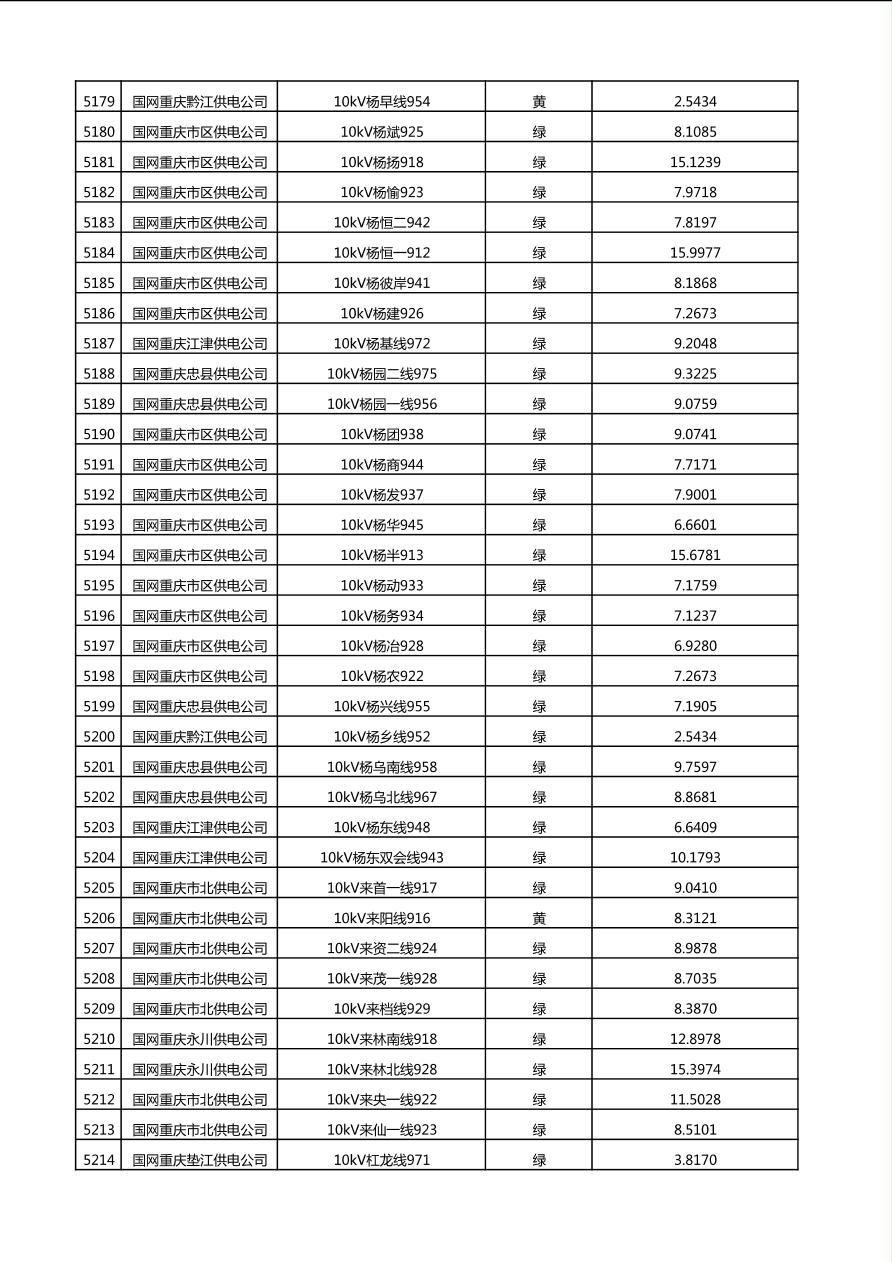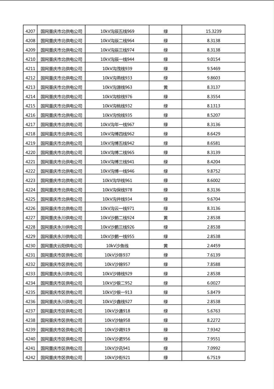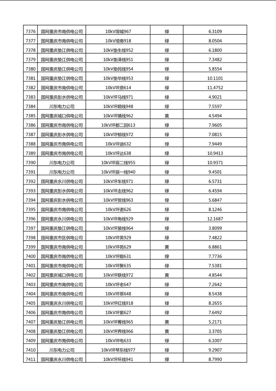 国网重庆市电力公司2025年第4季度分布式光伏可开放容量公示(10千伏配线)