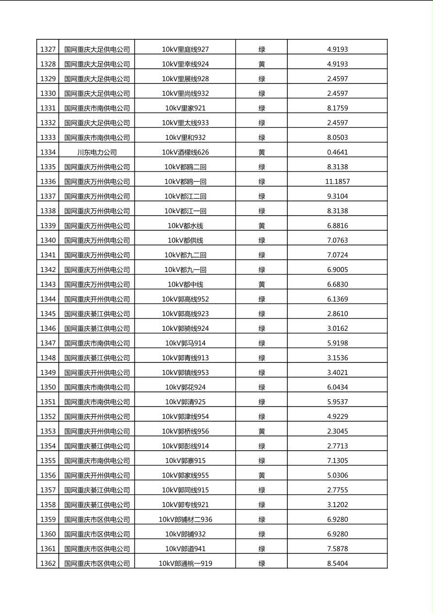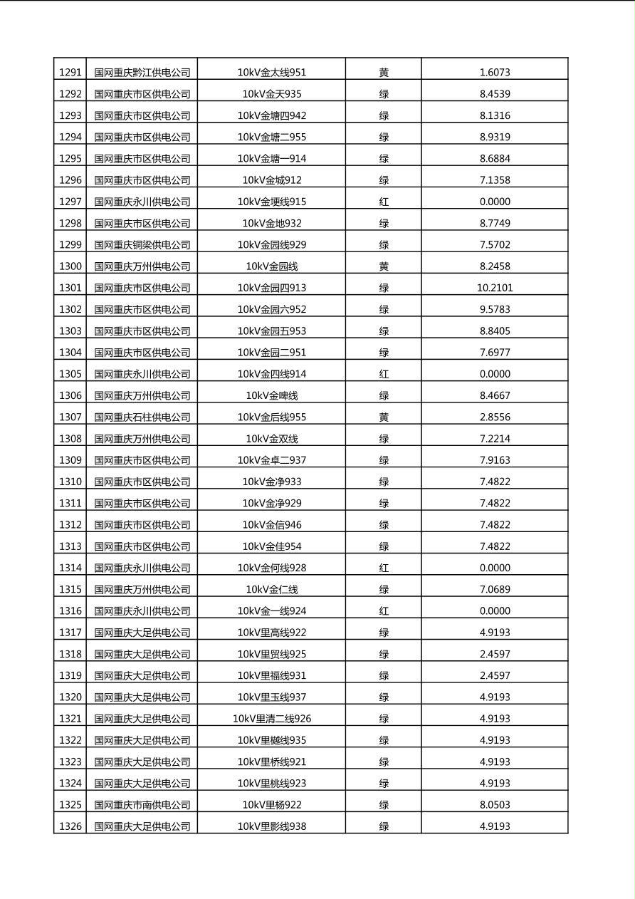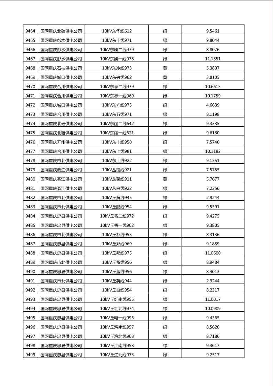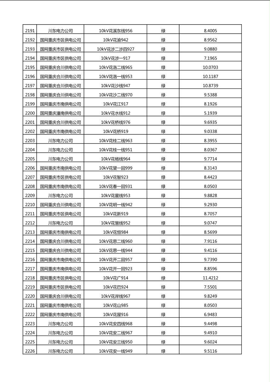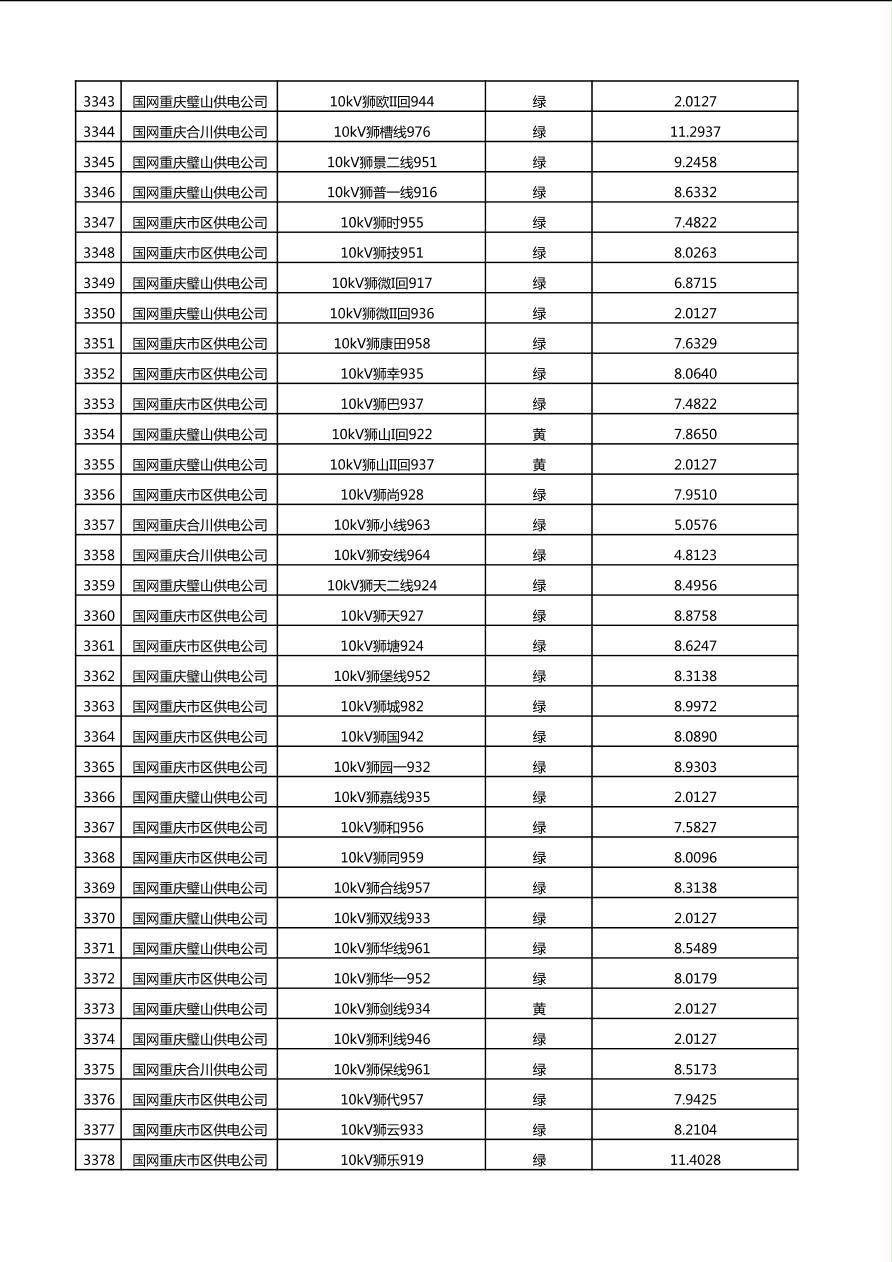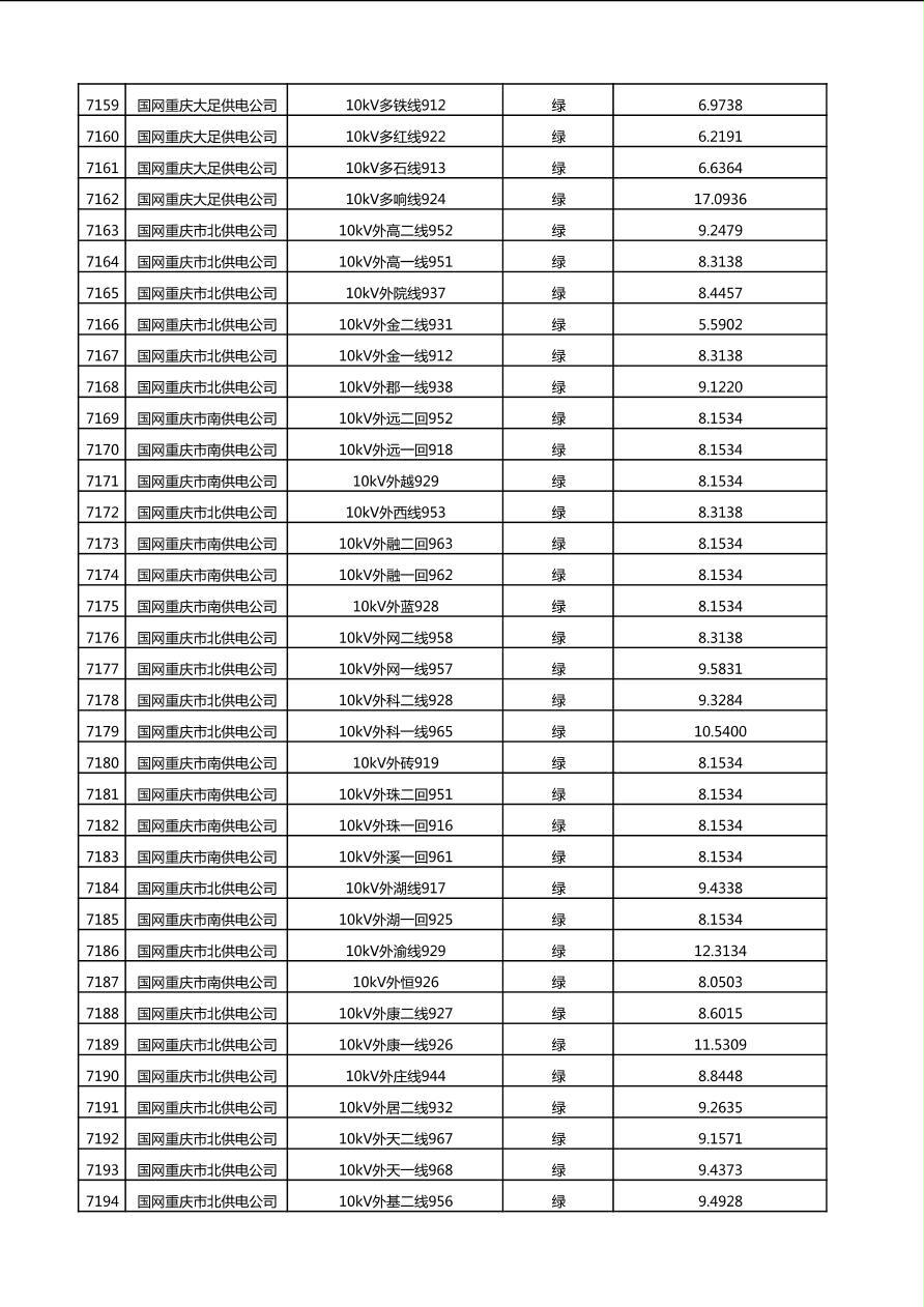 国网重庆市电力公司2025年第4季度分布式光伏可开放容量公示(10千伏配线)