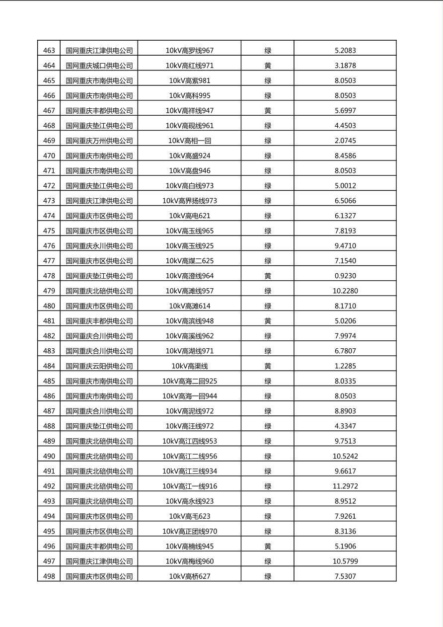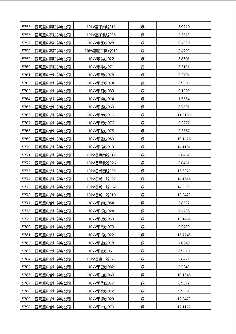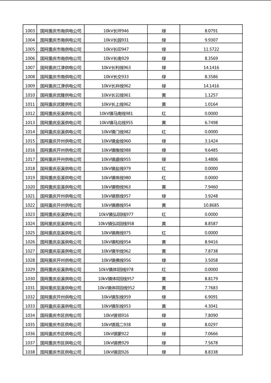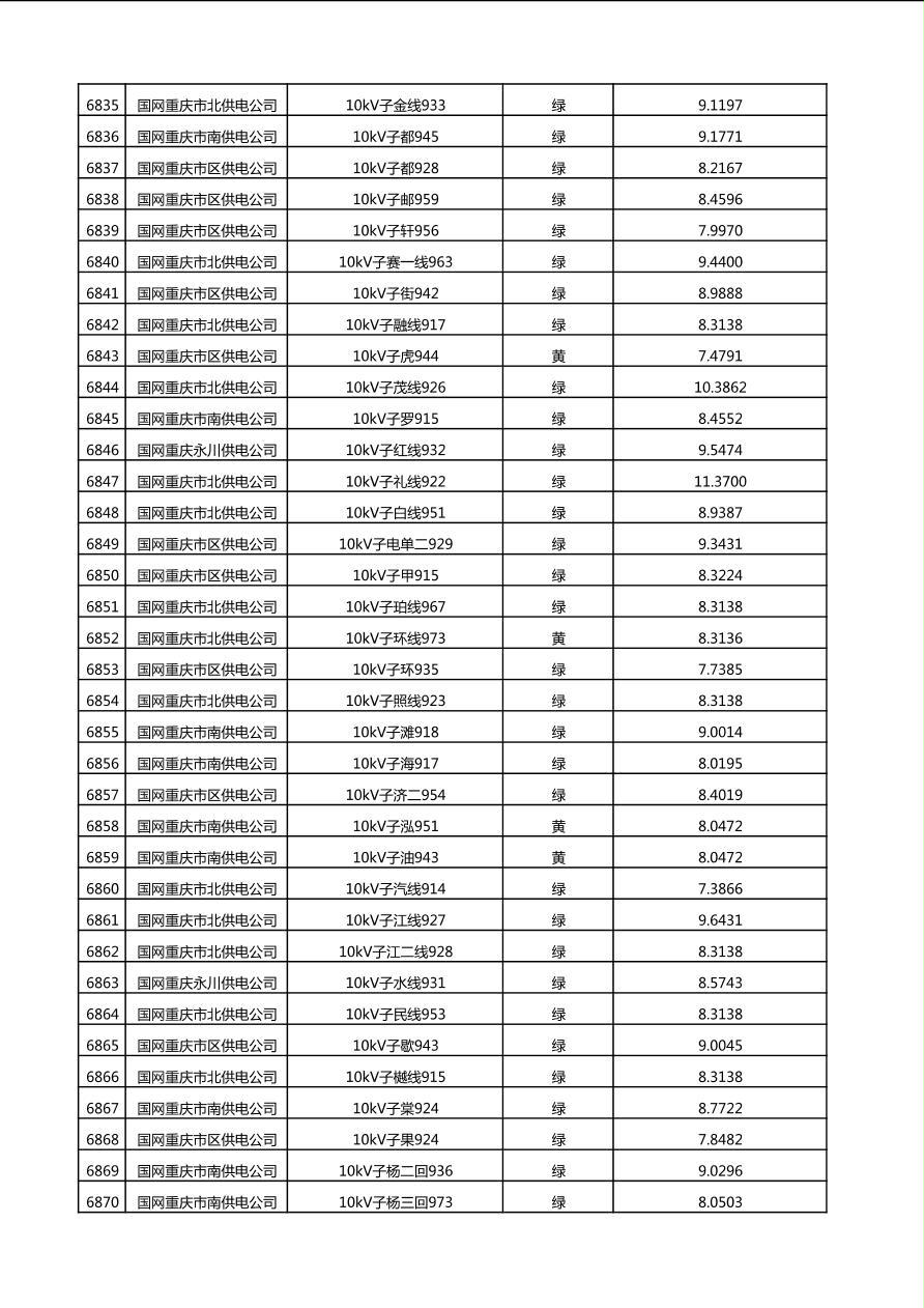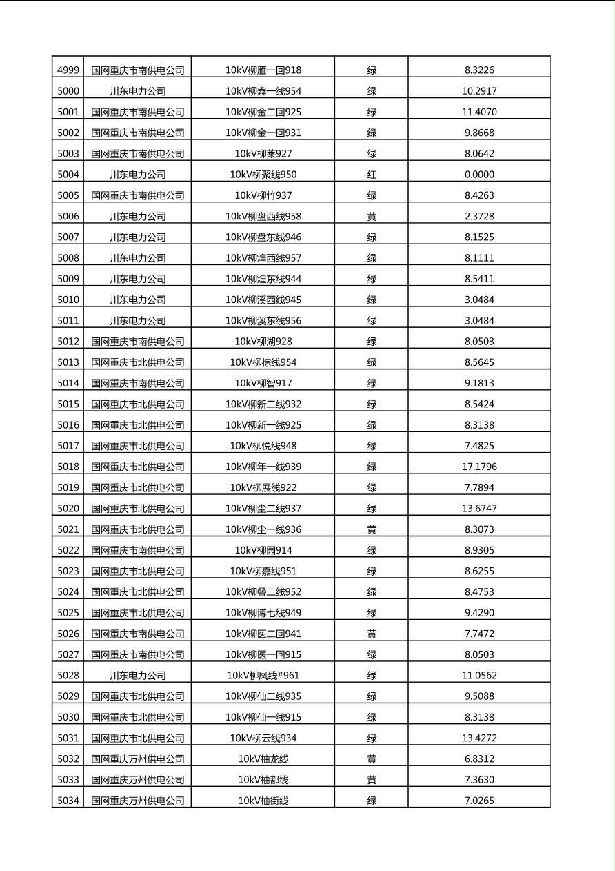 国网重庆市电力公司2025年第4季度分布式光伏可开放容量公示(10千伏配线)