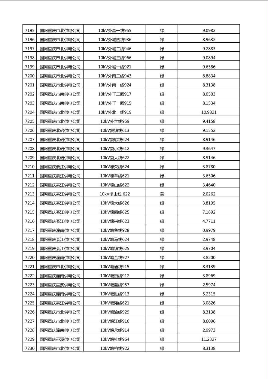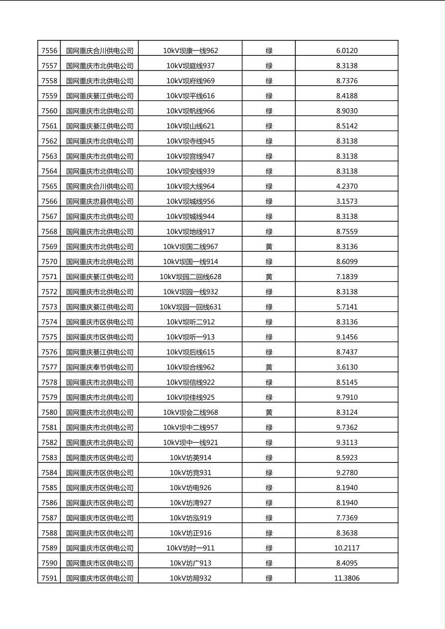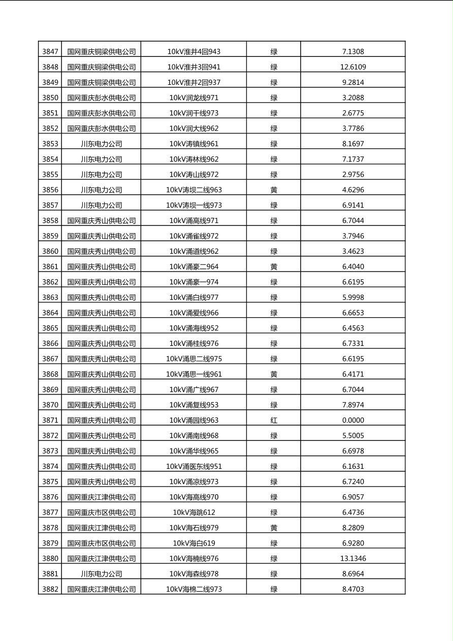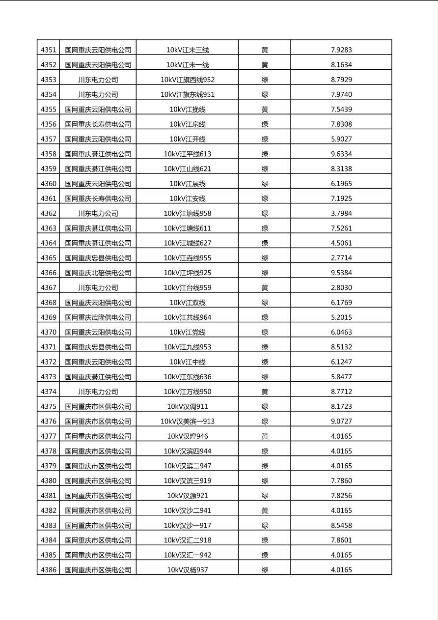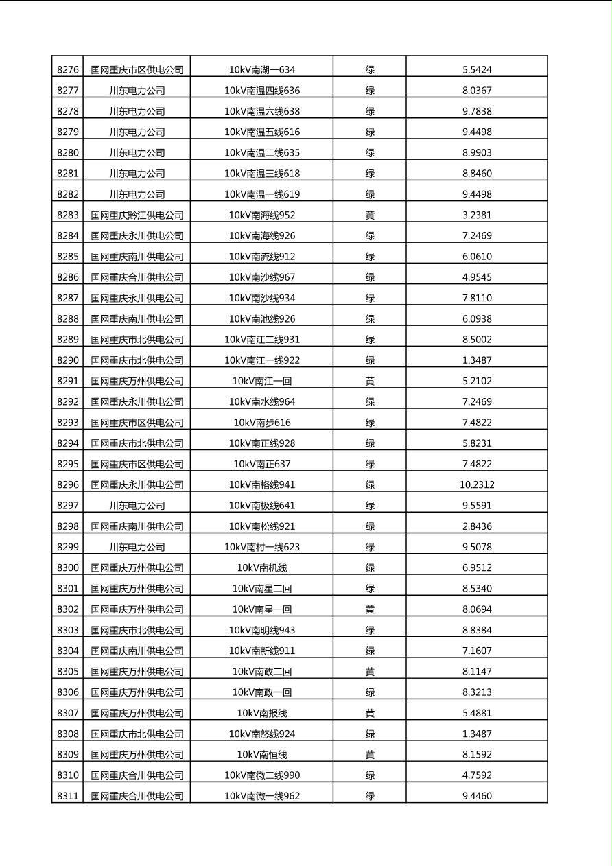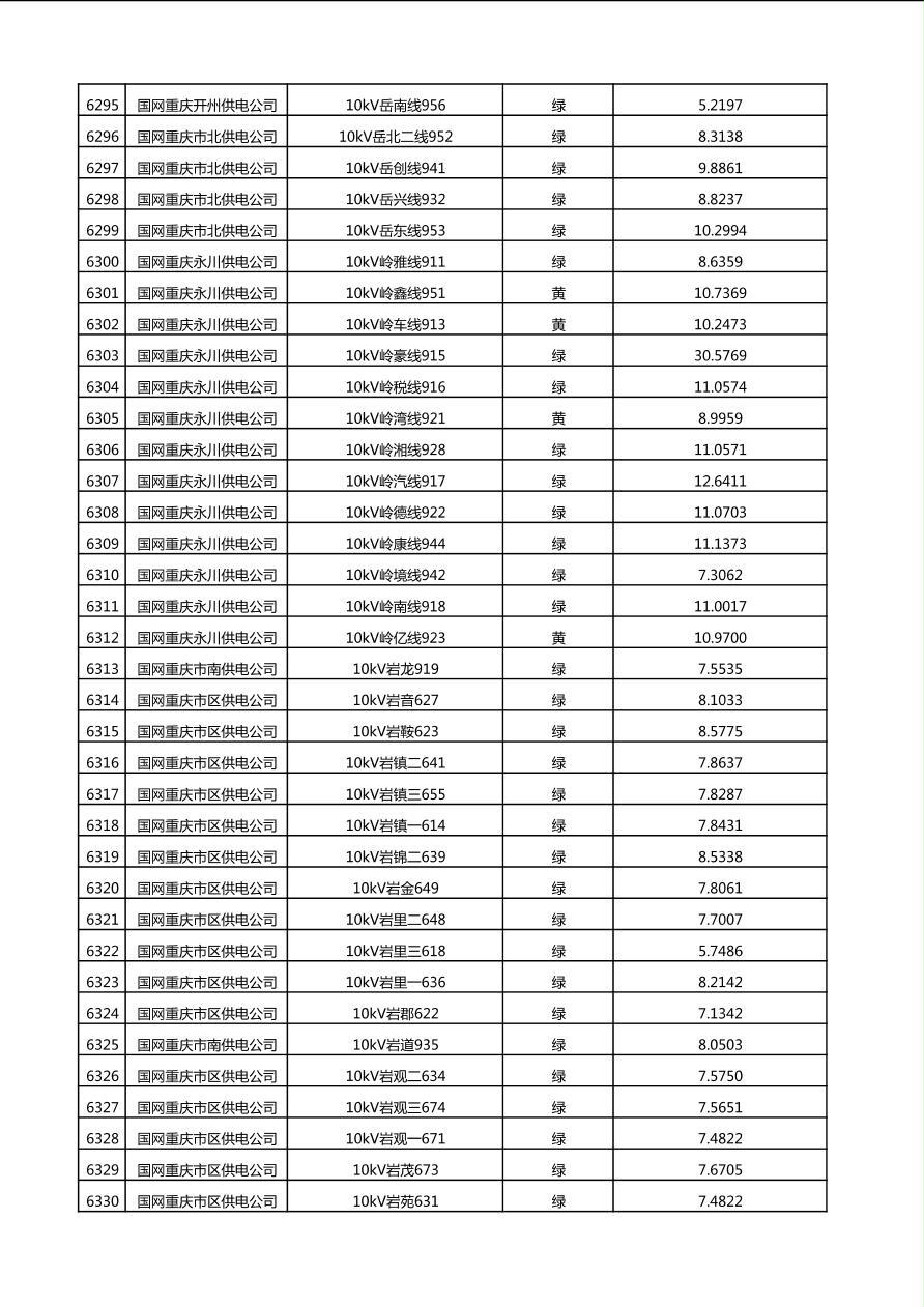 国网重庆市电力公司2025年第4季度分布式光伏可开放容量公示(10千伏配线)