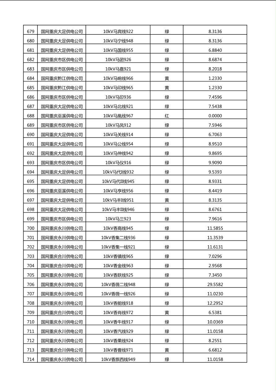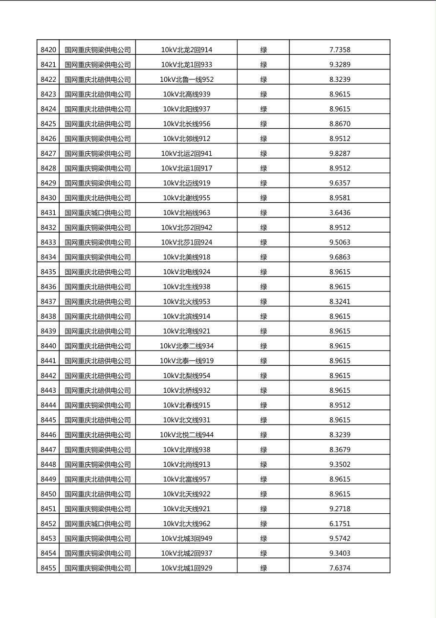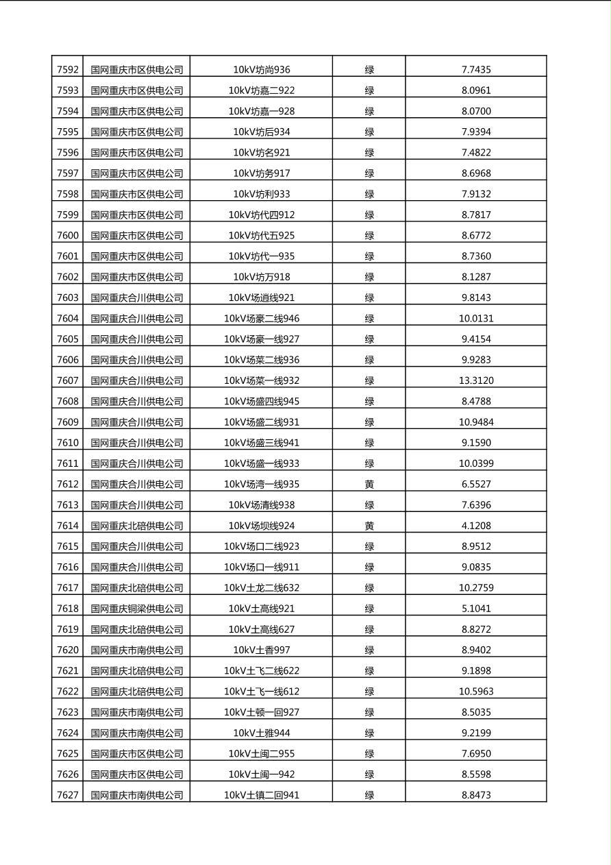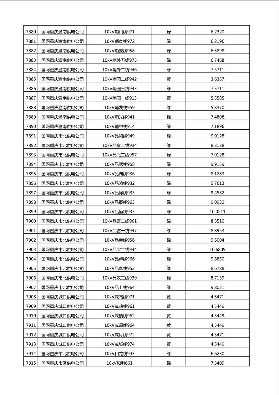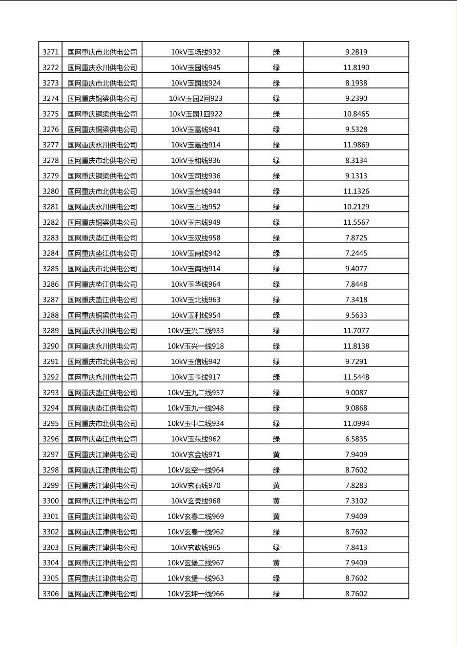 国网重庆市电力公司2025年第4季度分布式光伏可开放容量公示(10千伏配线)