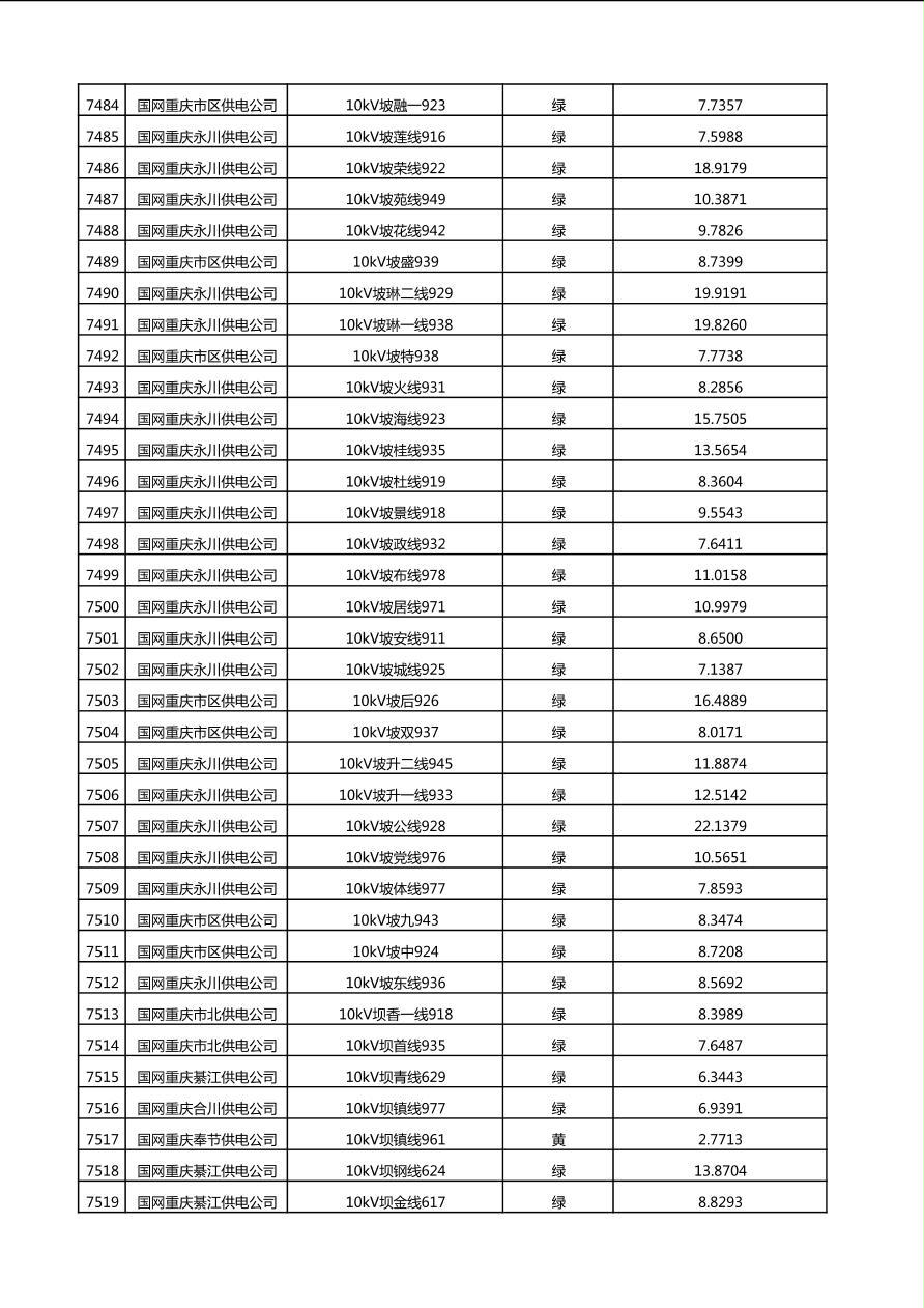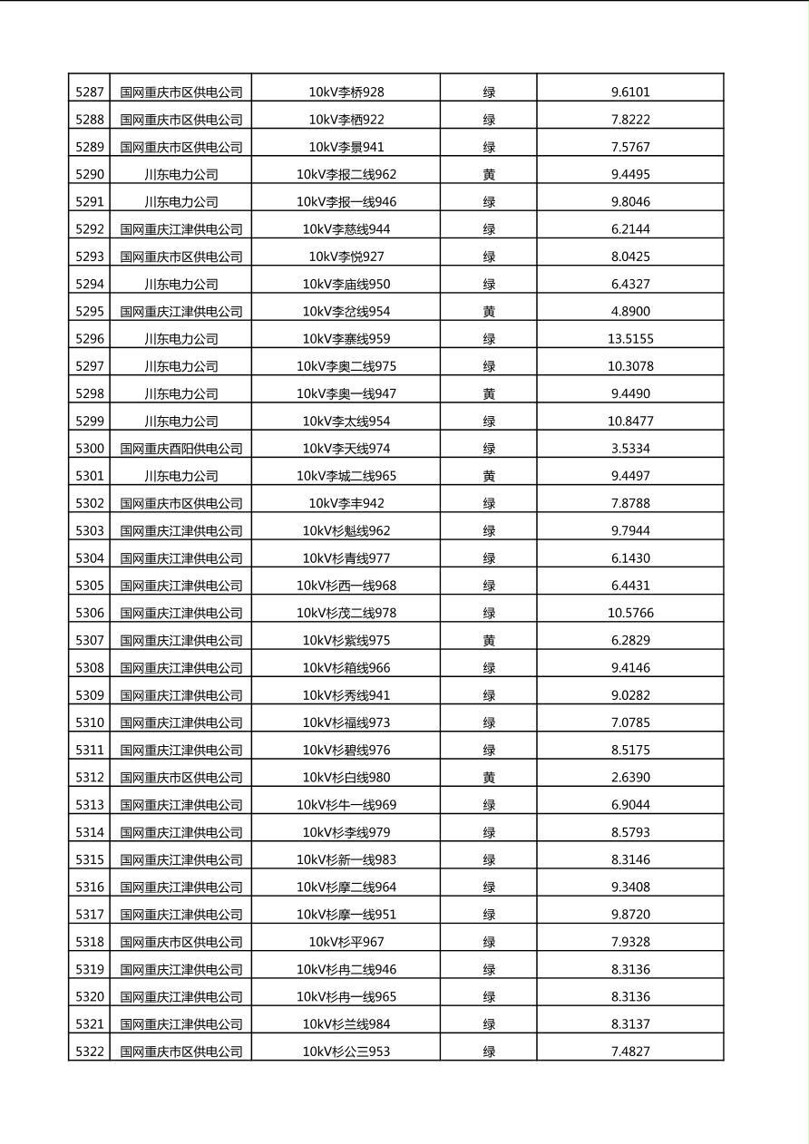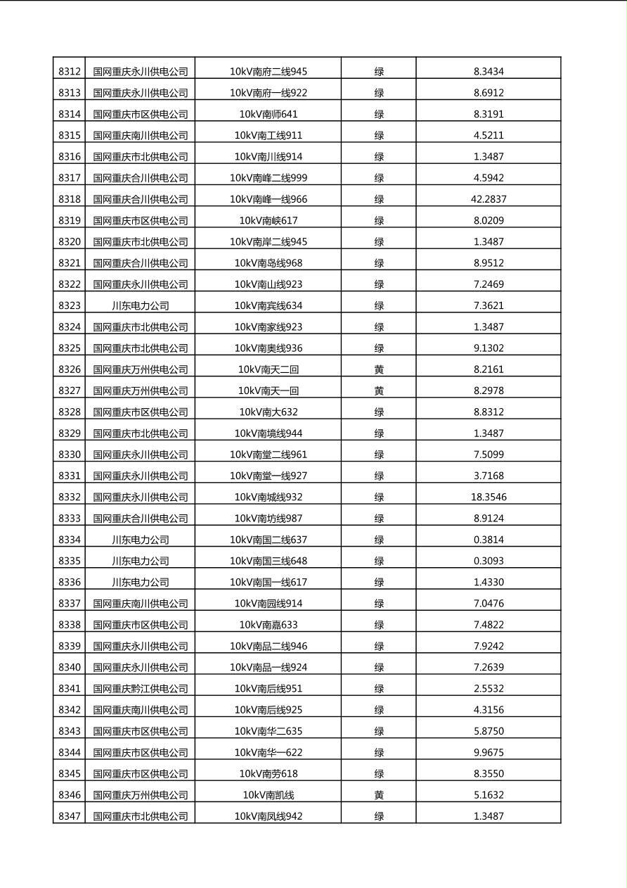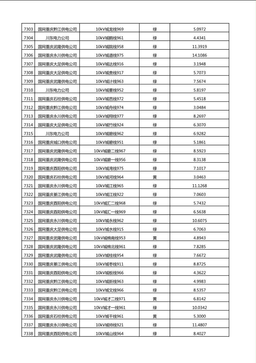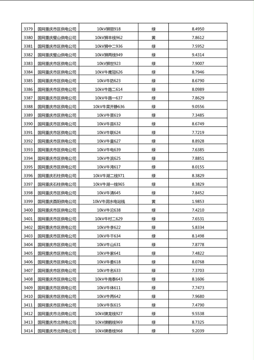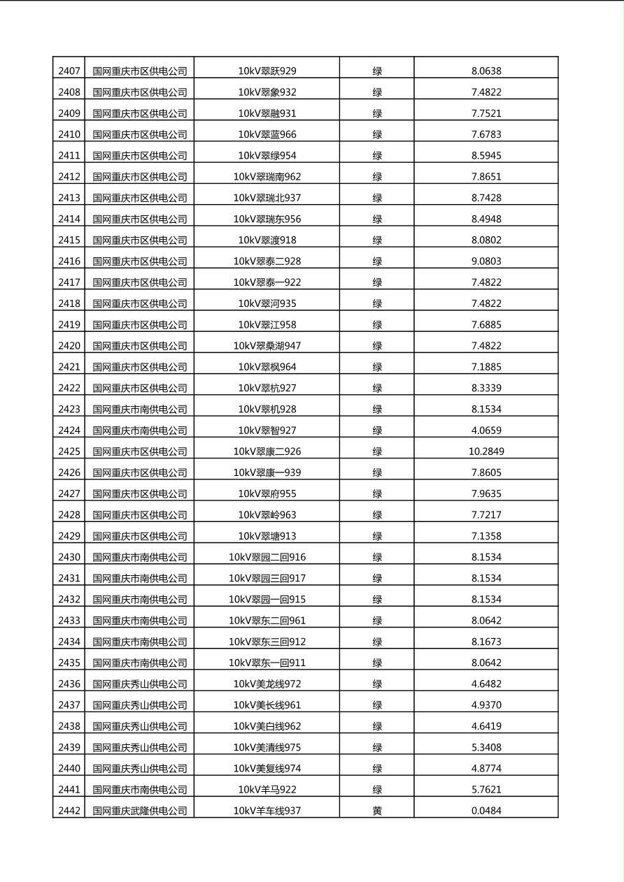 国网重庆市电力公司2025年第4季度分布式光伏可开放容量公示(10千伏配线)